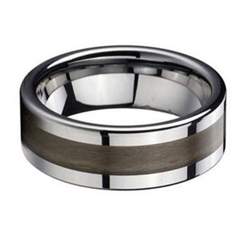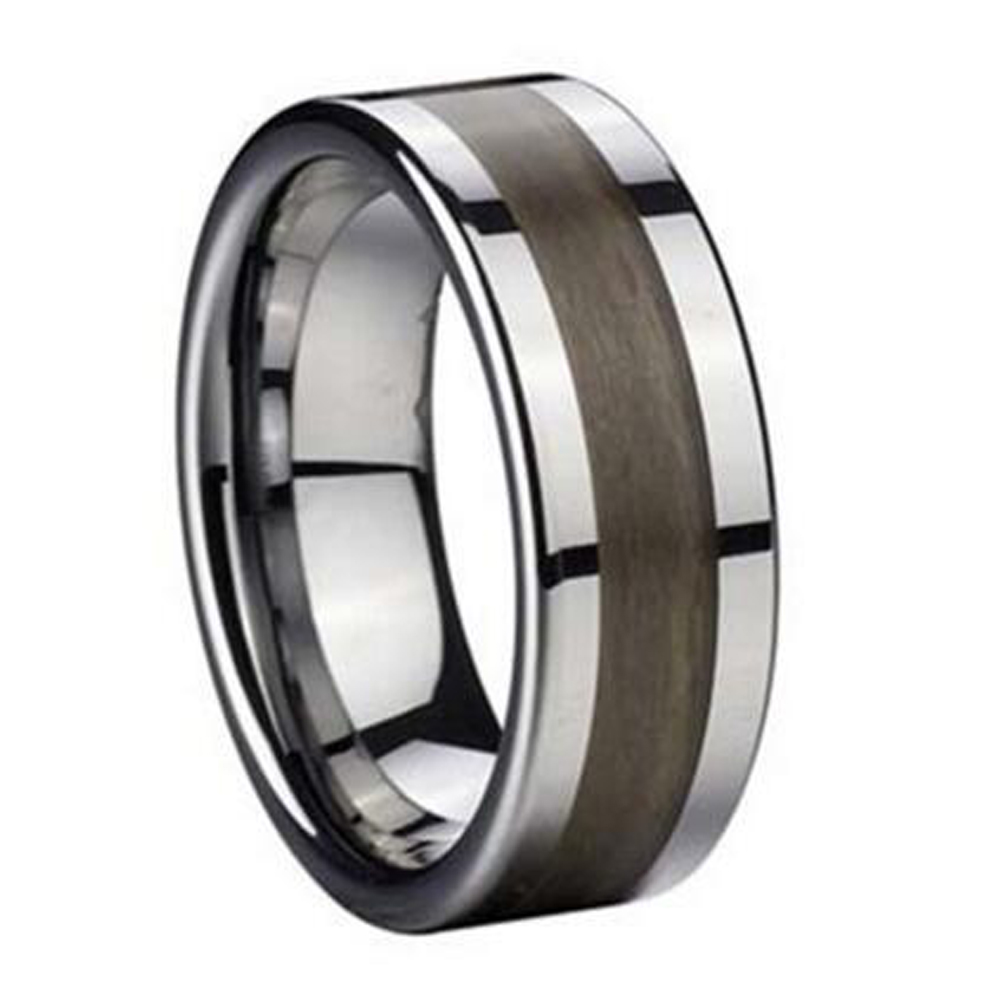 The 8mm Men Inlaid Wood Grain Polished Flat tungsten rings for sale is a type of men's wedding band or fashion ring that features a stylish wood grain inlay made of high-quality tungsten carbide material. Tungsten carbide is a durable and scratch-resistant material that is commonly used in jewelry making. This particular ring has a width of 8mm and a polished finish, giving it a sleek and modern look. The wood grain inlay adds a natural touch to the design, making it a great choice for those who want a combination of both modern and classic elements in their ring.