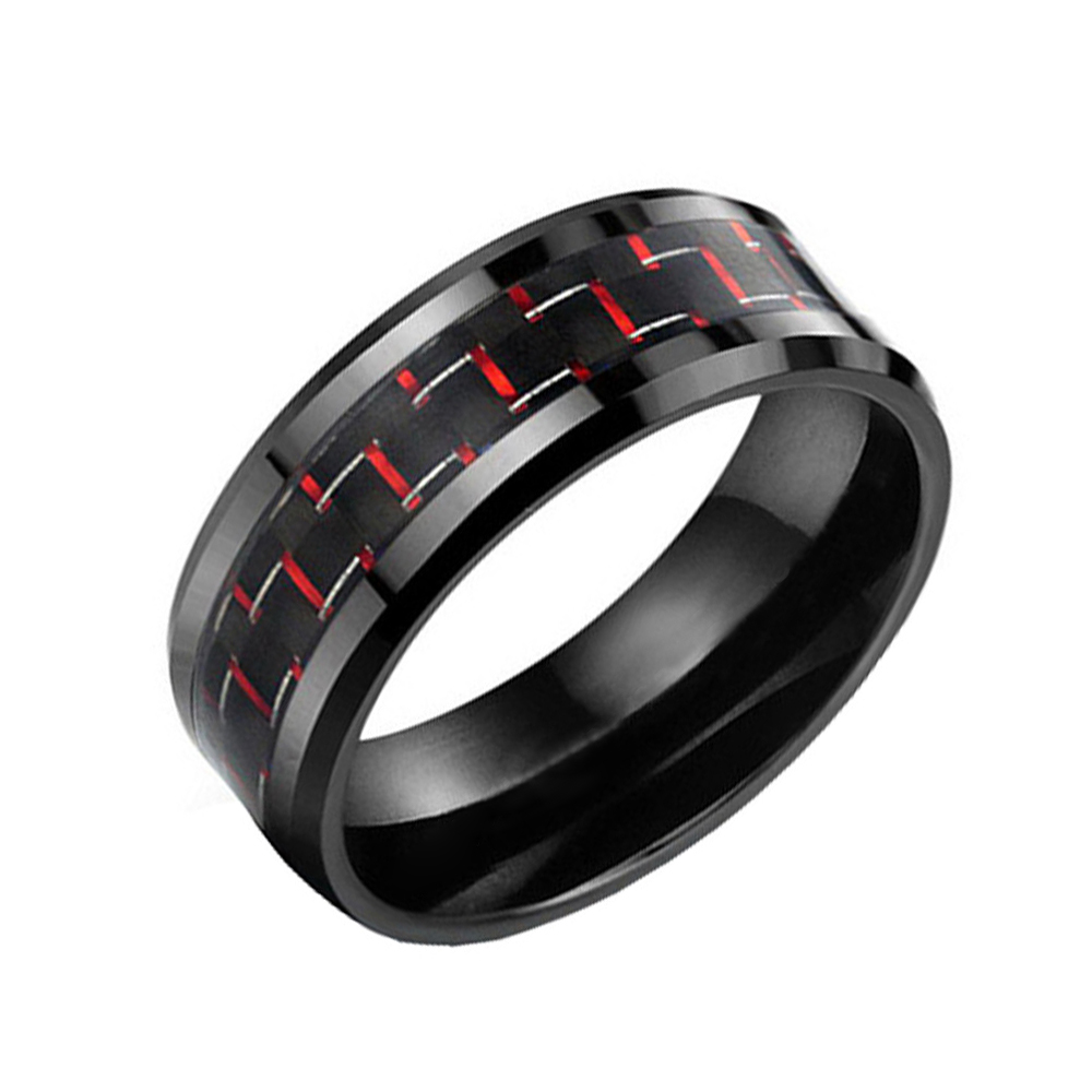 6MM 8MM Red Carbon Fiber Inlay Mens Tungsten Rings Polished Beveled Edge