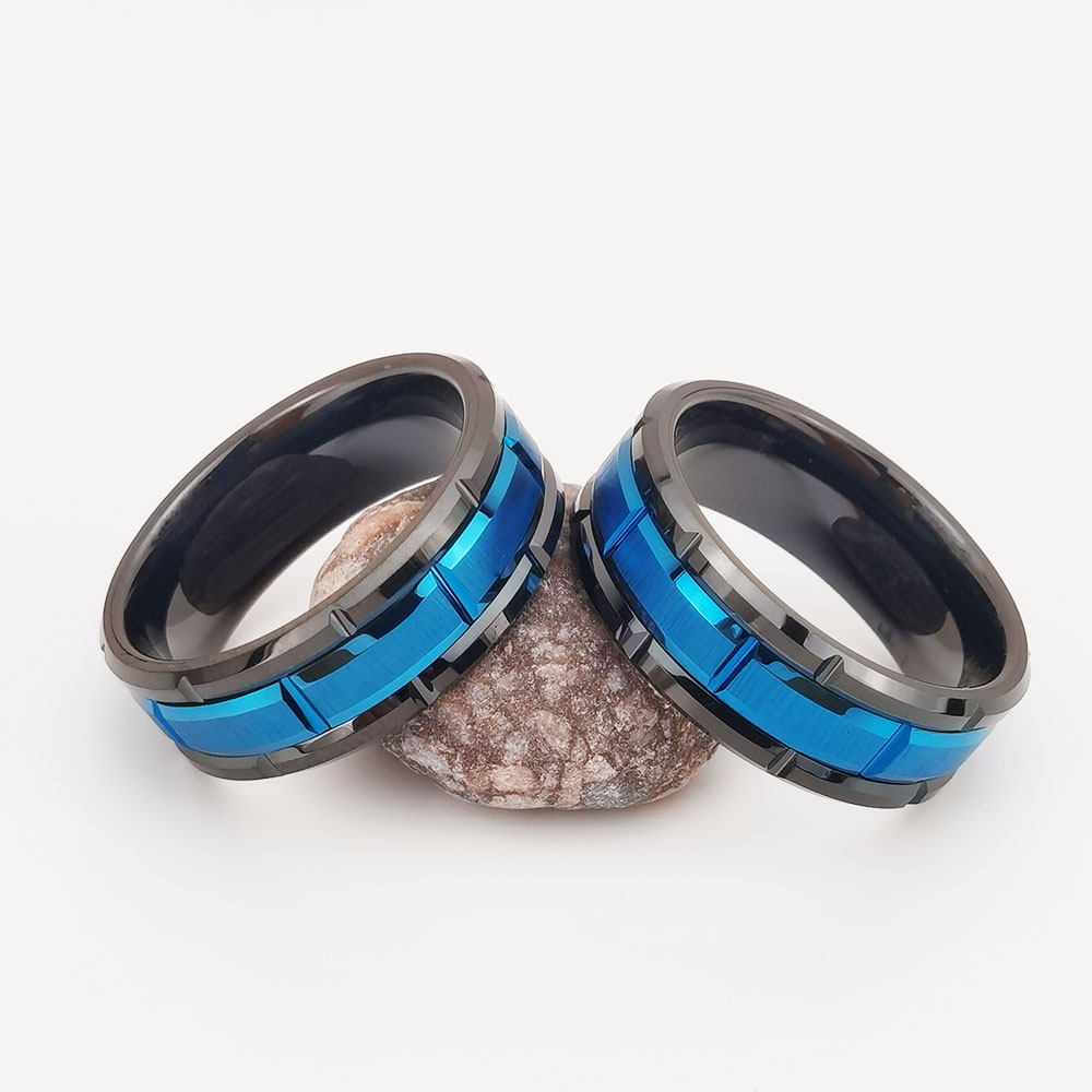 The Mens Women Brown Brushed Tungsten Carbide Ring Matching with Blue Plated Groove is a stylish and modern choice for couples who want matching wedding bands with a unique and eye-catching design. The blue wedding bands features a brown brushed tungsten carbide band with a blue plated groove in the center, creating a bold and contemporary look that is perfect for couples who want to make a statement.
