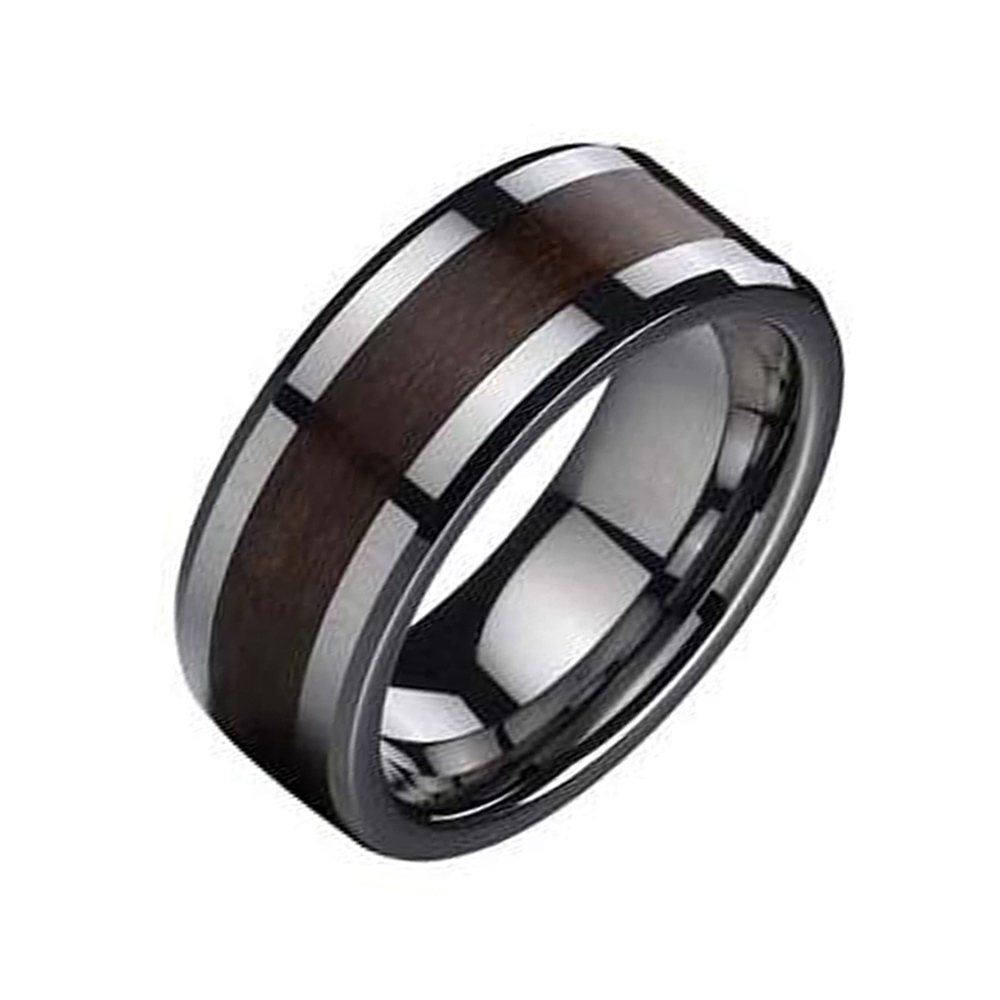 Top quality & real tungsten ring,both silver sides polished,and real wood inlay.Real wood inlay highlights the center of this remarkable wedding band for men.This band is molded in tungsten carbide and topped with an unforgettable polished finish.These mens tungsten rings are made with real wood inlay,adding to their exclusivity.Wood inlay rings are an attractive choice for couples who want something unique to represent their timeless love and commitment.