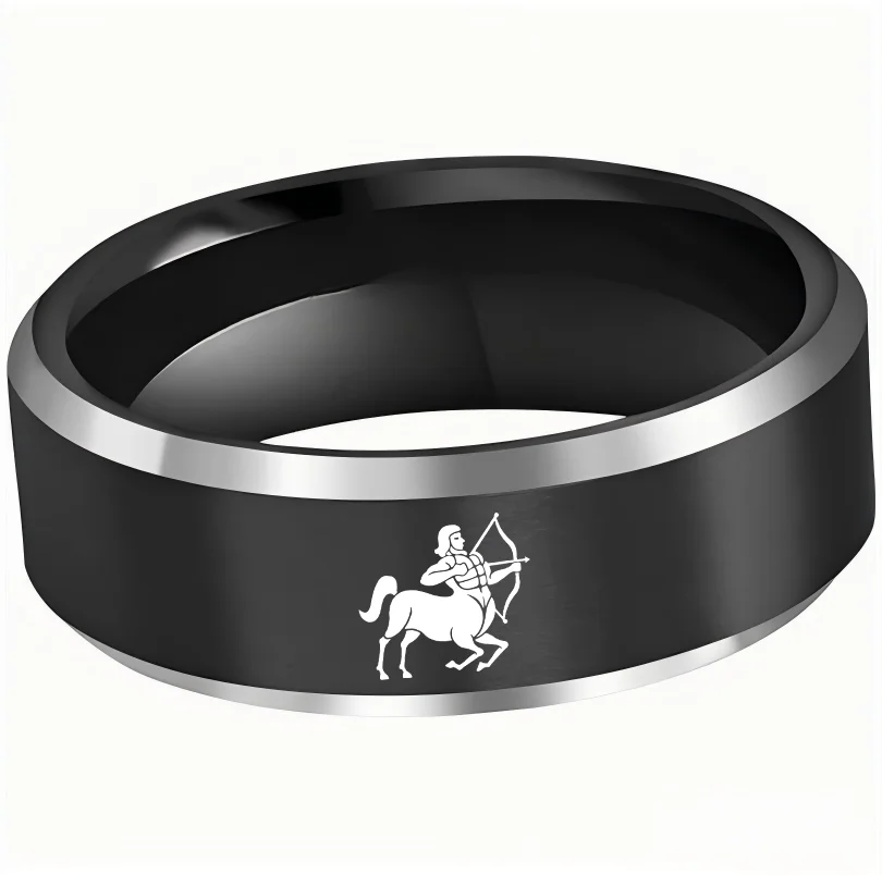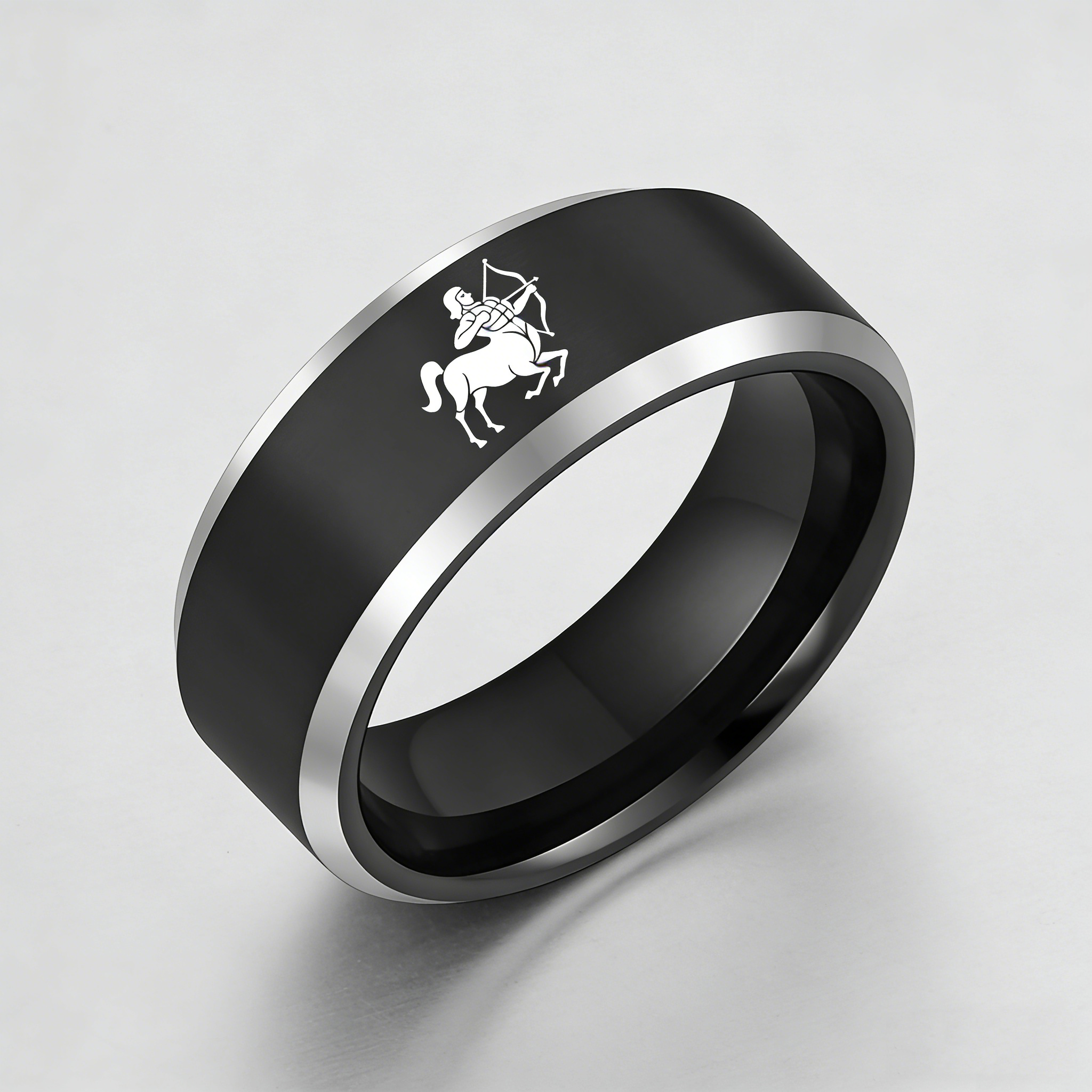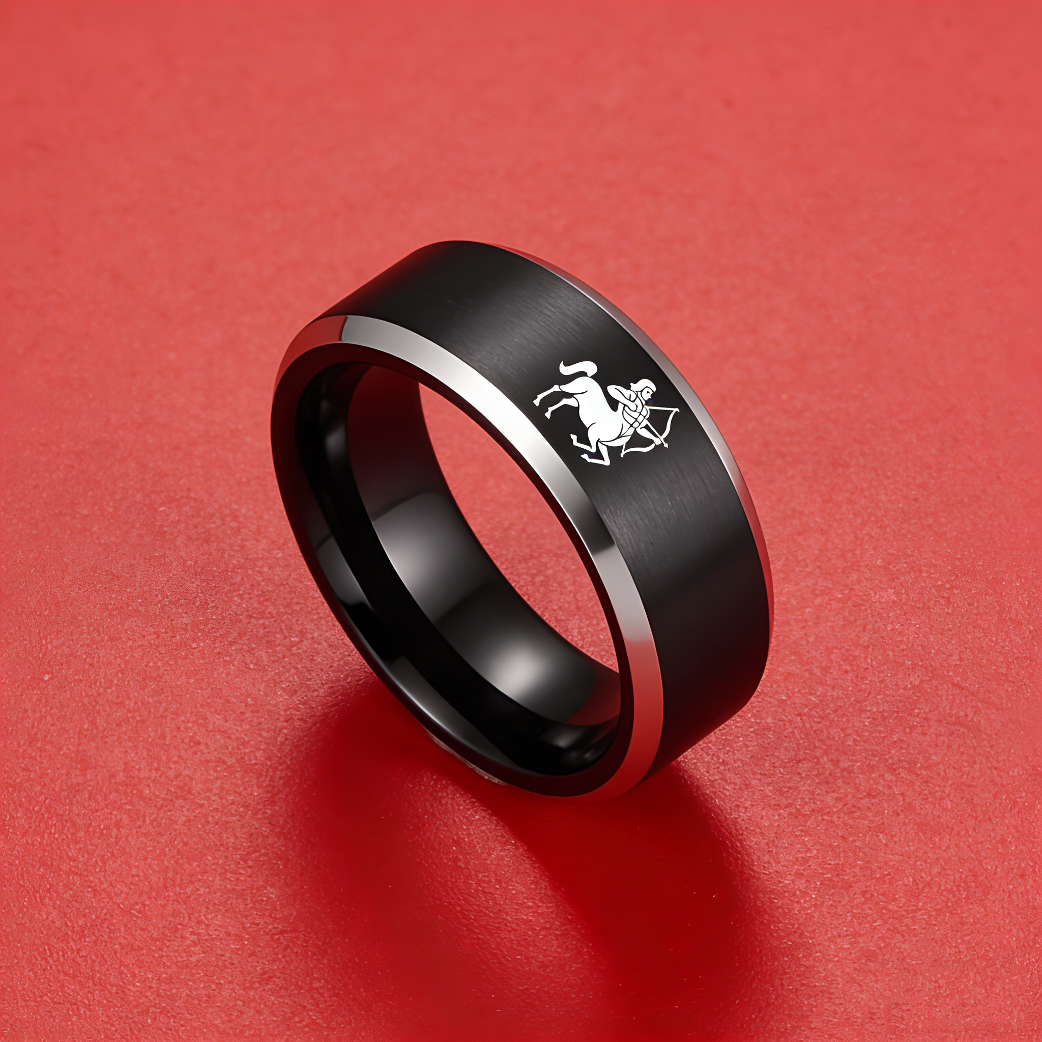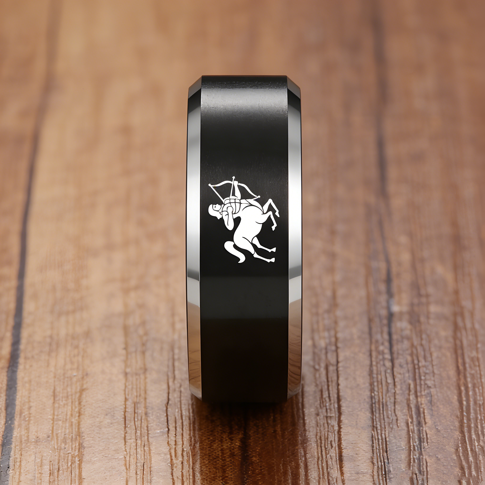 Beveled Edges Black Laser Etched Tungsten Carbide Rings Black Sagittarius Couple Wedding Bands 4MM 6MM 8MM