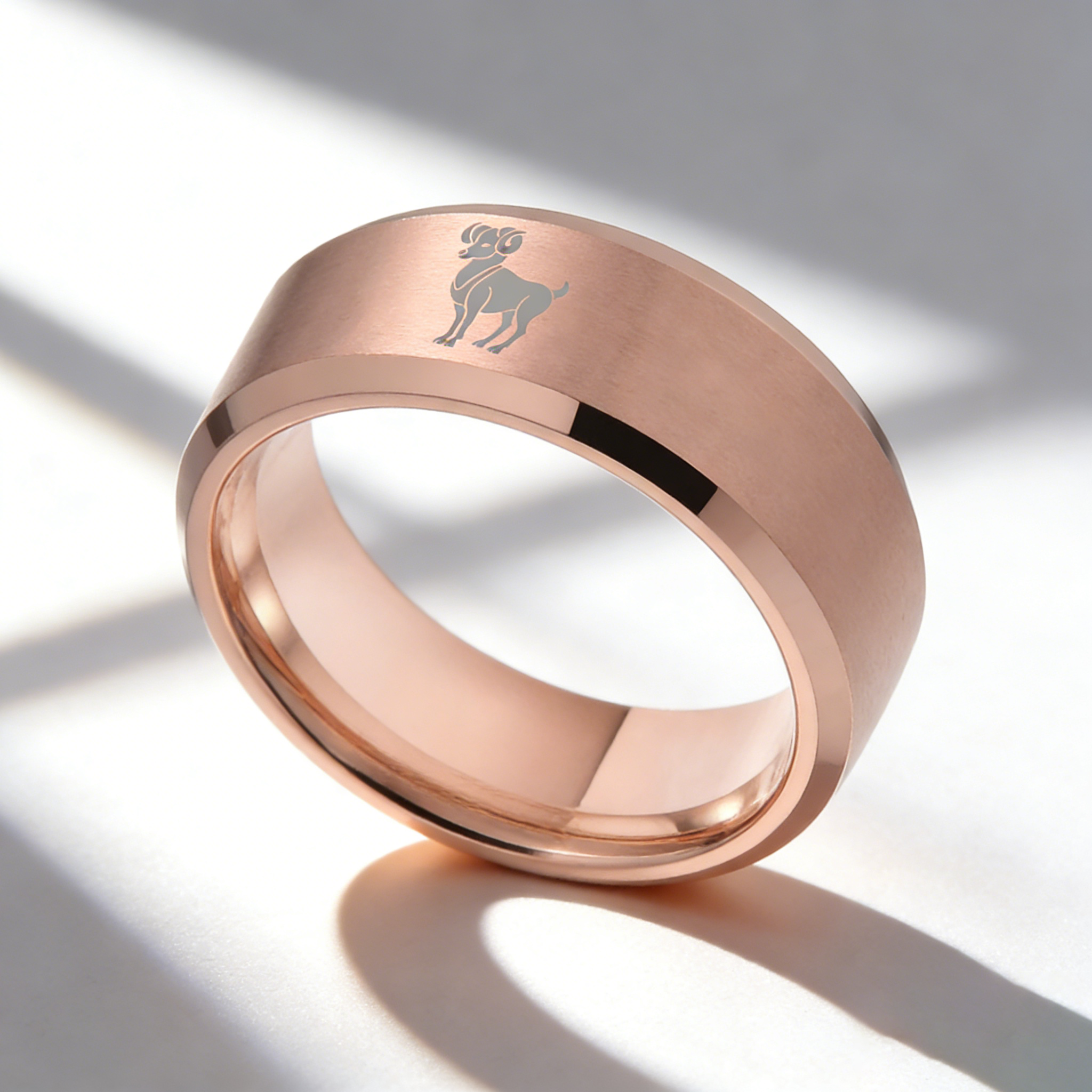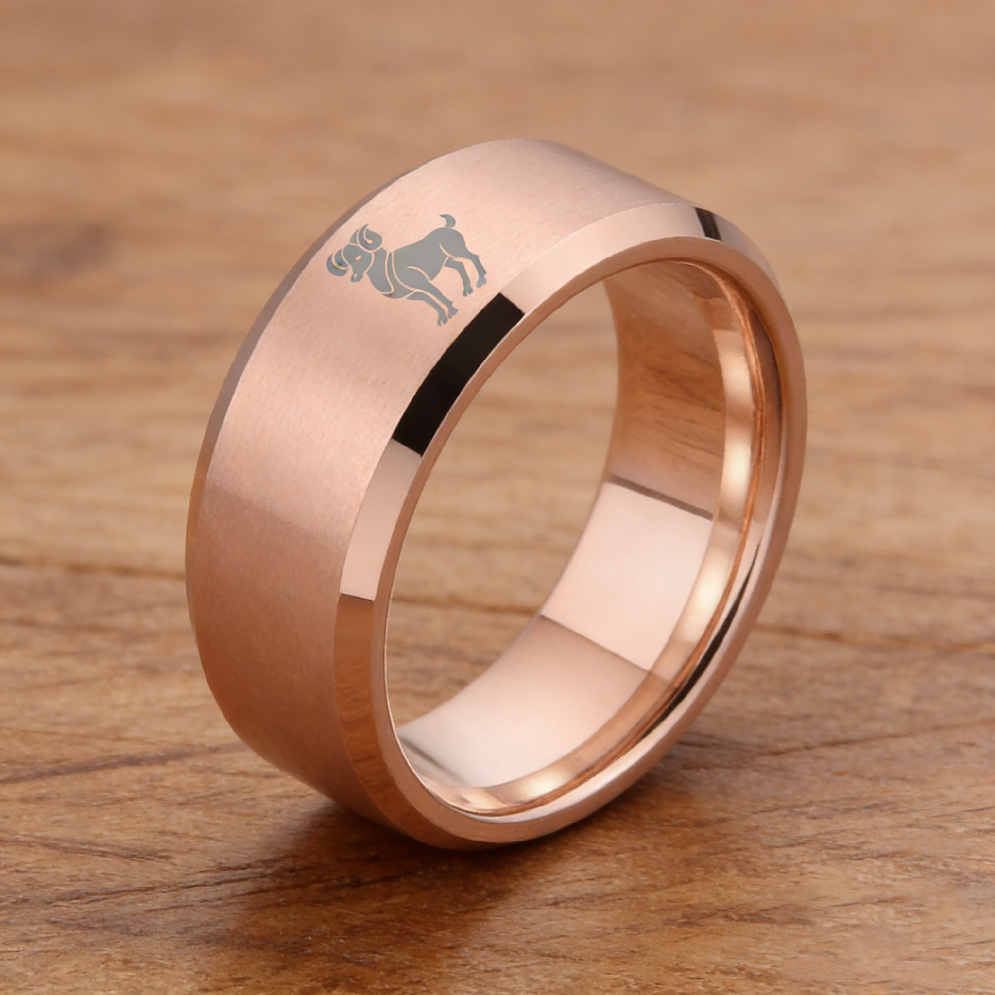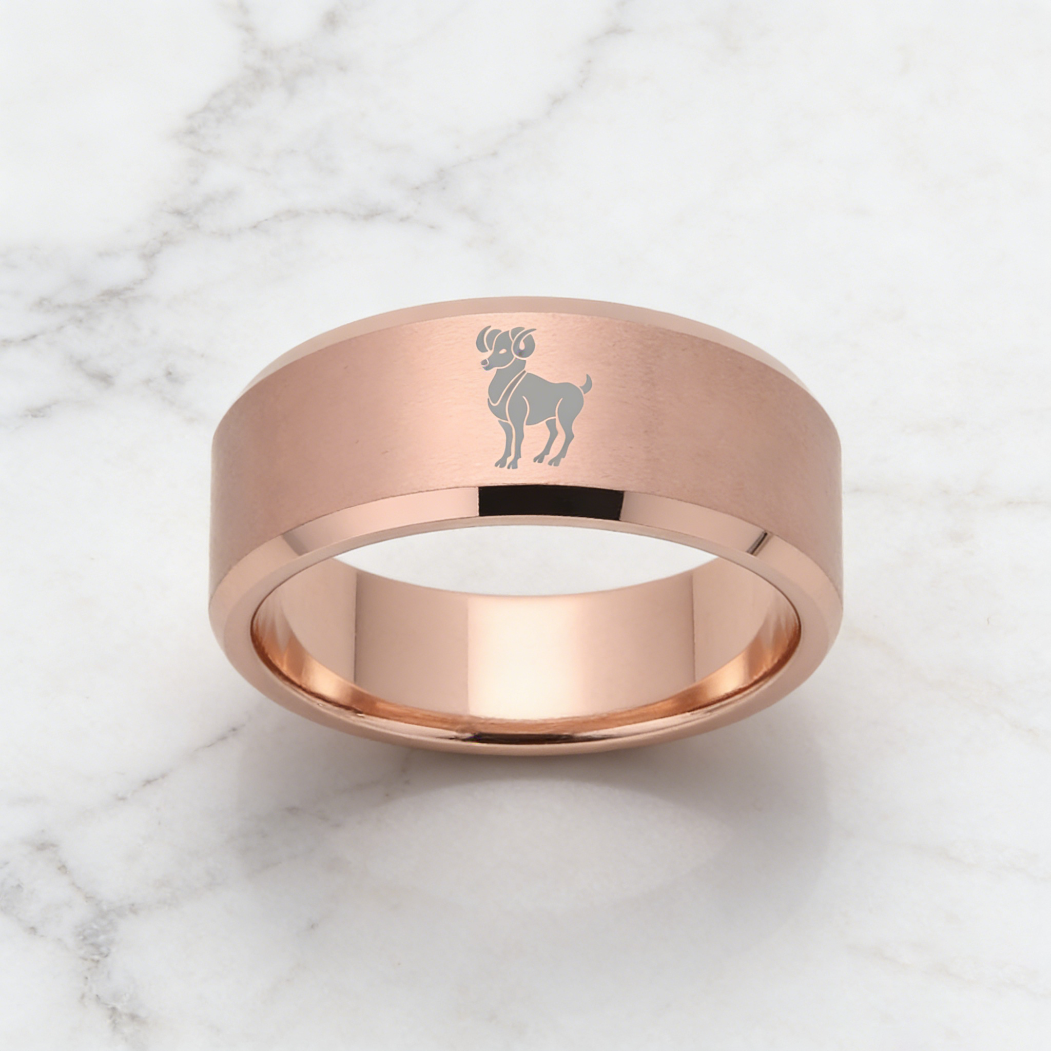 Beveled Edges Laser Etched Tungsten Carbide Rings Rose Gold Aries Couple Wedding Bands 4MM 6MM 8MM