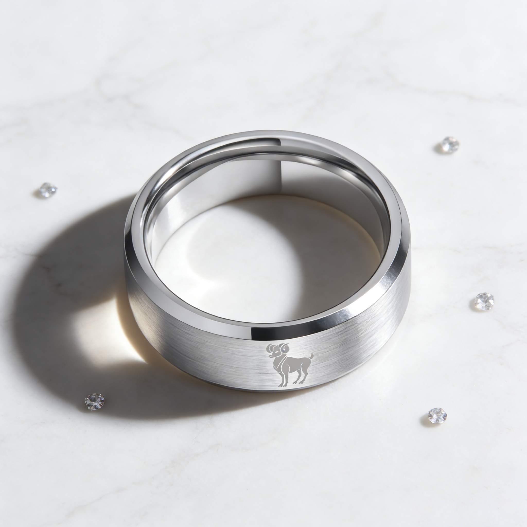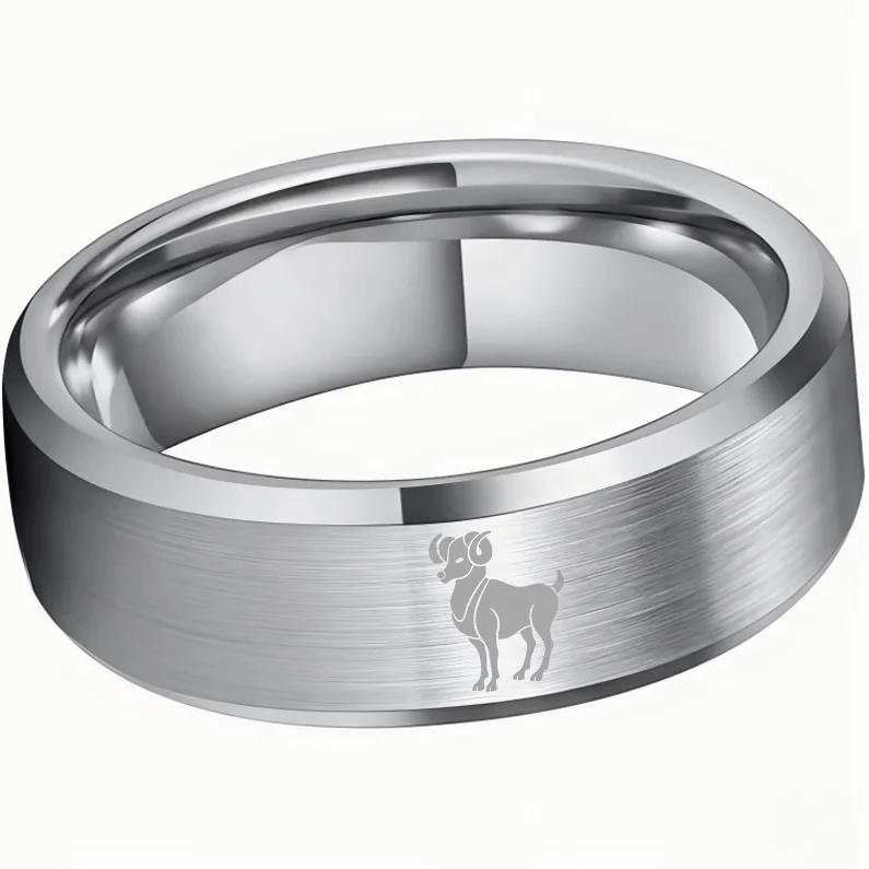 Beveled Edges Laser Etched Tungsten Carbide Rings Sliver Aries Couple Wedding Bands 4MM 6MM 8MM