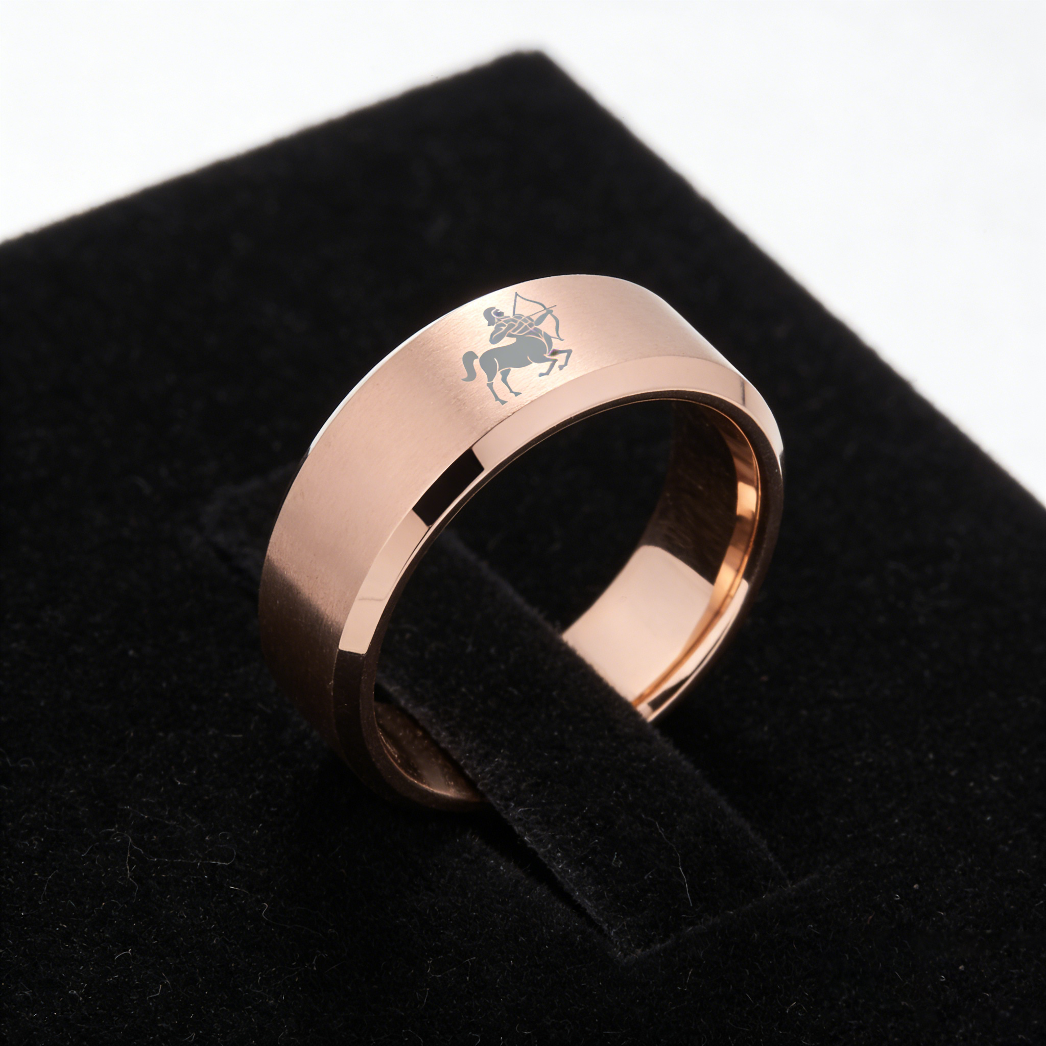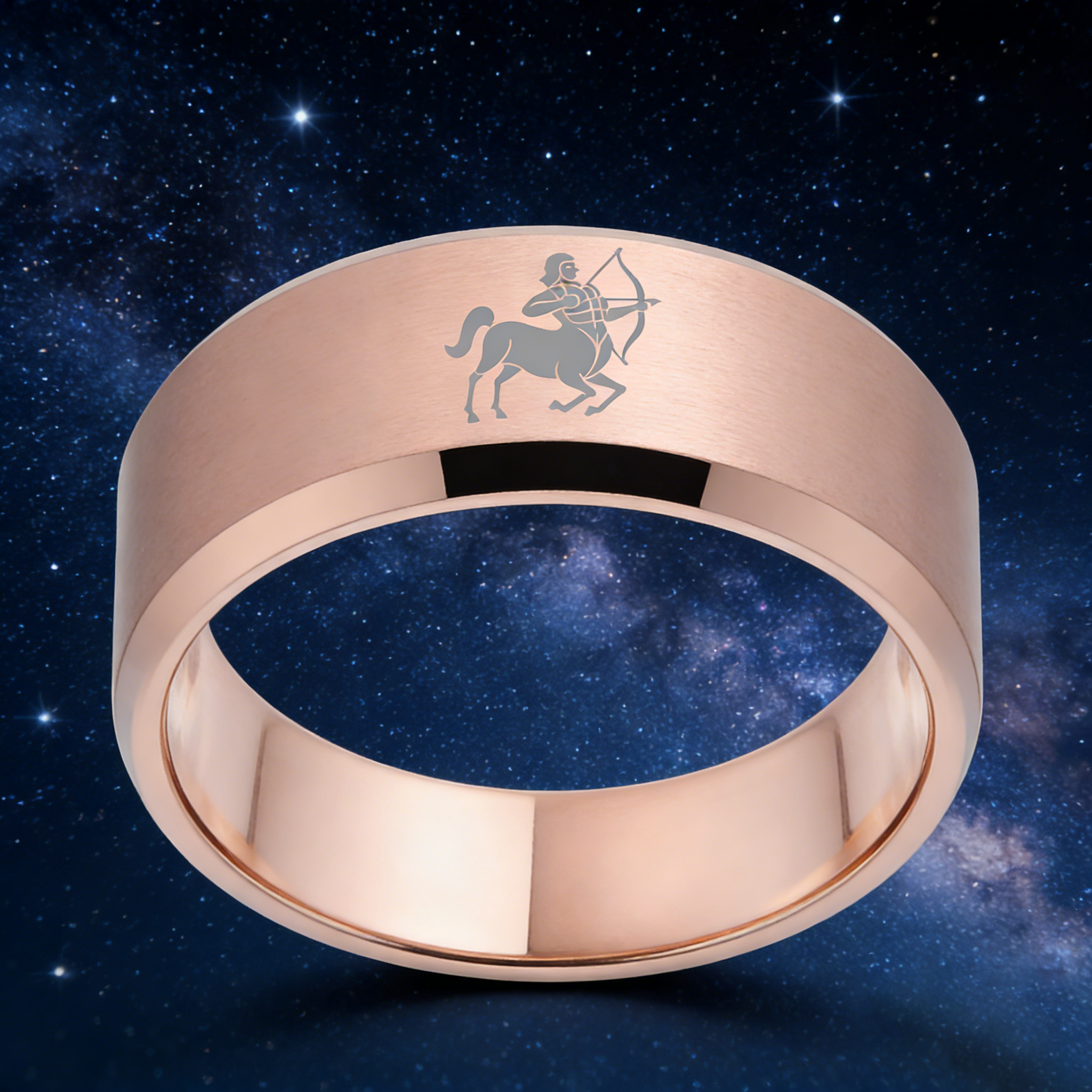 Beveled Edges Rose Gold Laser Etched Tungsten Carbide Bands Rose Gold Sagittarius Couple Wedding Rings 4MM 6MM 8MM Width