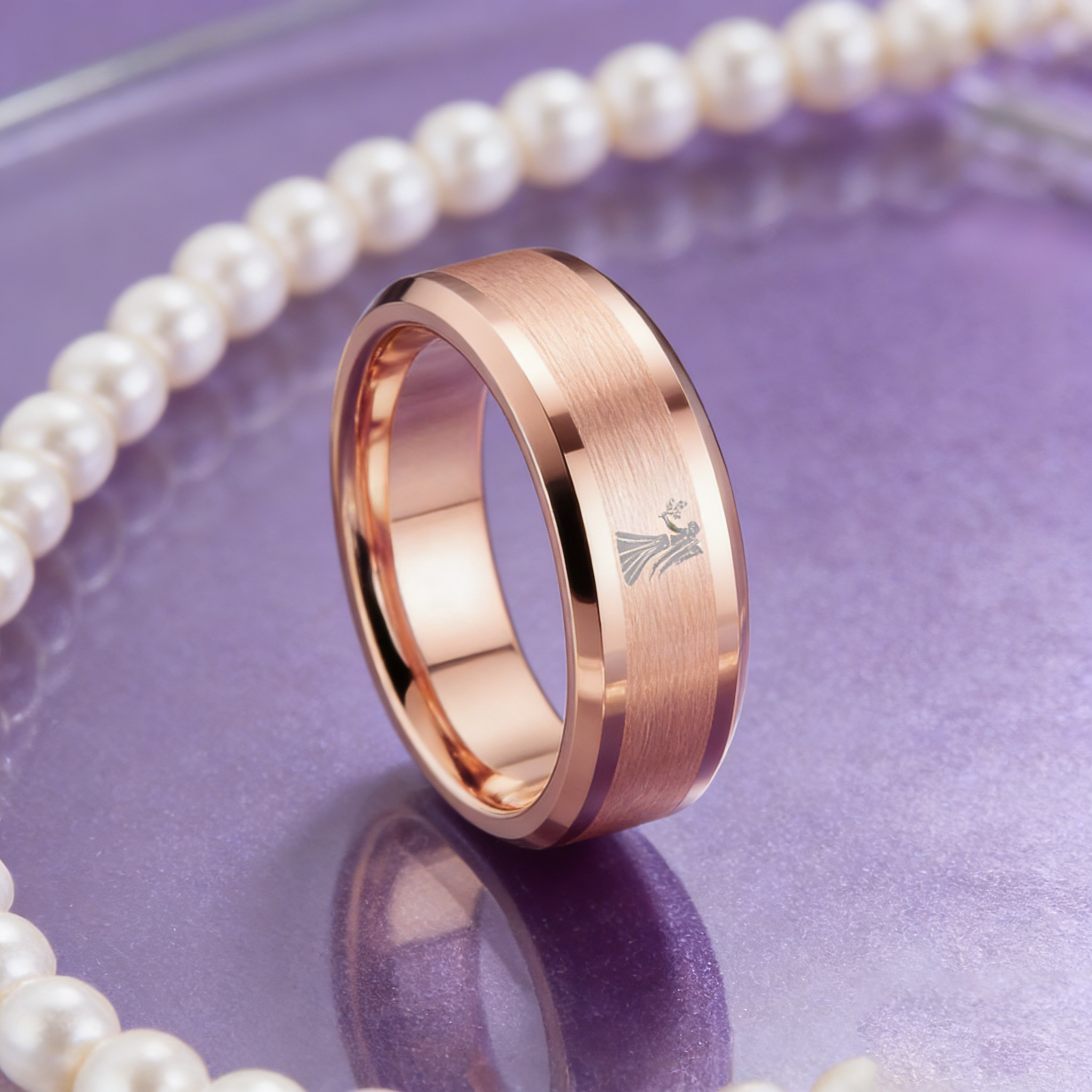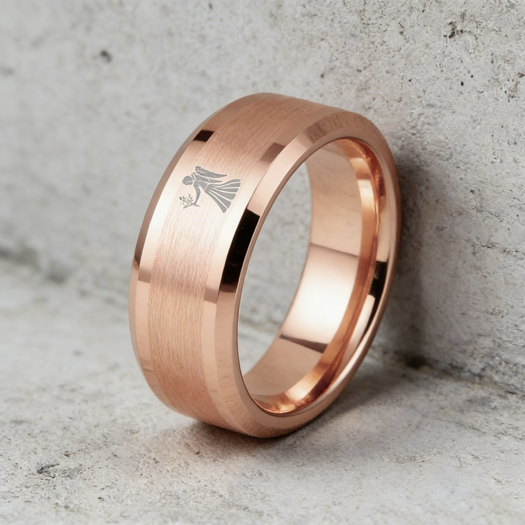 Beveled Edges Rose Gold Laser Etched Tungsten Carbide Ring Rose Gold Virgo Couple Wedding Band 4MM 6MM 8MM