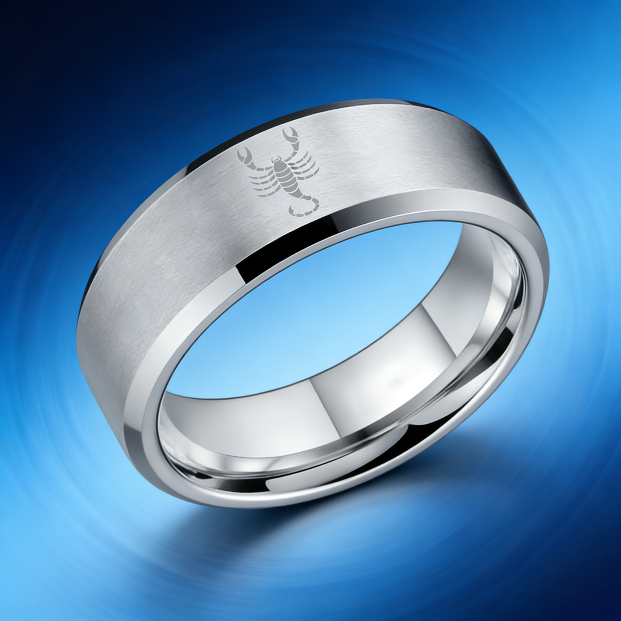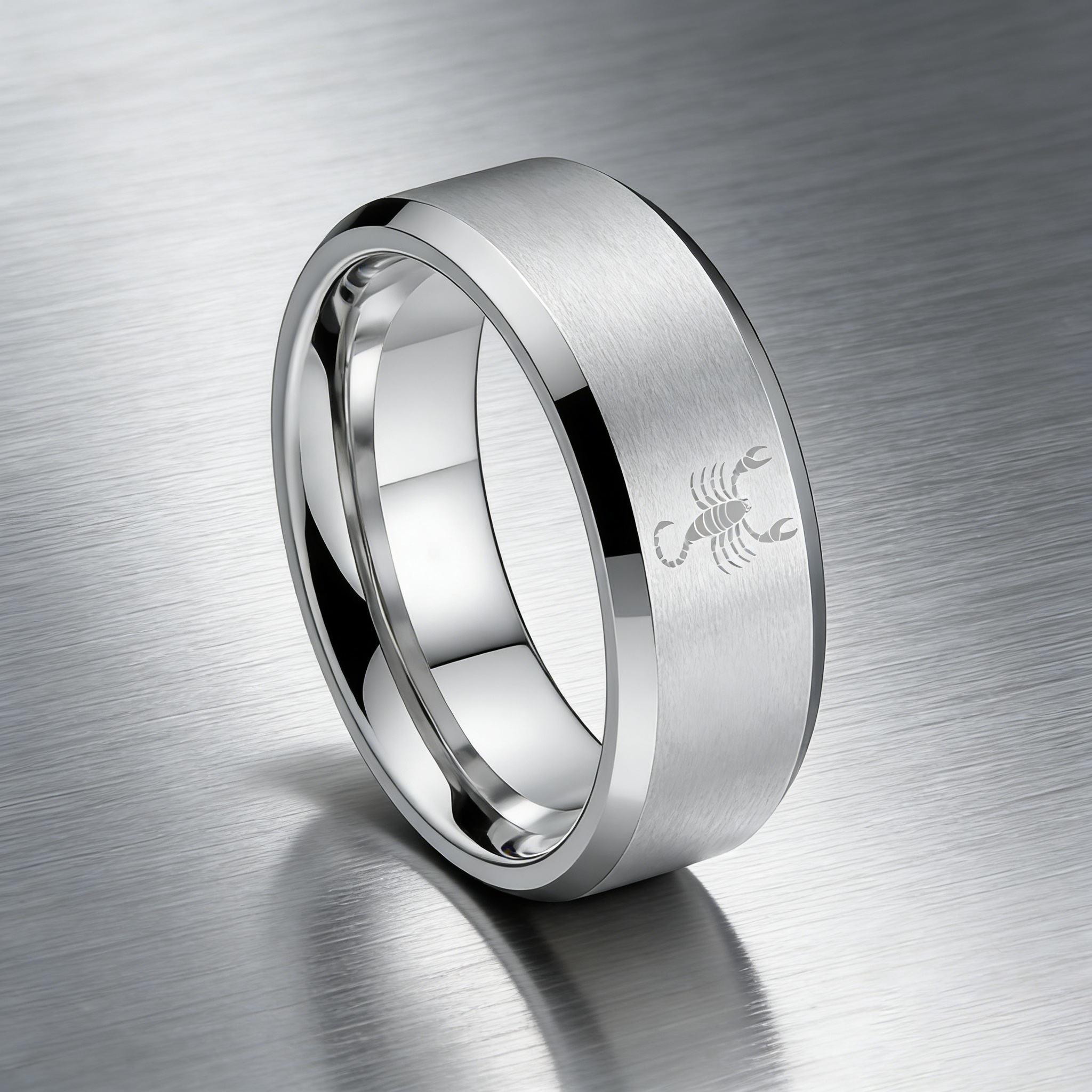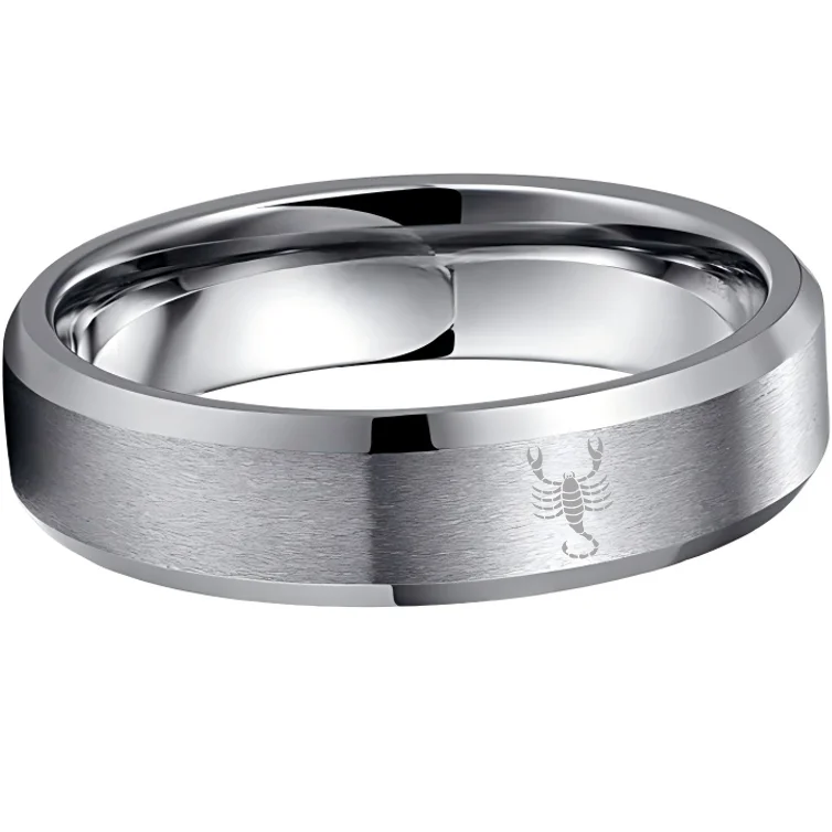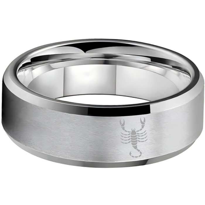 Beveled Edges Sliver Laser Etched Couple Tungsten Carbide Rings Sliver Scorpio Tungsten Wedding Band 4MM 6MM 8MM