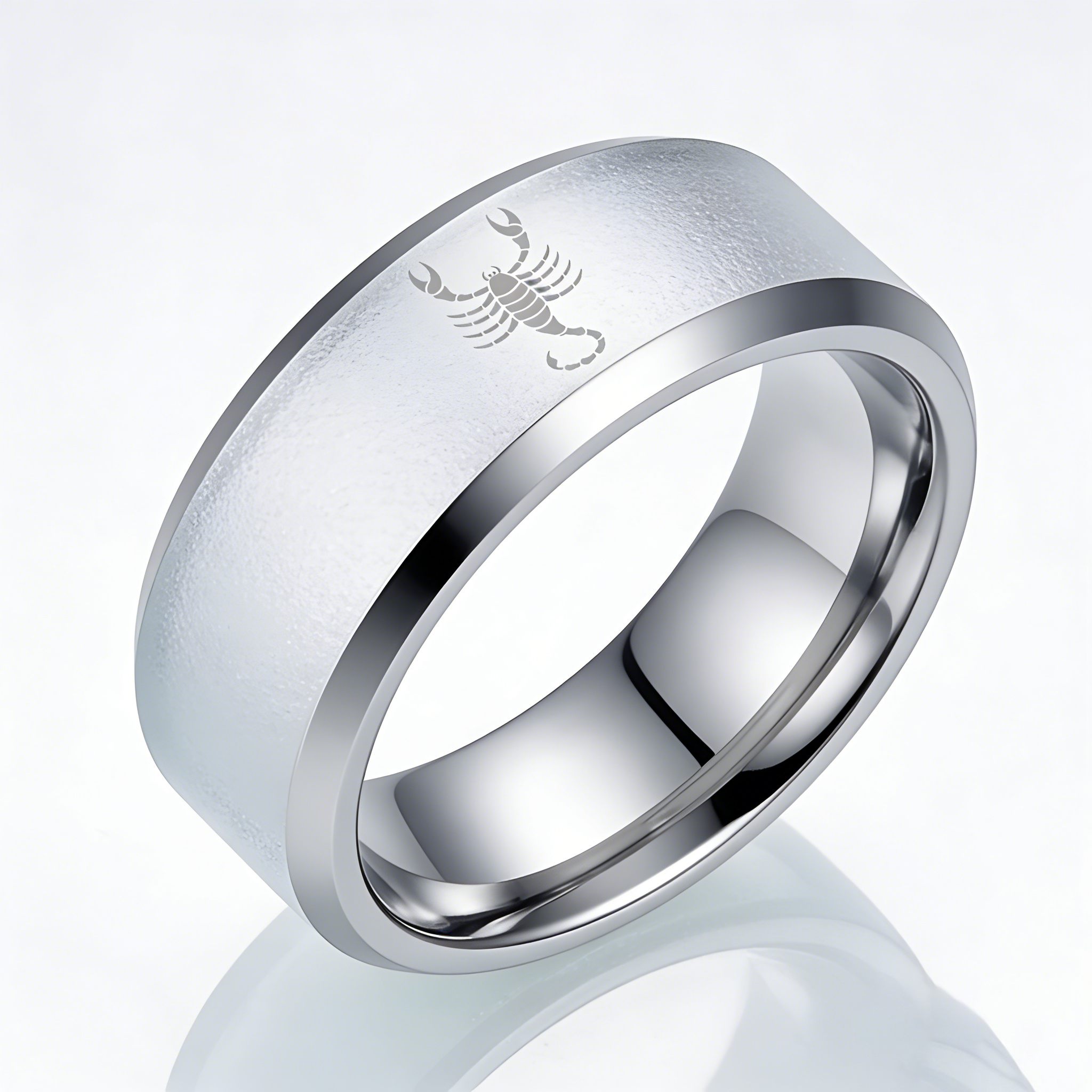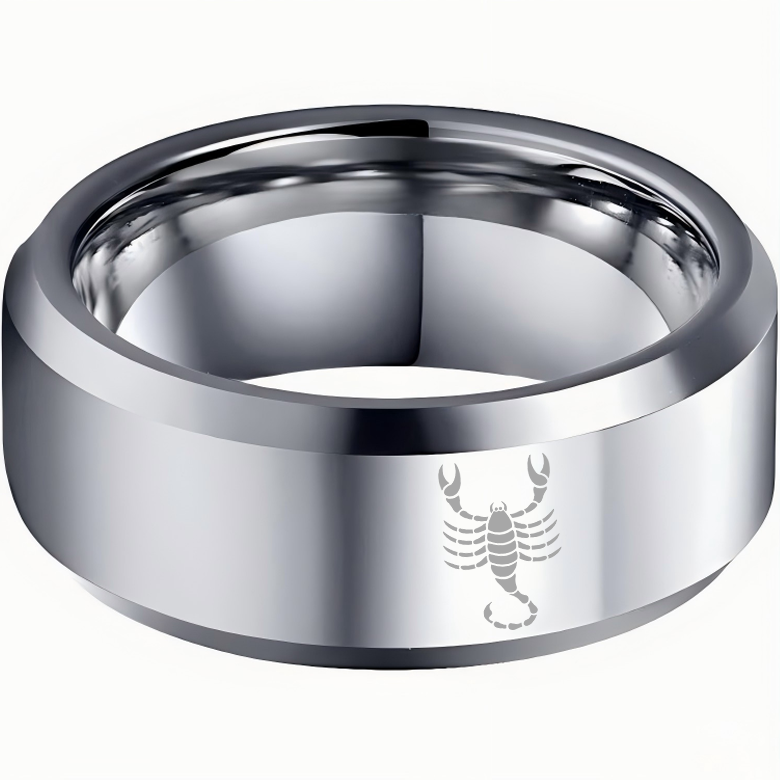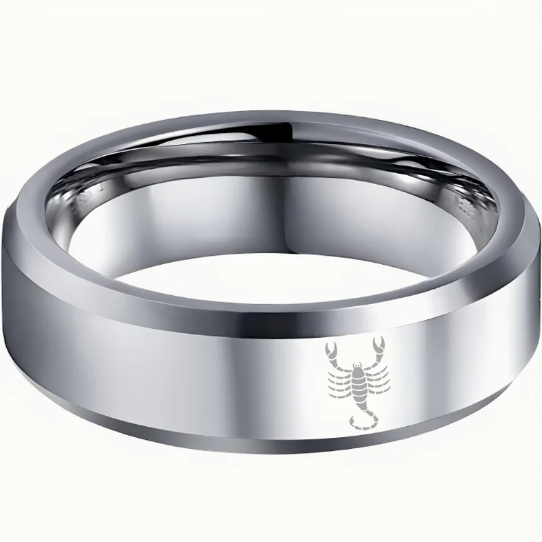 Beveled Edges Sliver Laser Etched Couple Tungsten Carbide Rings Sliver Scorpio Tungsten Wedding Bands 4MM 6MM 8MM Width