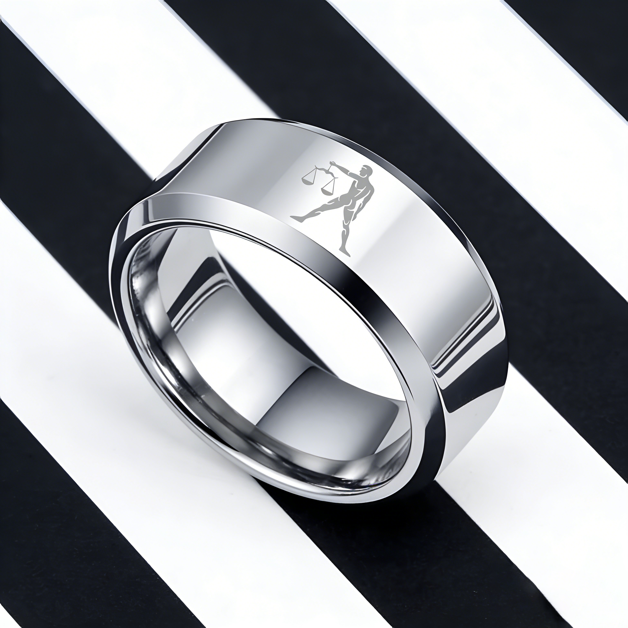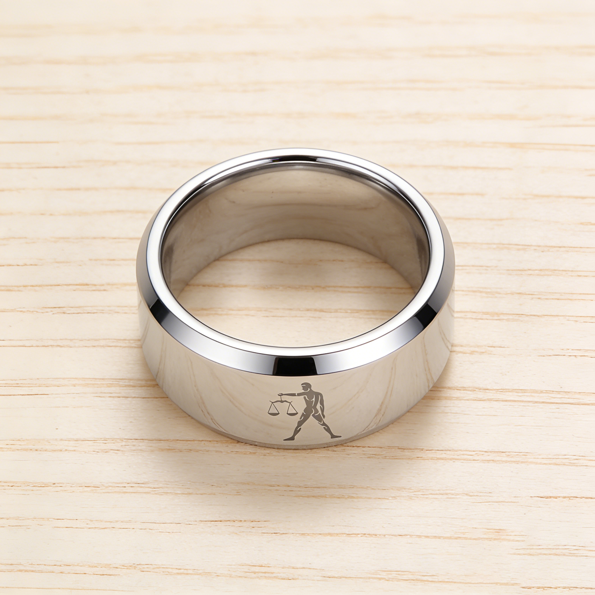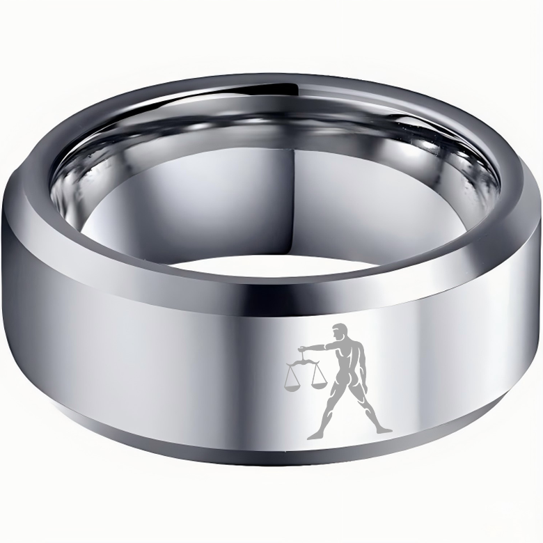 Beveled Edges Sliver Laser Etched Couple Wedding Bands Sliver Libra Tungsten Carbide Rings 4MM 6MM 8MM Width