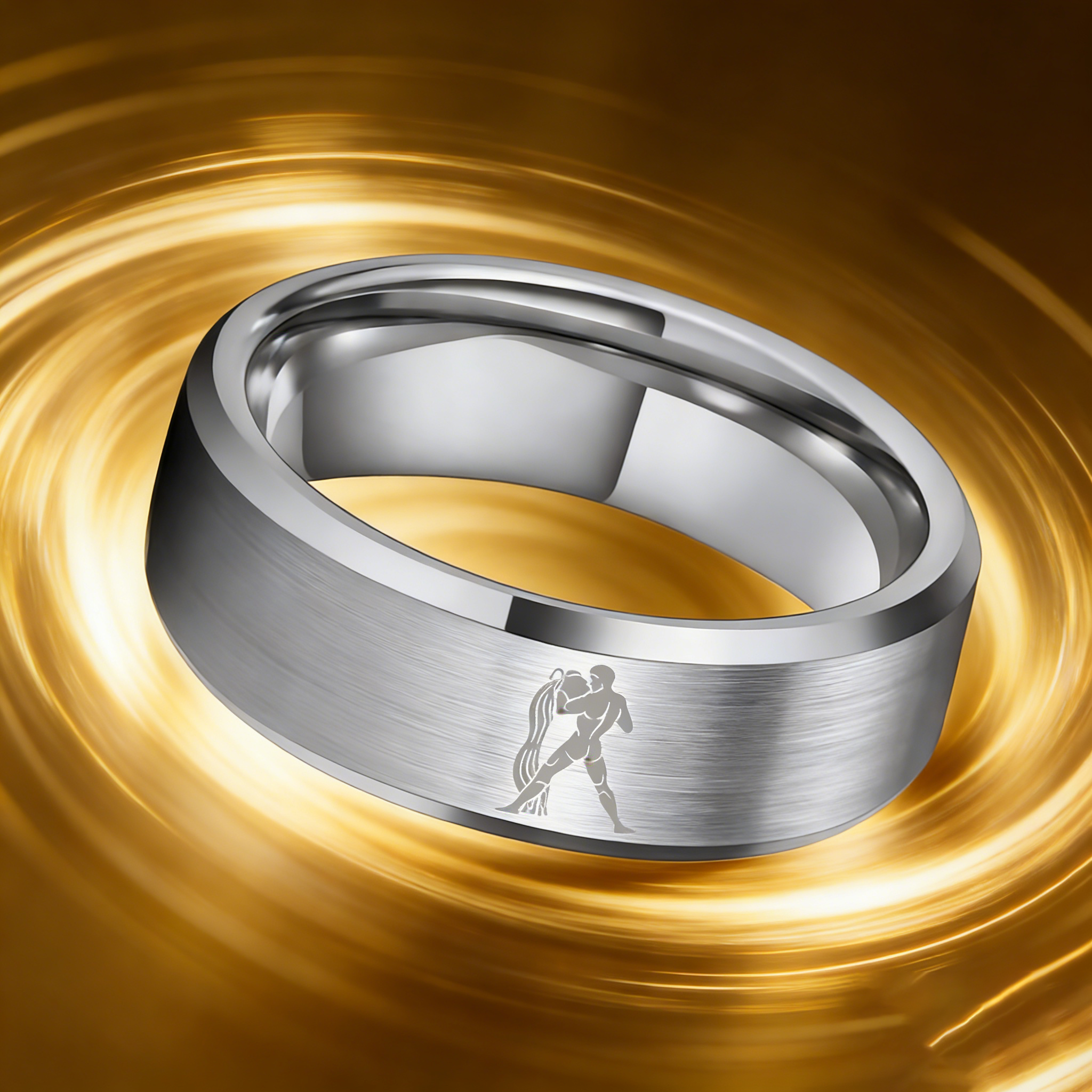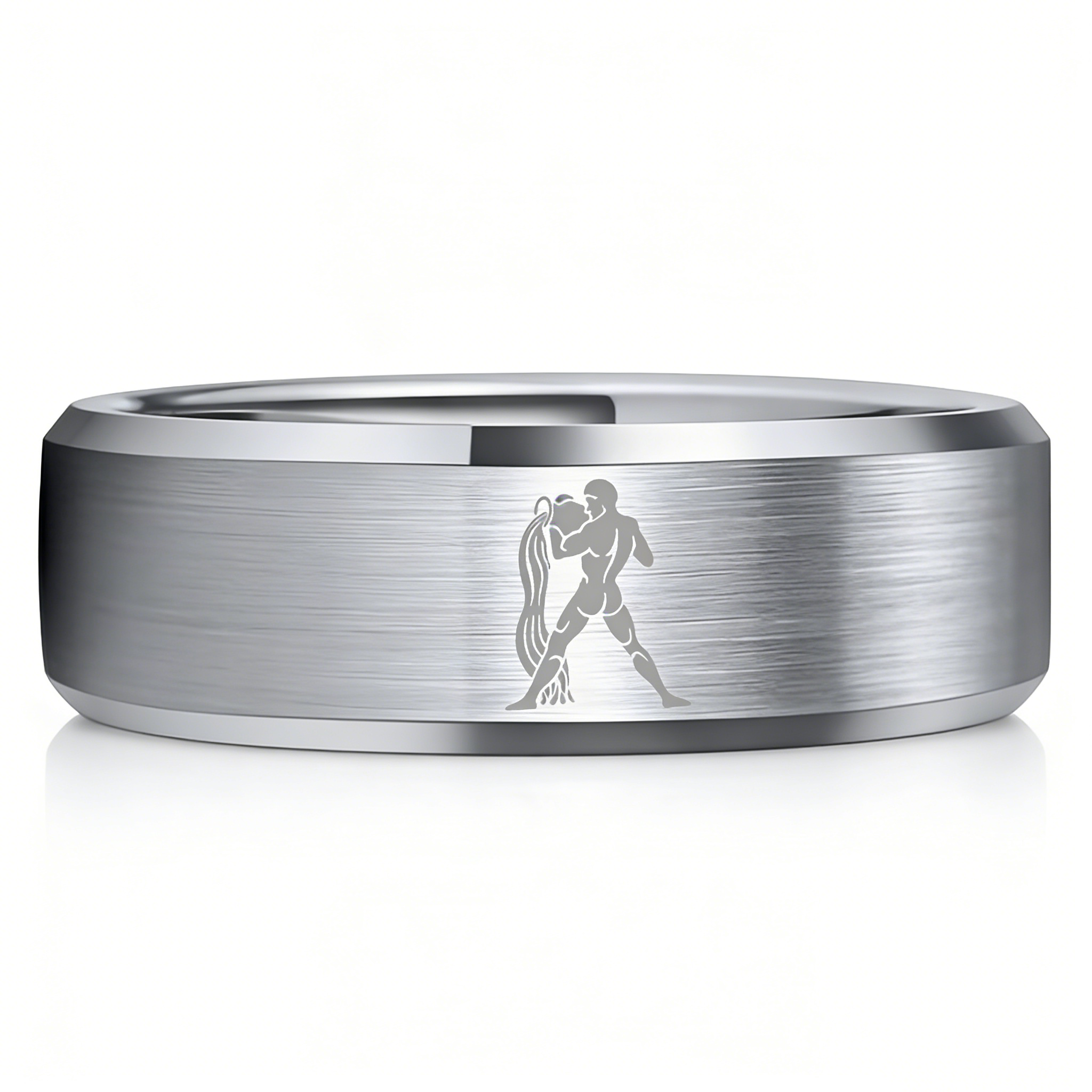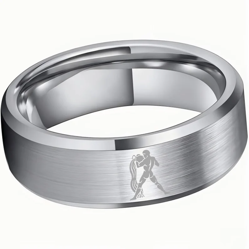 Beveled Edges Sliver Laser Etched Tungsten Carbide Rings Sliver Aquarius Couple Wedding Bands 4MM 6MM 8MM