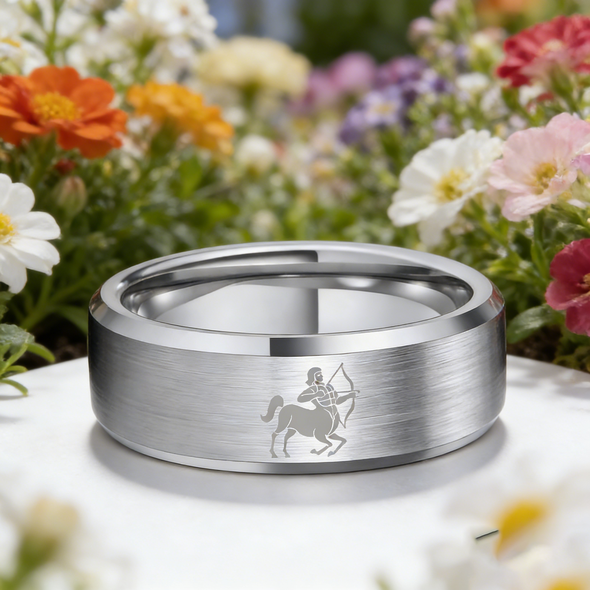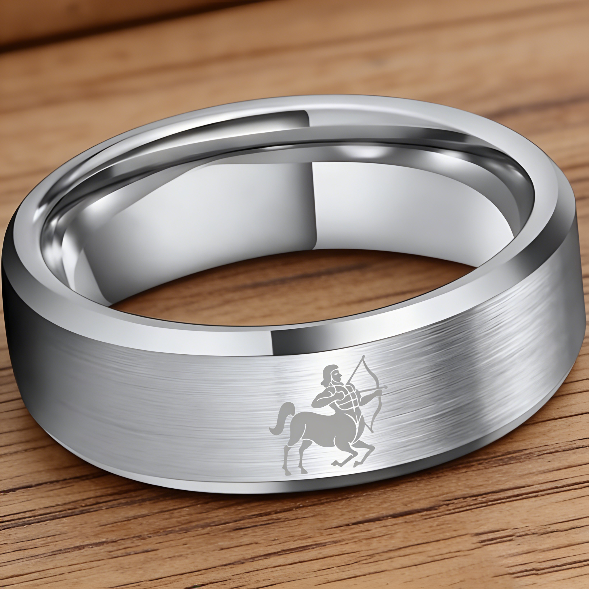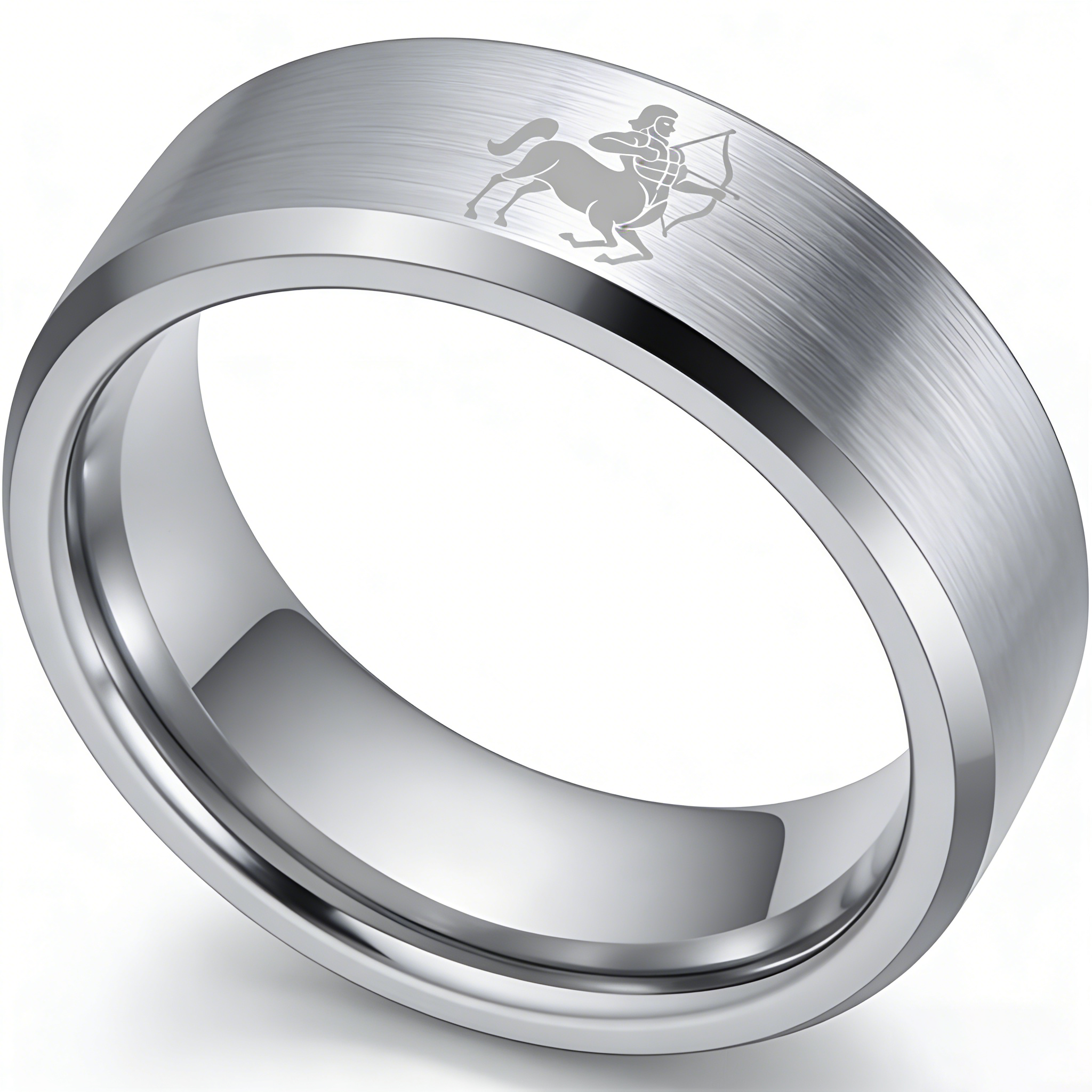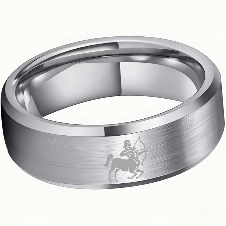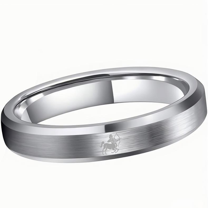 Beveled Edges Sliver Laser Etched Tungsten Carbide Rings Sliver Sagittarius Couple Wedding Bands 4MM 6MM 8MM Width