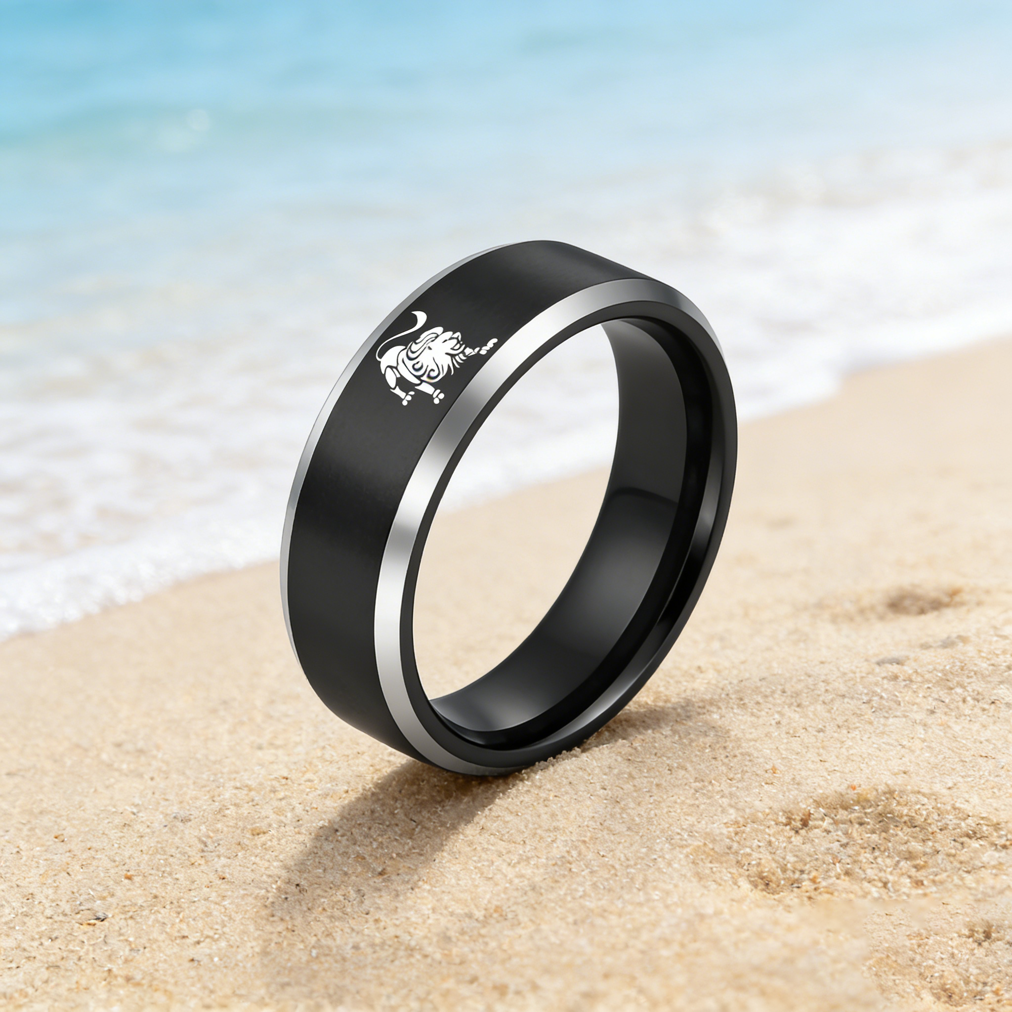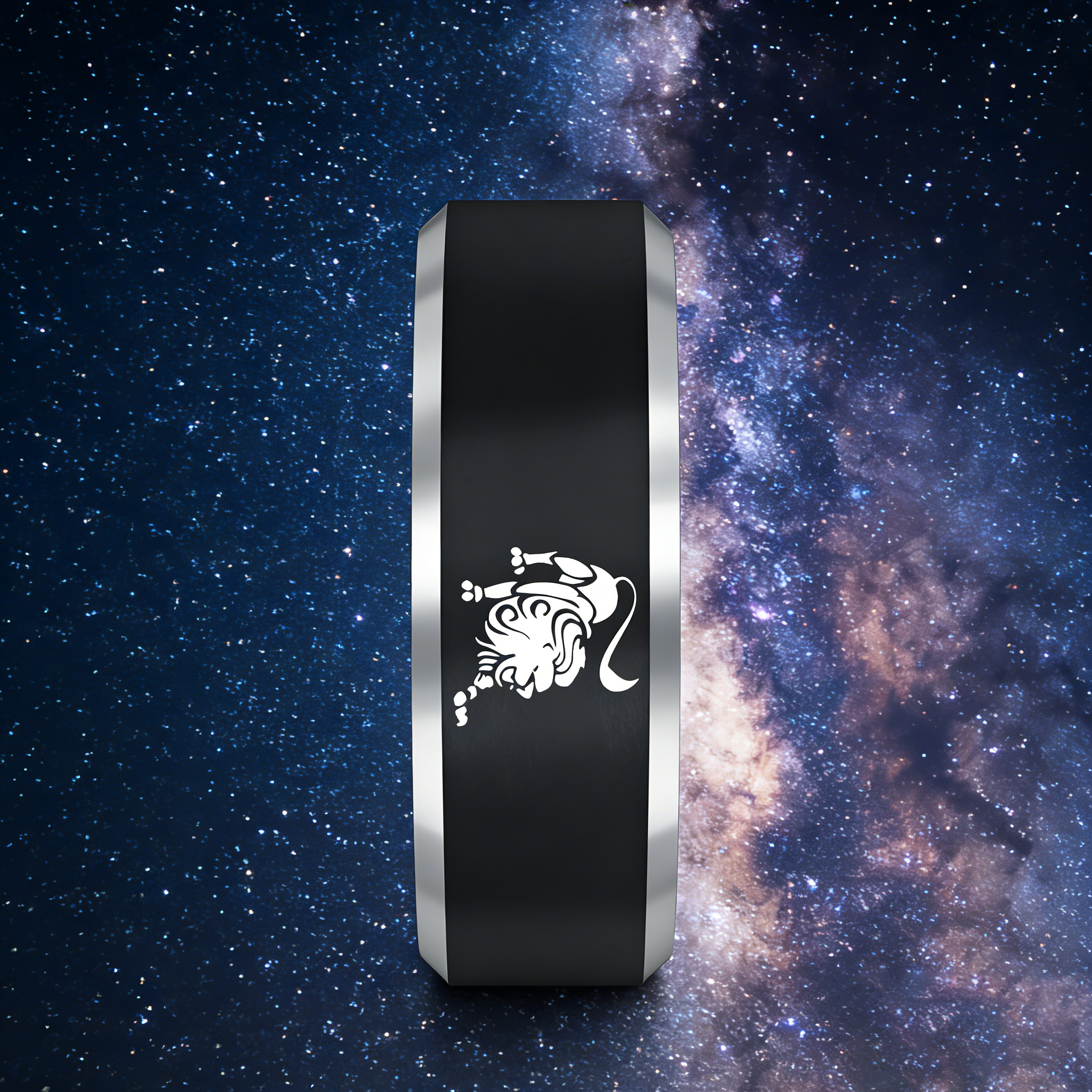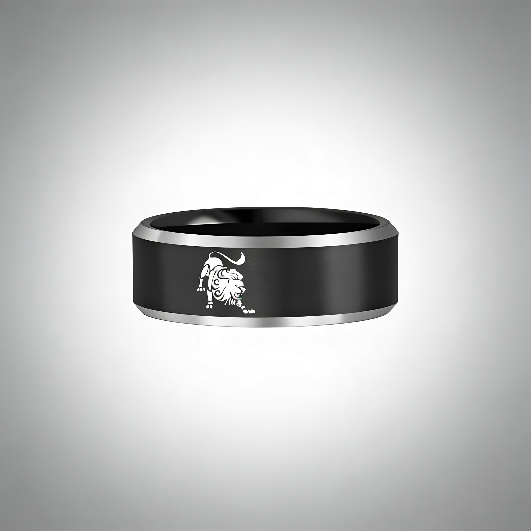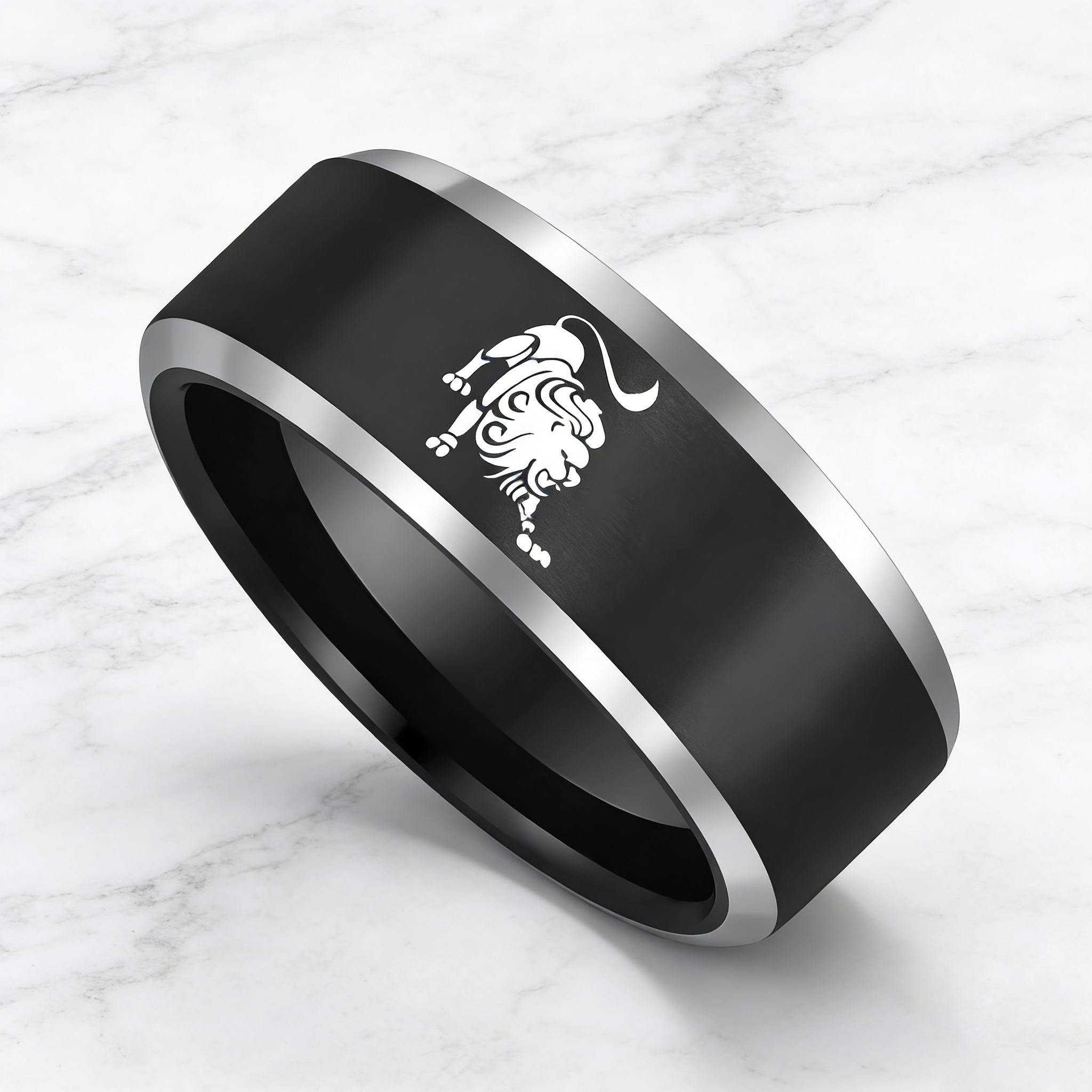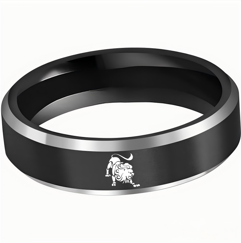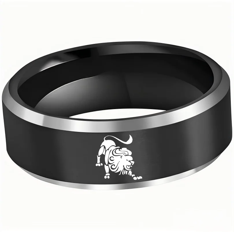 Black Leo Tungsten Carbide Rings Beveled Edges Black Laser Etched Couple Wedding Bands 4MM 6MM 8MM Width