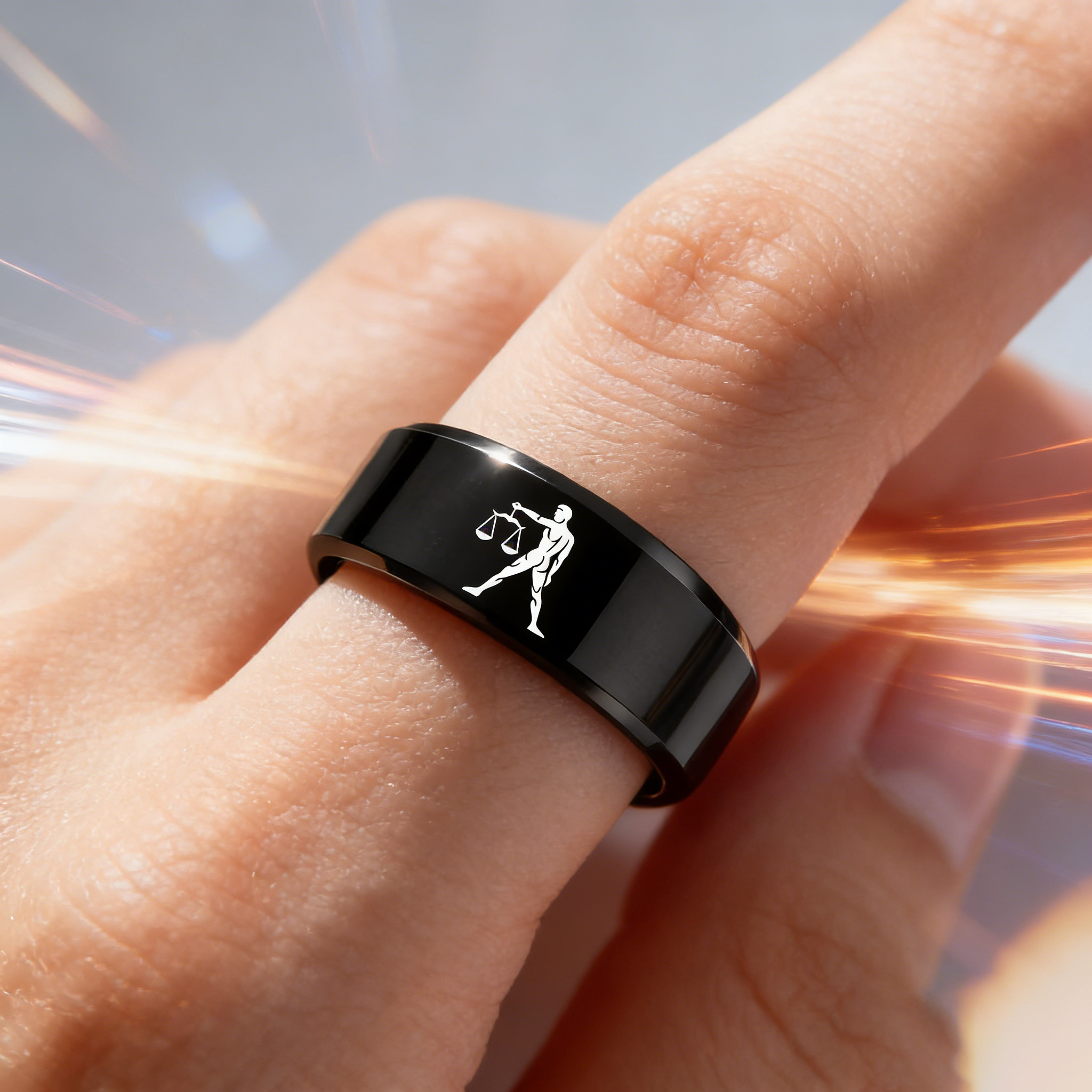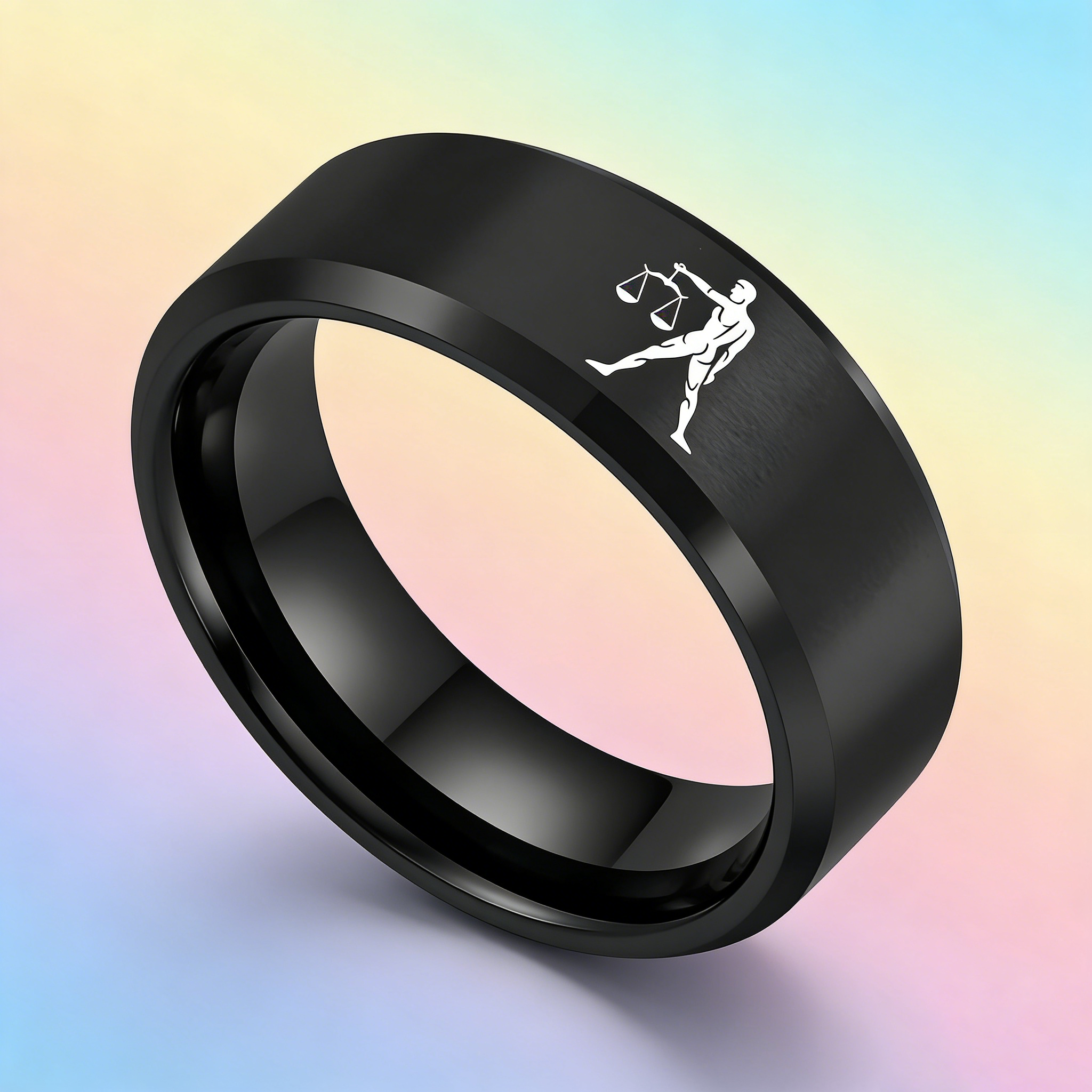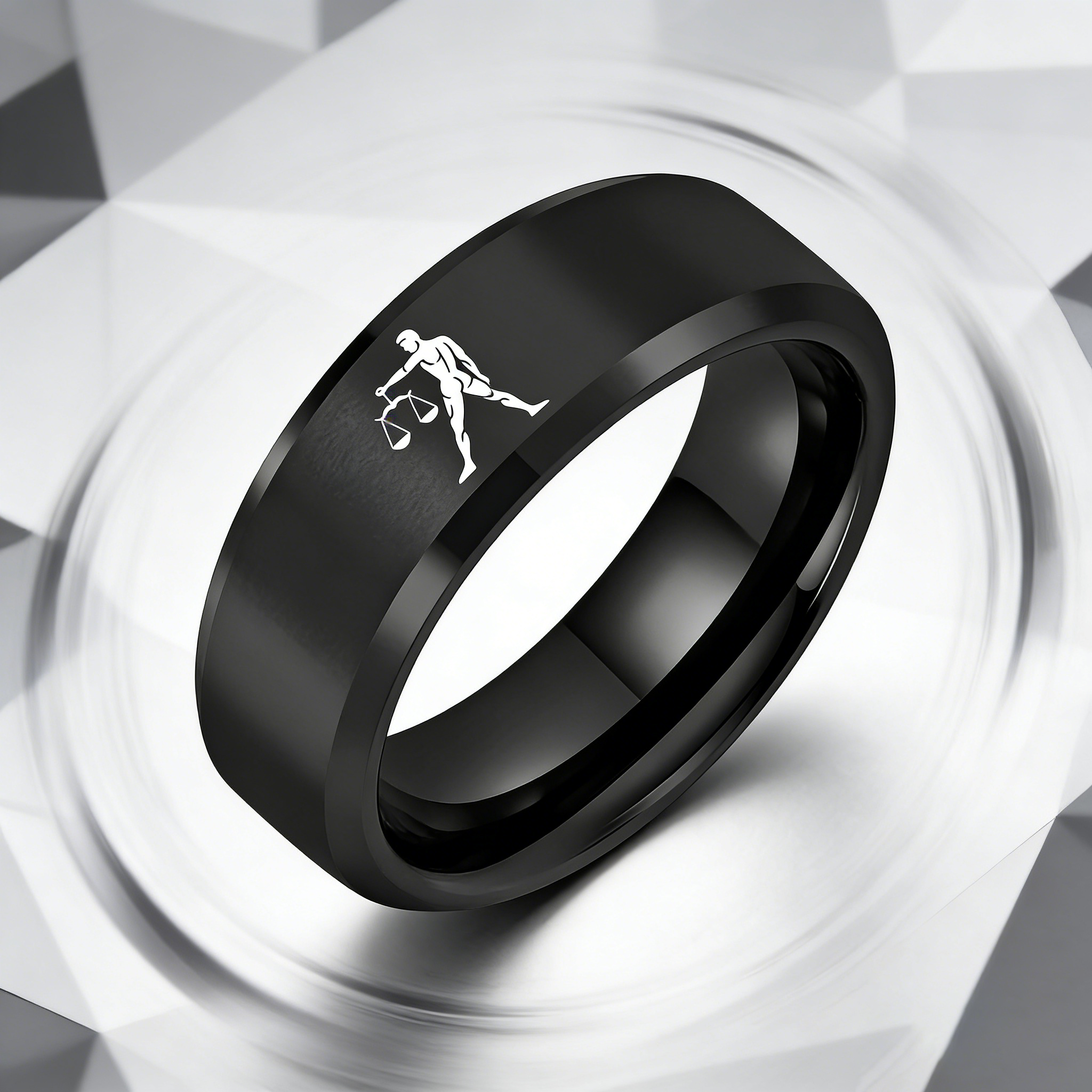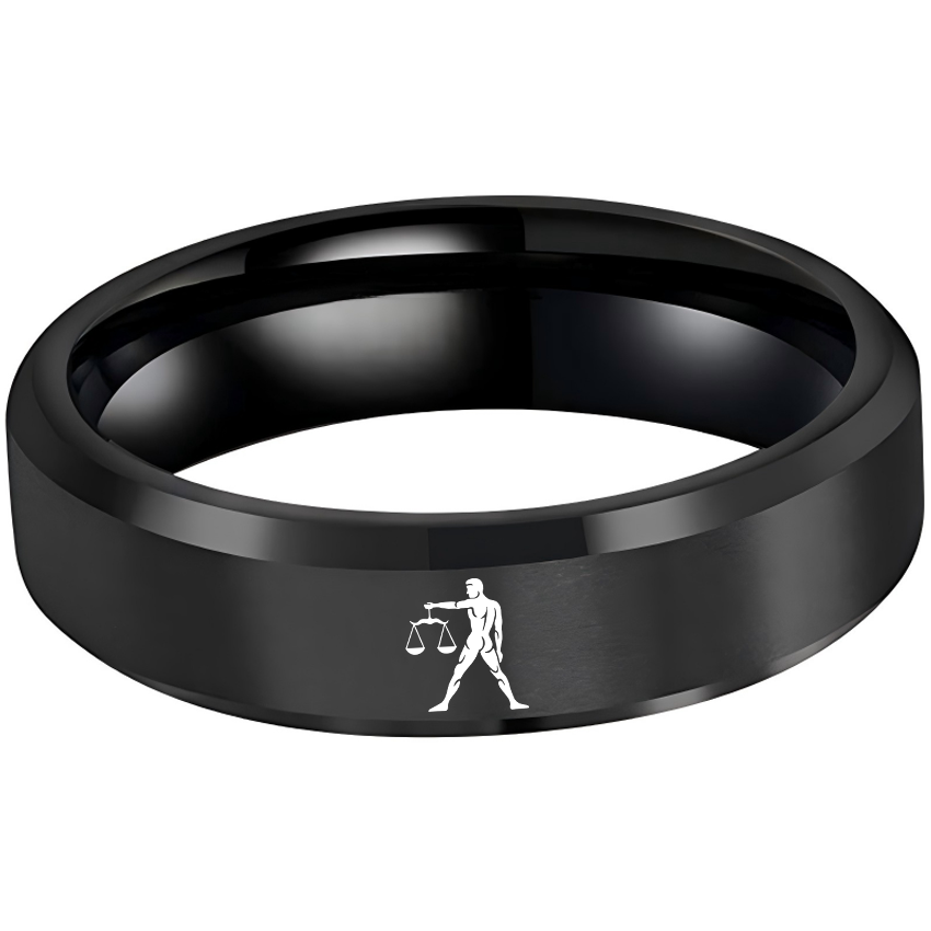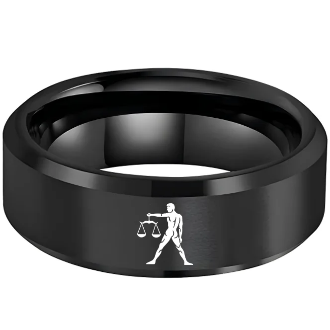 Black Libra Tungsten Carbide Rings Beveled Edges Black Laser Etched Couple Wedding Bands for Men and Women 4MM 6MM 8MM Width