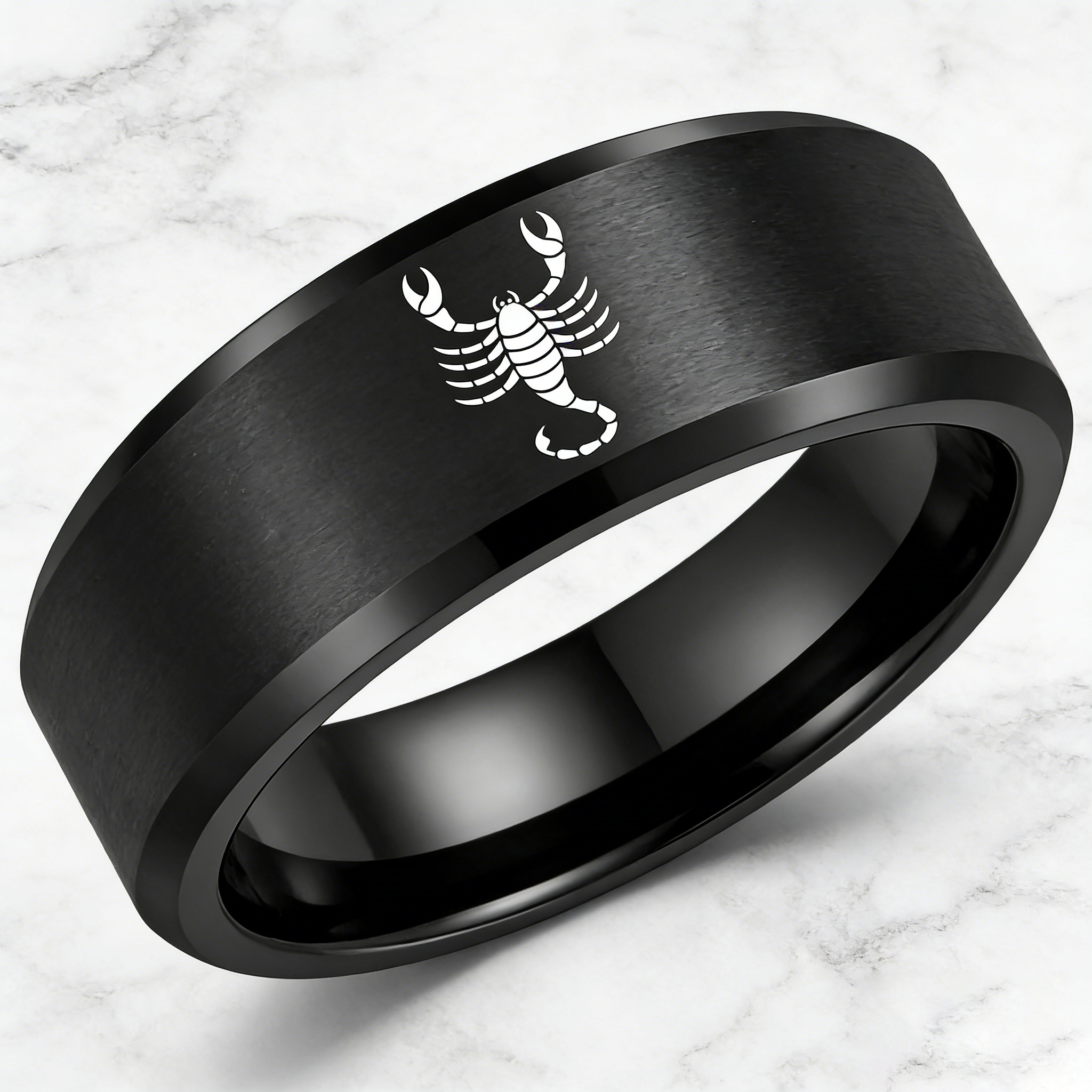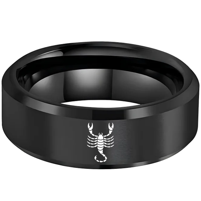 Black Scorpio Tungsten Wedding Ring Beveled Edges Black Laser Etched Couple Tungsten Carbide Rings 4MM 6MM 8MM