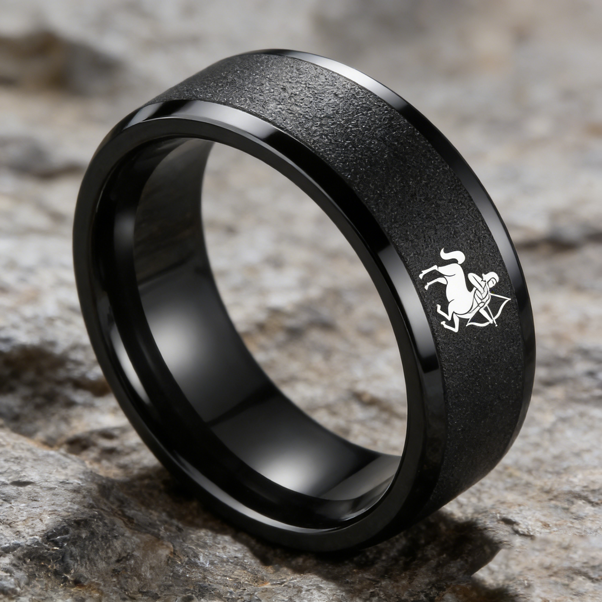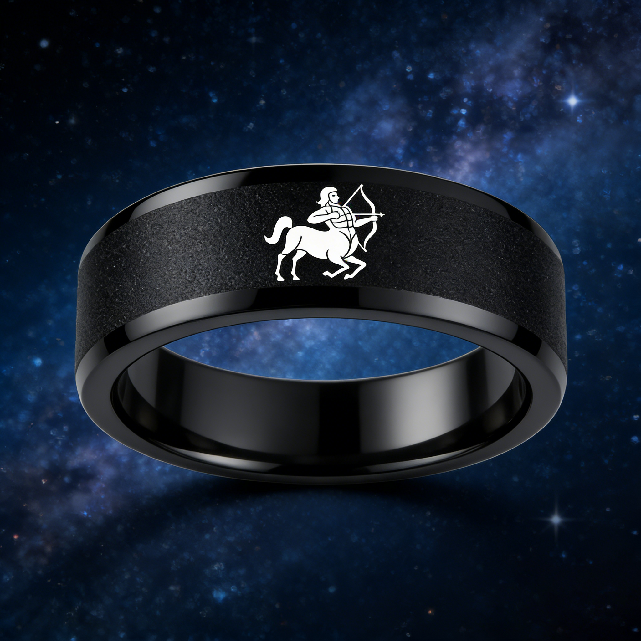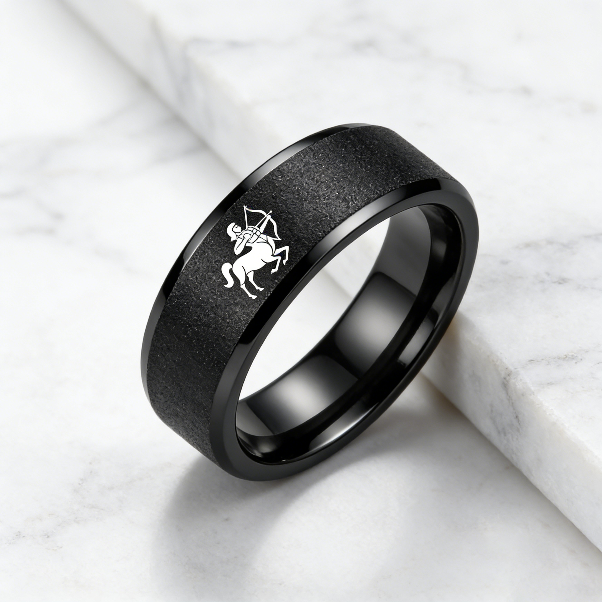 Black Tungsten Carbide Rings Flat Sagittarius Wedding Band Flat Top Comfort Fit 4MM 6MM 8MM