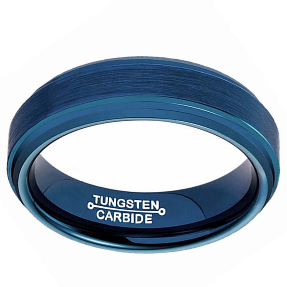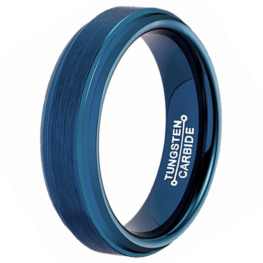 The Couples Tungsten Rings Blue Plated Step Edge Brushed Surface 6mm is a stylish and modern choice for a couples' ring set. Tungsten is a highly durable material, which makes it a great option for a women tungsten rings that will be worn daily. The blue plated step edge design adds a pop of color and interest to the ring, while the brushed surface gives it a sleek and modern look. The 6mm width is a comfortable and standard width for both men and women's rings.