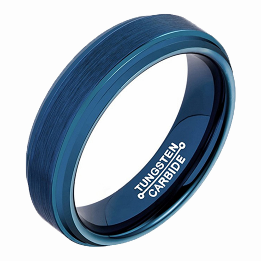 6MM 8MM Couples Tungsten Rings Blue Plated Step Edge Brushed Surface
