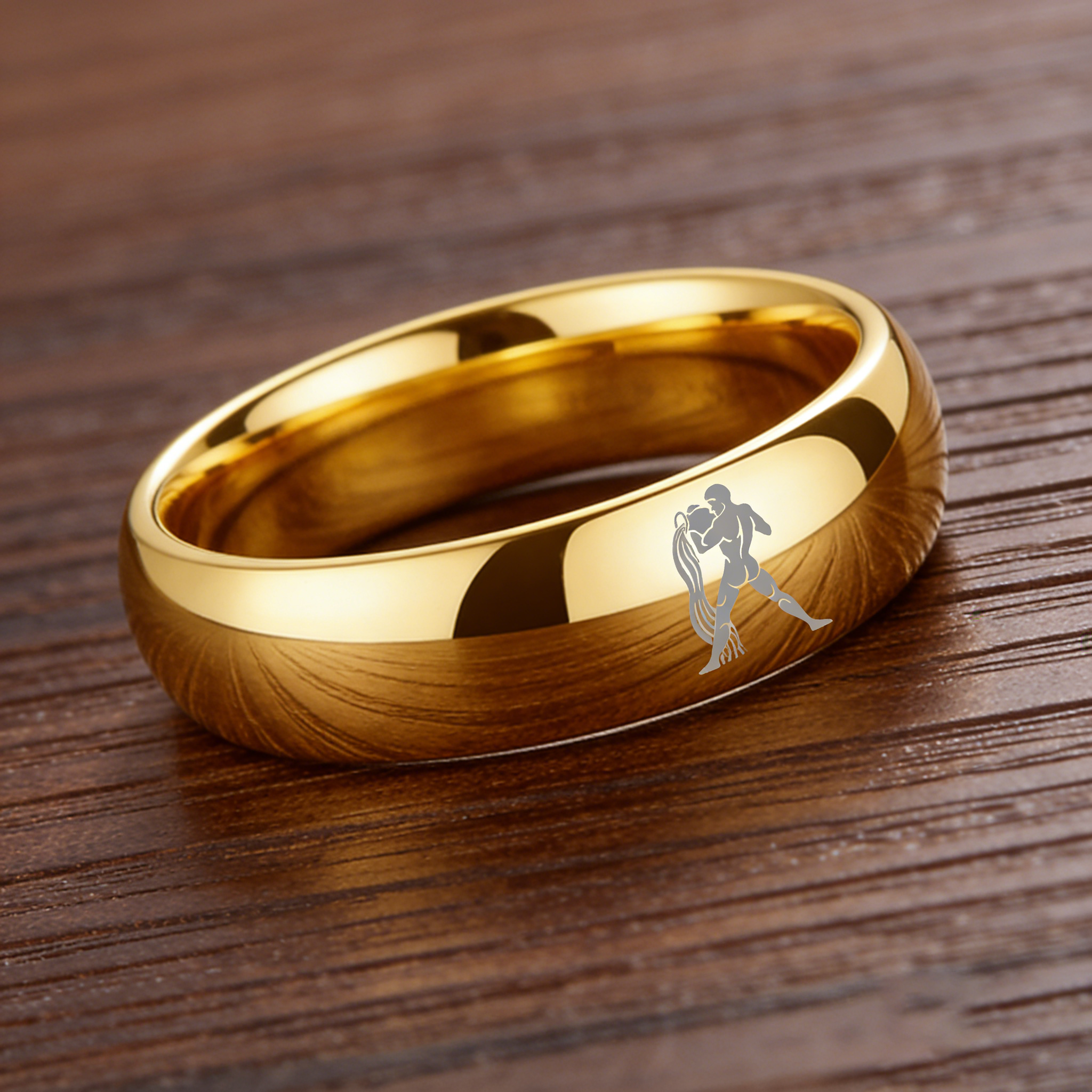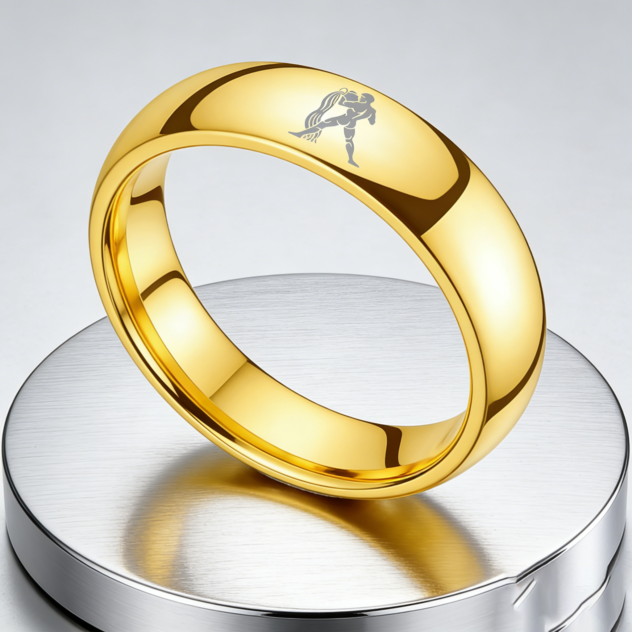 Dome Gold Tungsten Carbide Rings Aquarius Couples Tungsten Wedding Bands for Men or Women 4MM 6MM 8MM Width