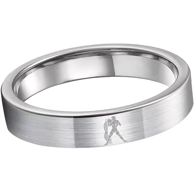 Flat Aquarius Tungsten Wedding Bands Tungsten Ring Sliver Comfort fit for Womens or Mens 4MM 6MM 8MM