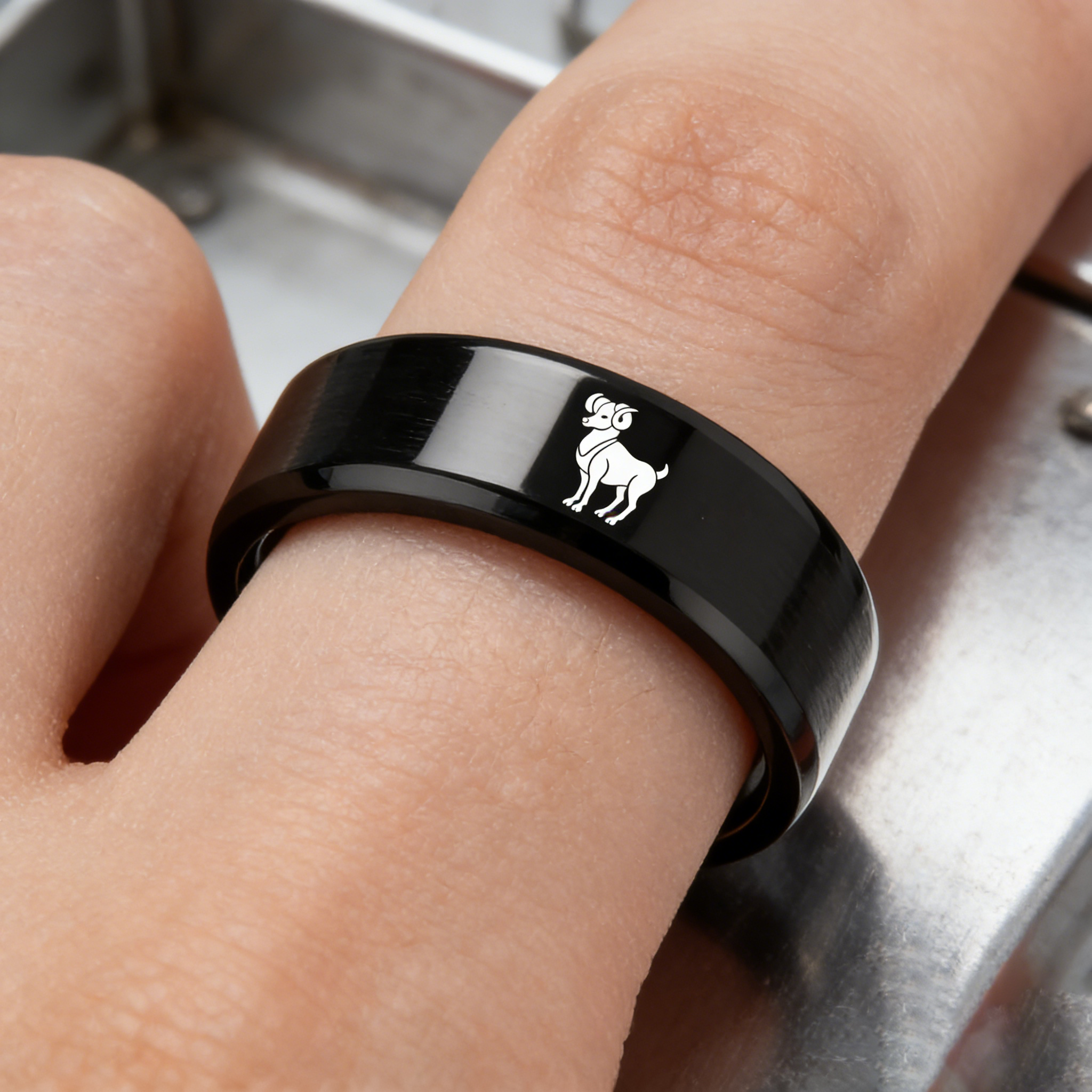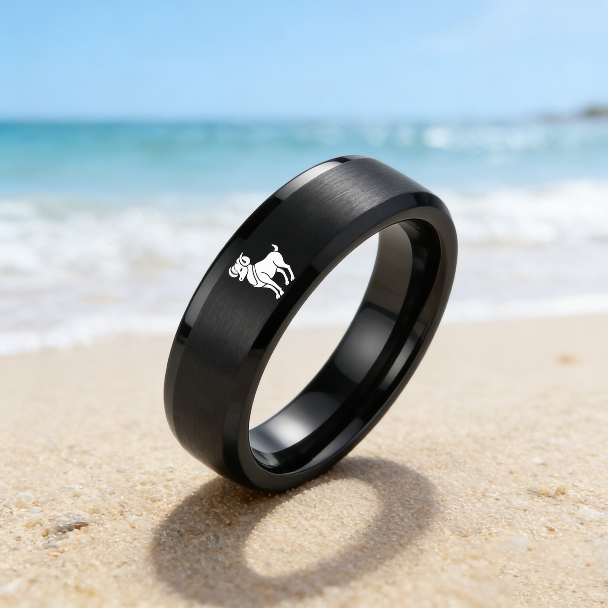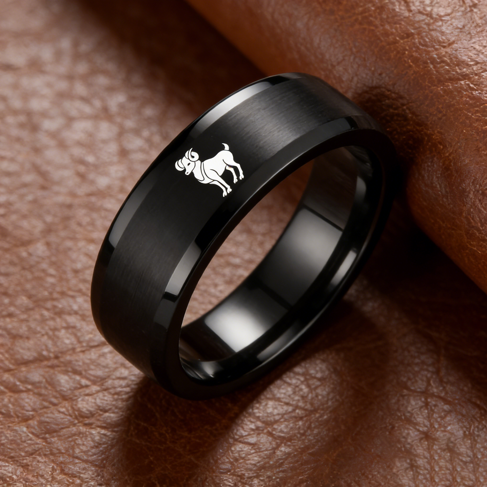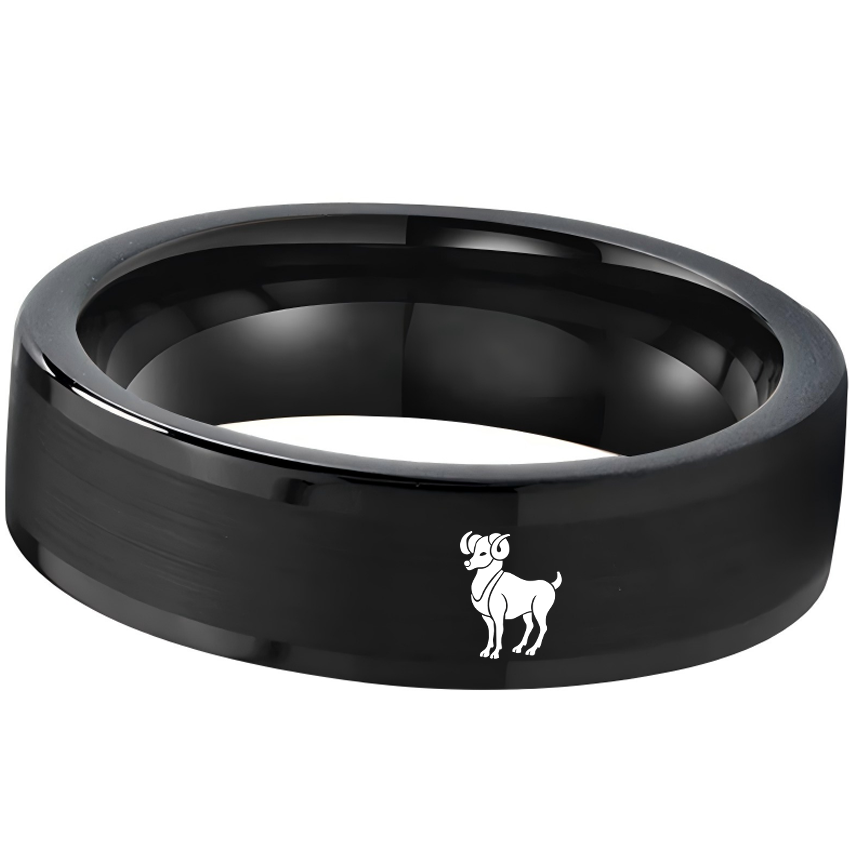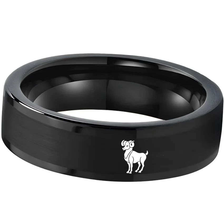 Flat Aries Tungsten Wedding Bands Black Tungsten Rings Comfort fit for Womens or Mens 4MM 6MM 8MM