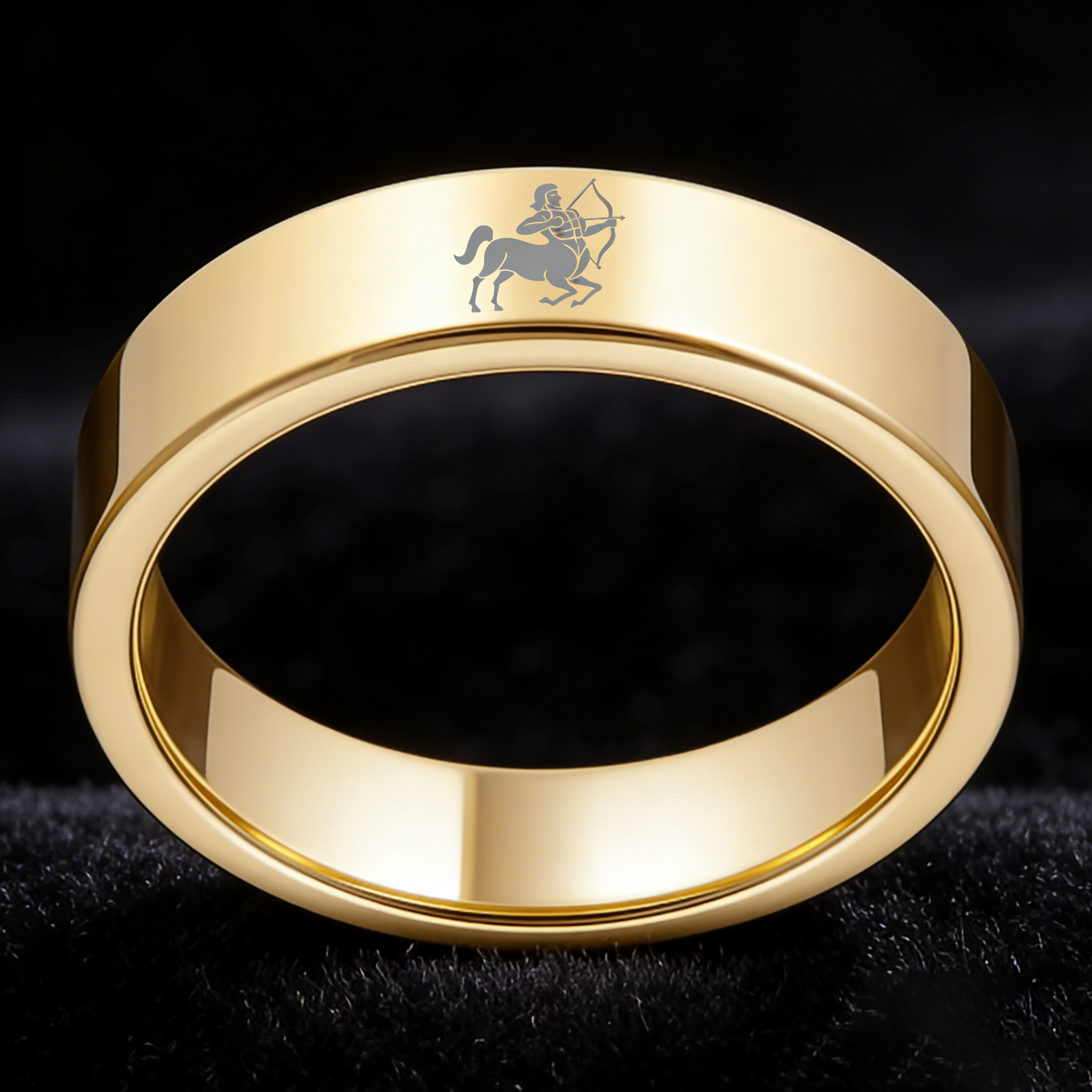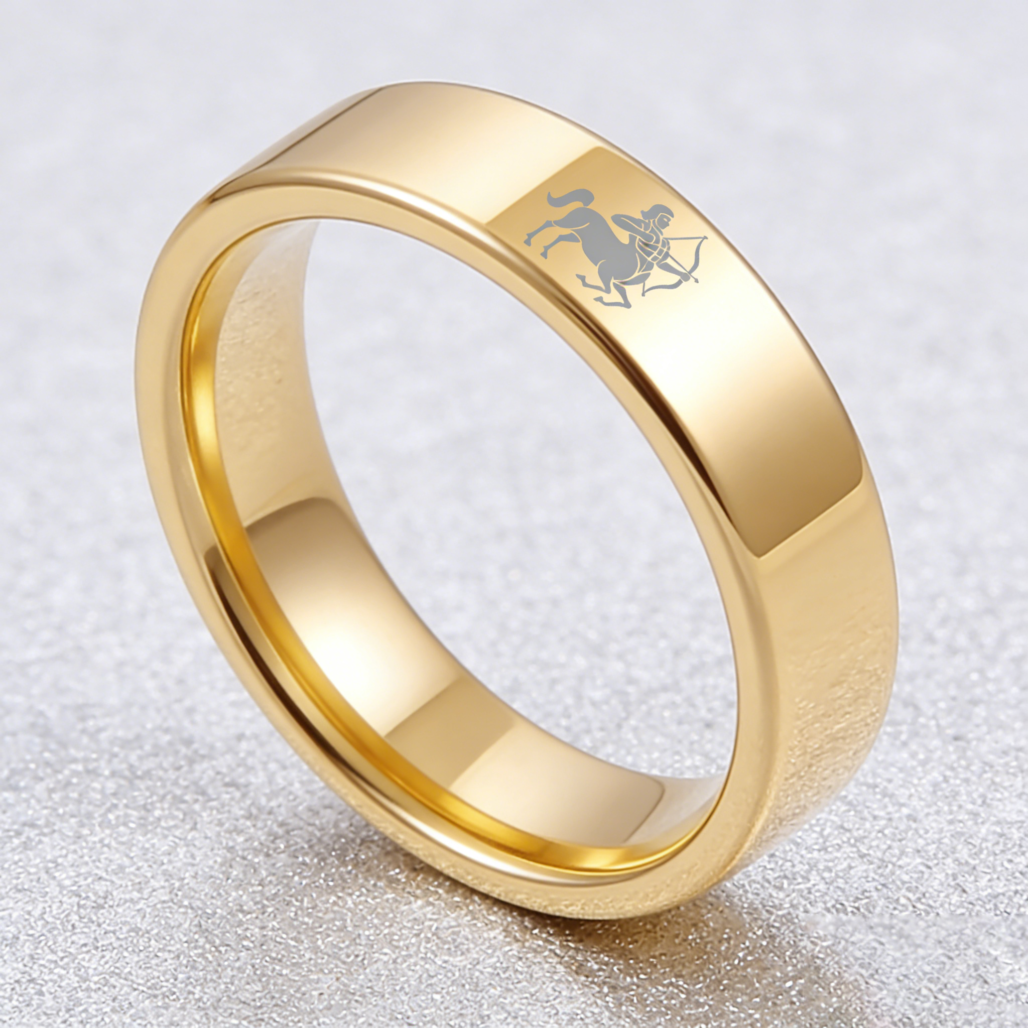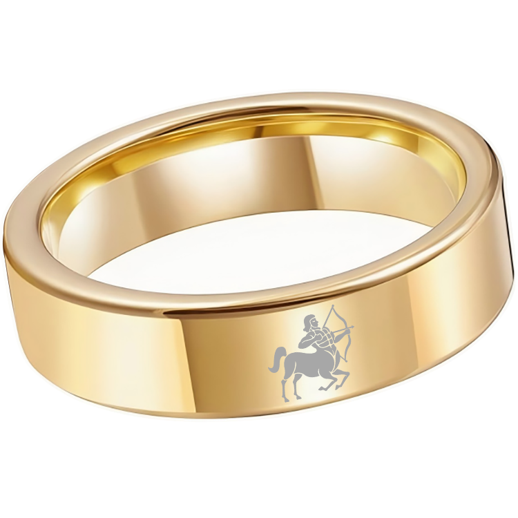 Gold Tungsten Carbide Rings Flat Sagittarius Wedding Band Flat Top Comfort Fit 4MM 6MM 8MM
