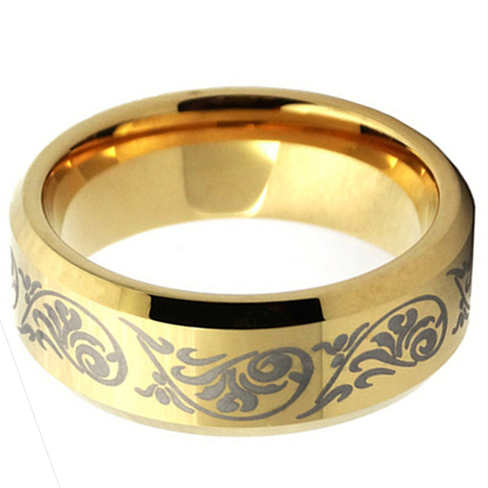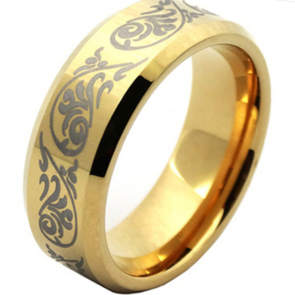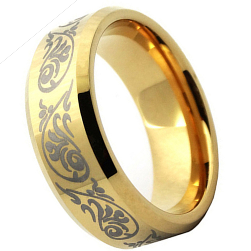 6MM 8MM Gold Tungsten Wedding Rings Black Laser Pattern Beveled Edge Men Jewelry
