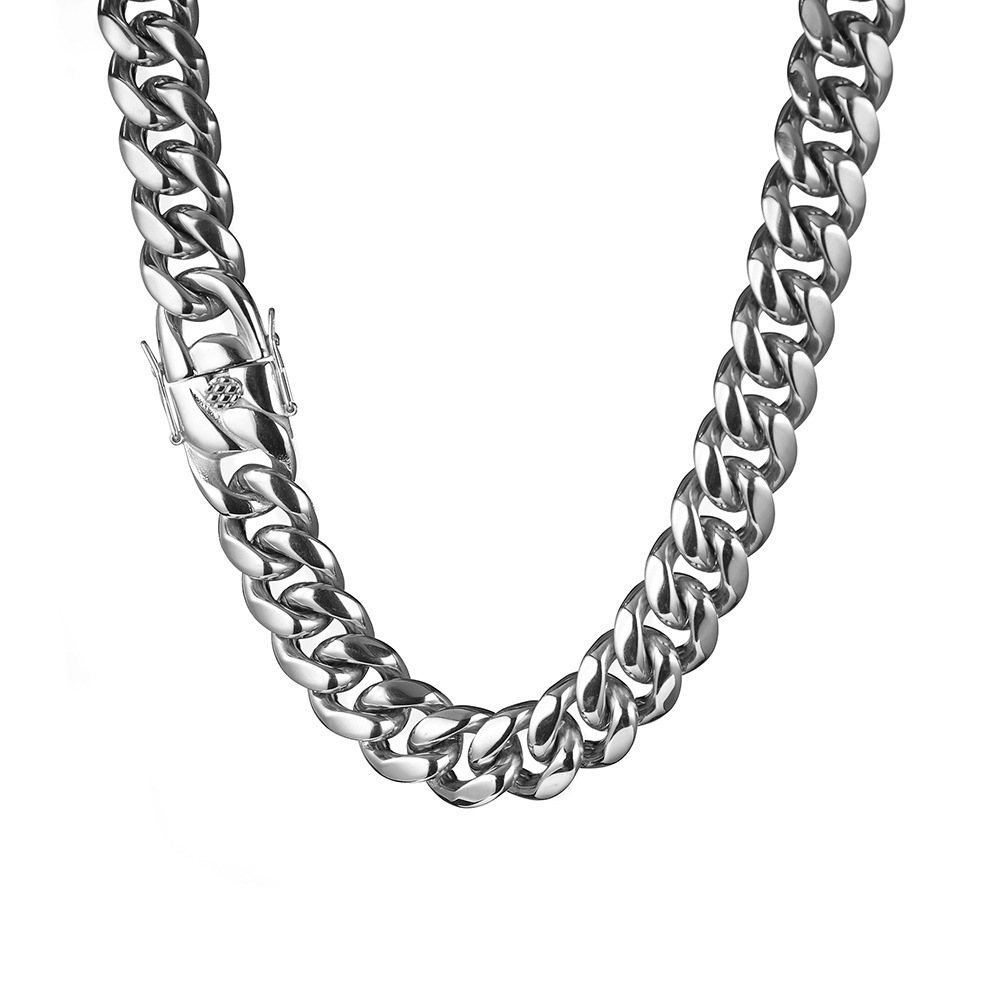 Men Curb Chain Necklace Sliver Plated 22mm Titanium Stainless Steel/Black Chunky Double Tight Cuban Link Hip Hop Neck Chains for Men Boys
