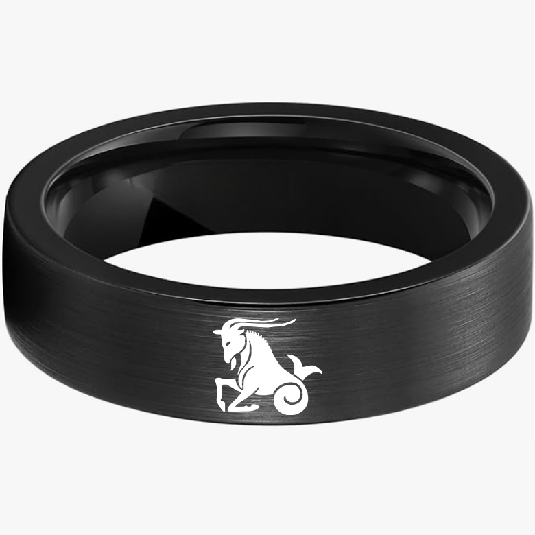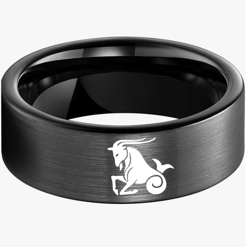 Men Women Black Capricorn Tungsten Carbide Rings Couple Wedding Bands Flat Comfort Fit 4MM 6MM 8MM Width
