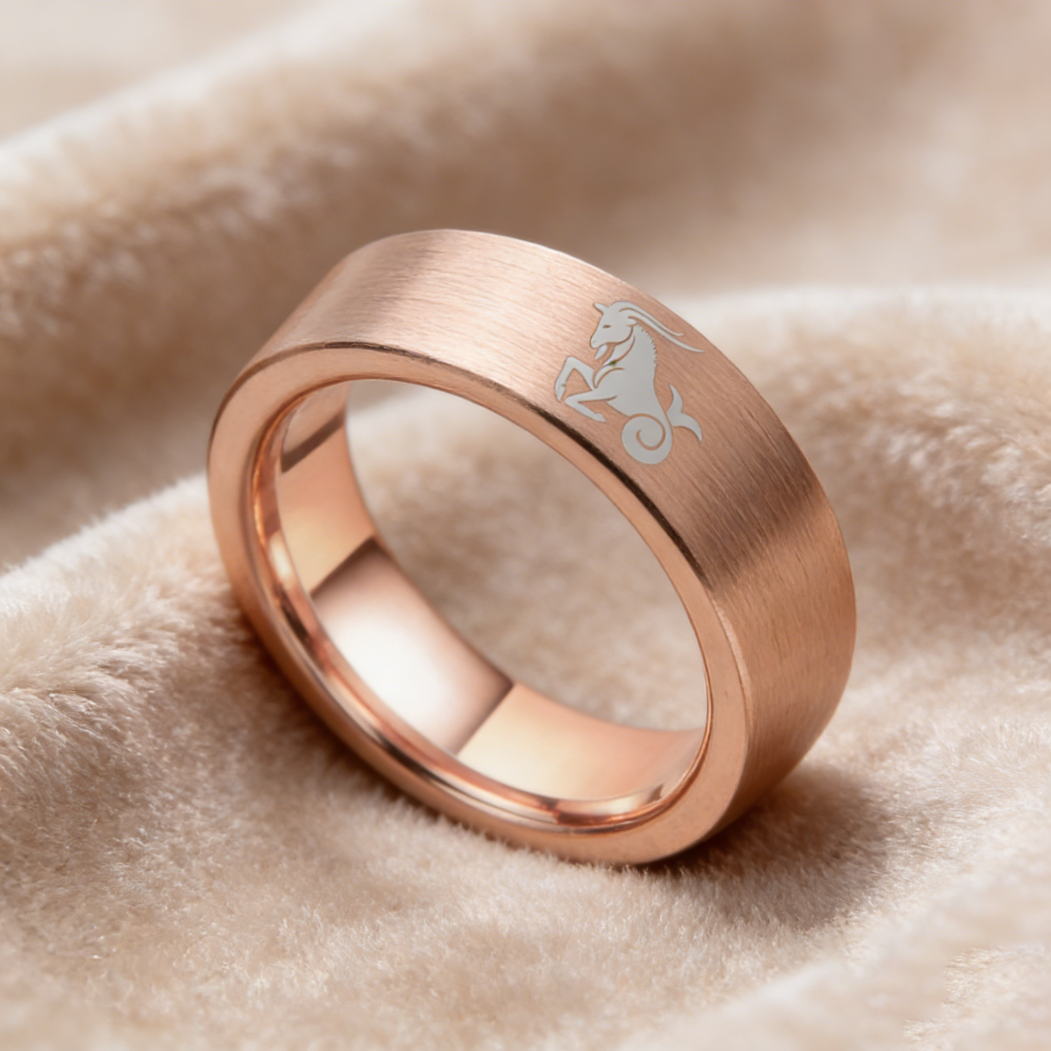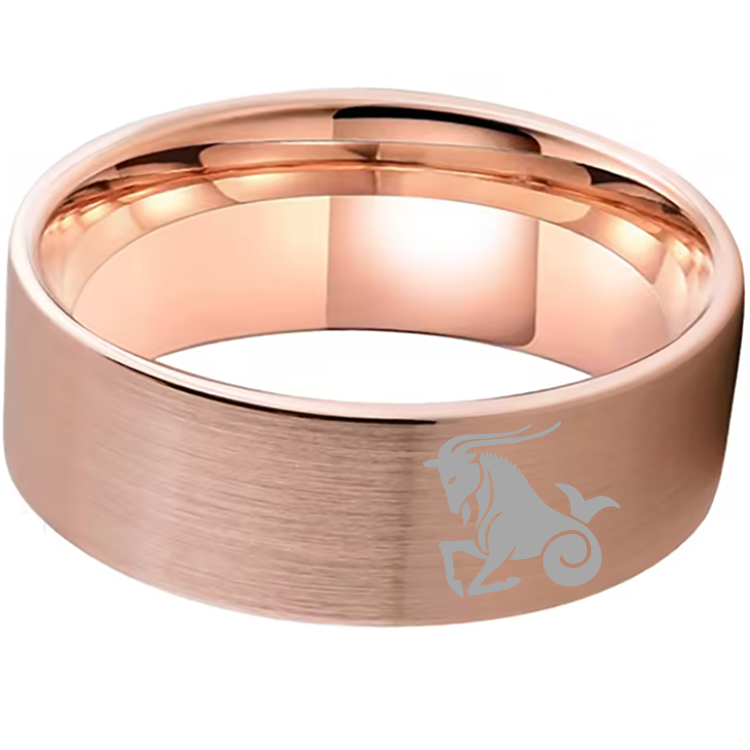 Men Women Rose Gold Capricorn Tungsten Carbide Rings Couple Wedding Bands Flat Comfort Fit 4MM 6MM 8MM Width