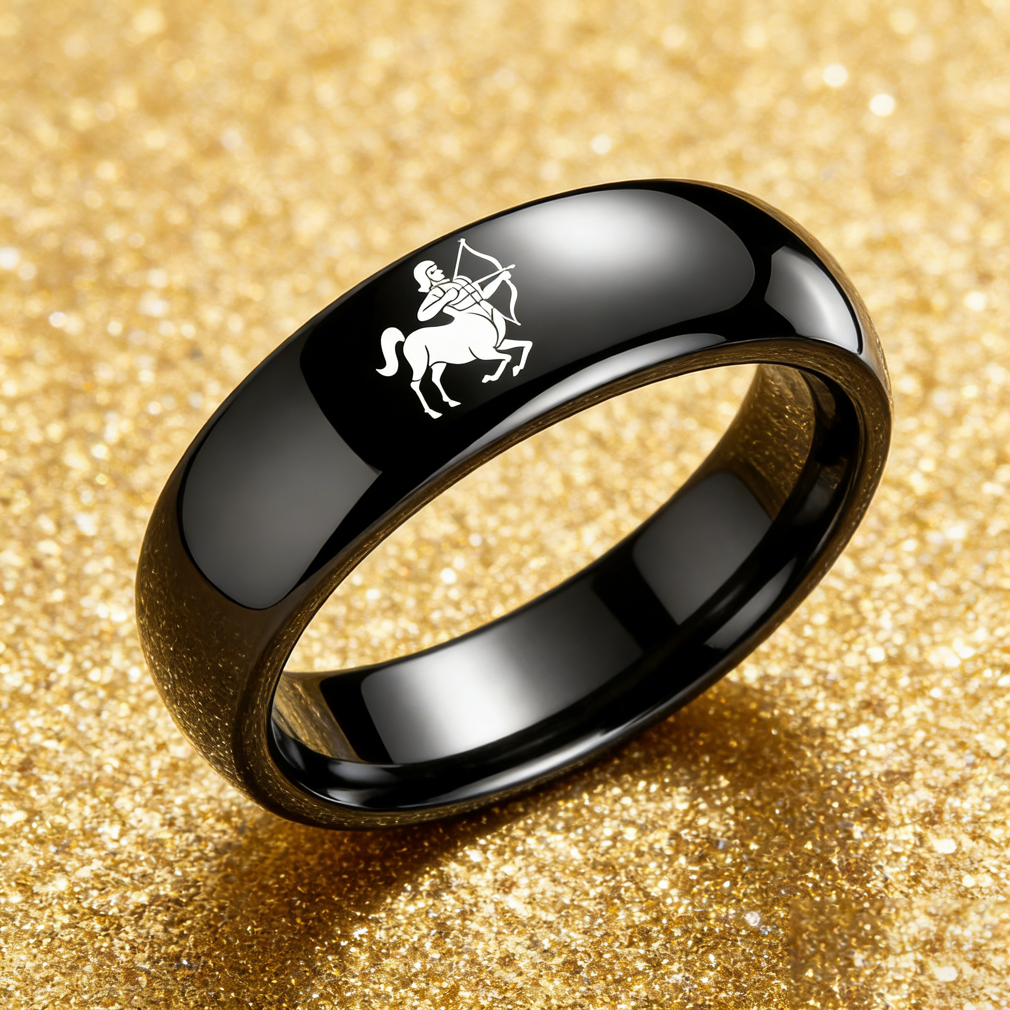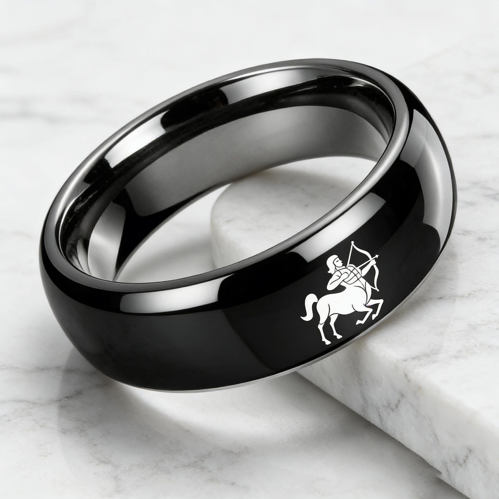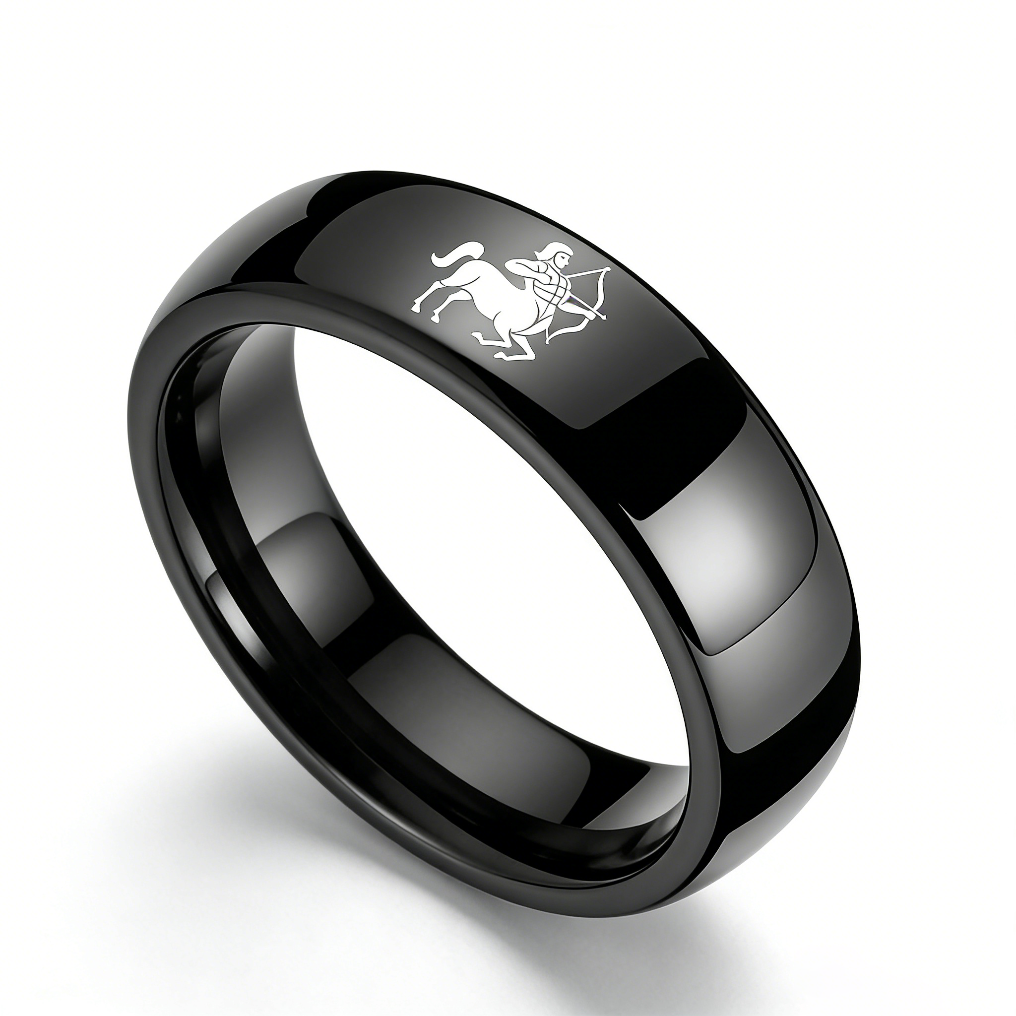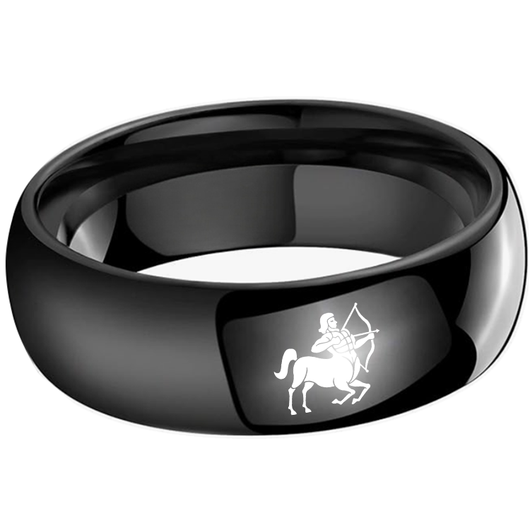 Men Women Sagittarius Tungsten Carbide Rings Prints Laser Design Domed Top Black Tungsten Wedding Band 4MM 6MM 8MM Width