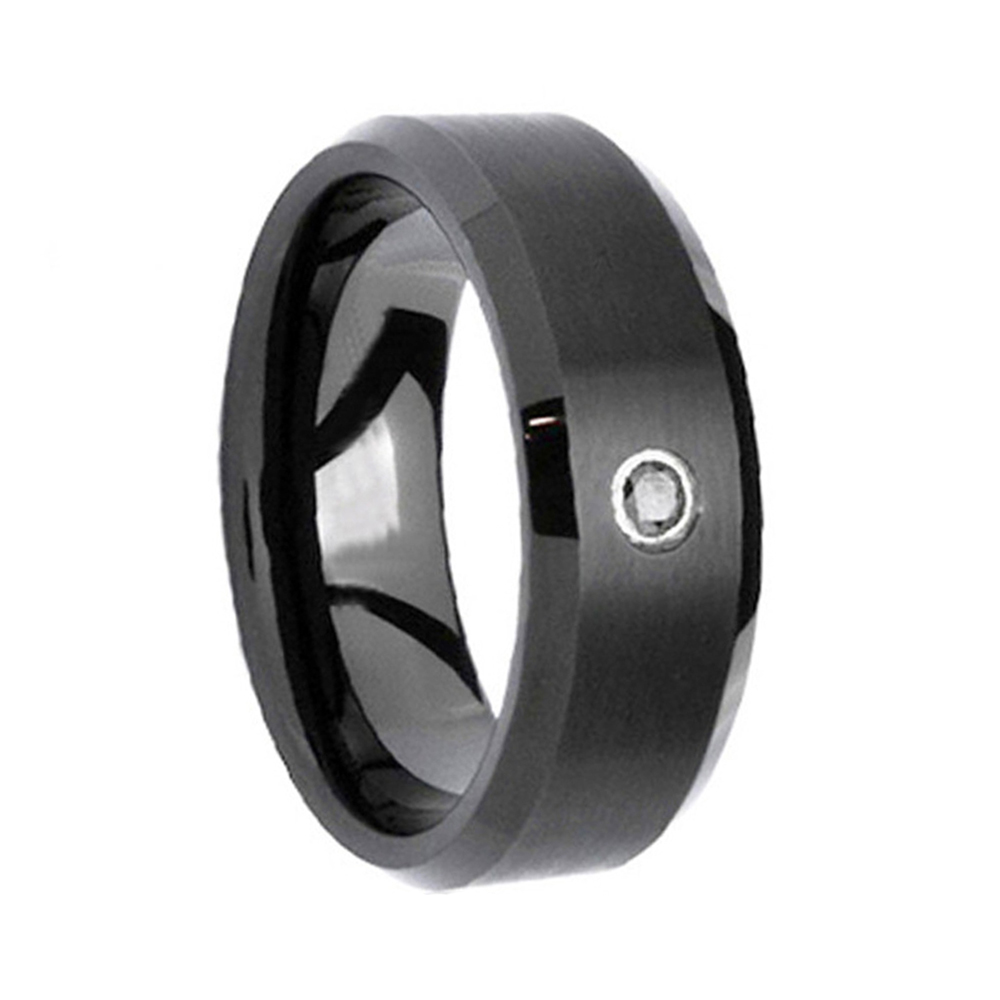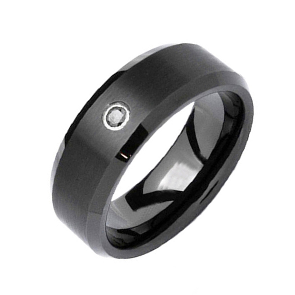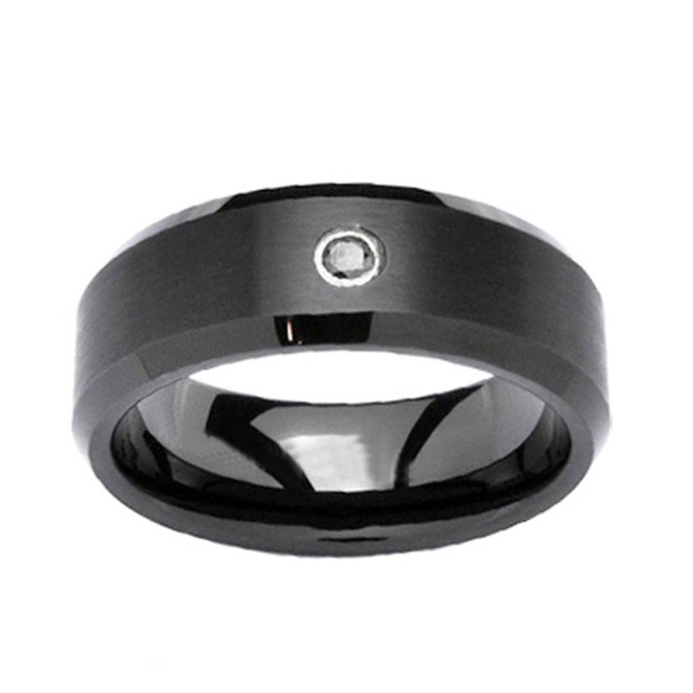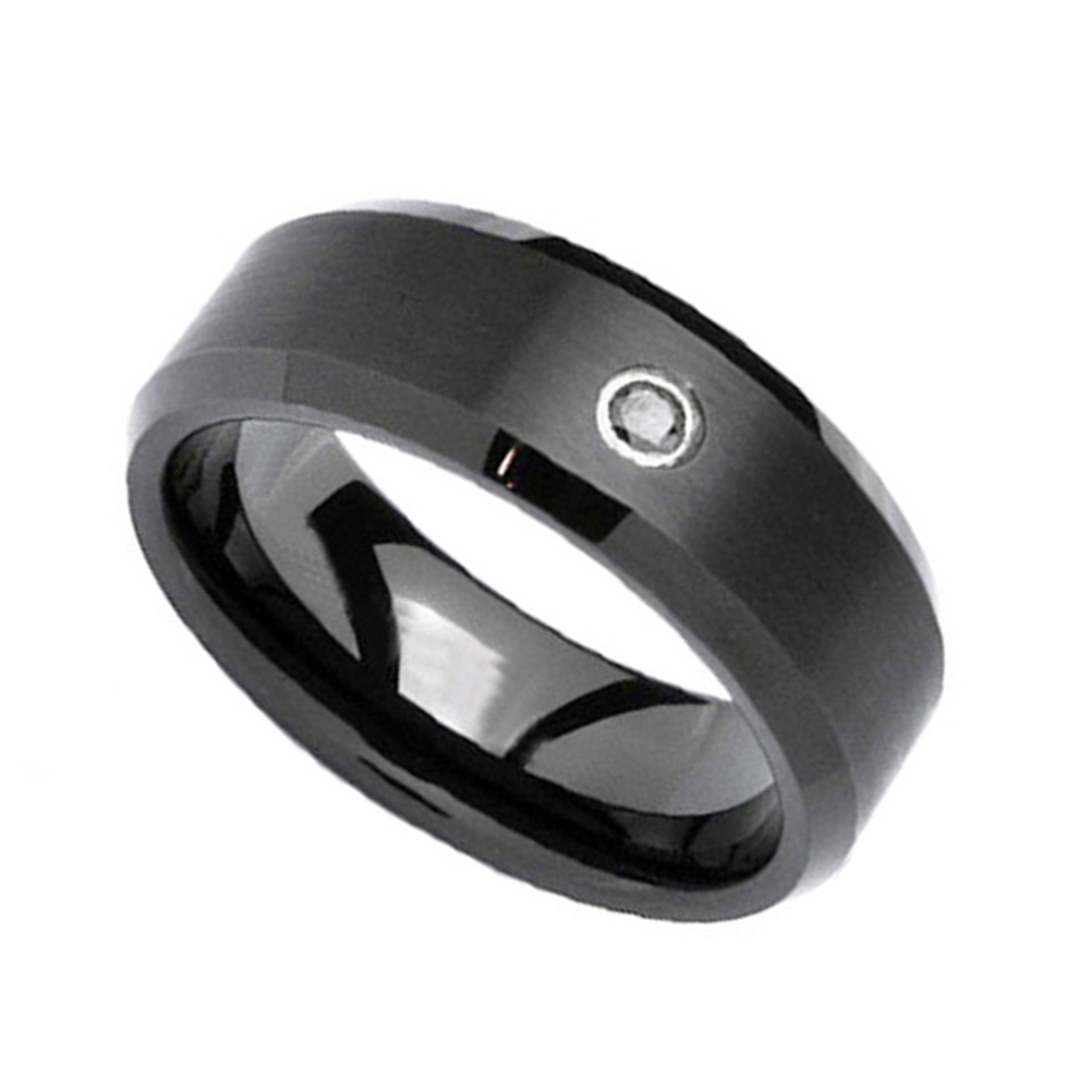 This precision crafted brushed ring that makes it less shiny for Men who prefer more subtle black look.This personalizede ring has a white diamond,cubic zircon setting that adds a modern touch to this ring.Blue Interior of the ring is polished to a bright shine that results in a glossy look.Scratch resistant and cobalt free.