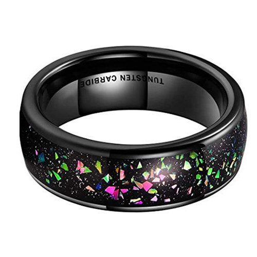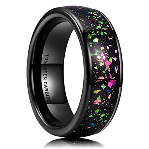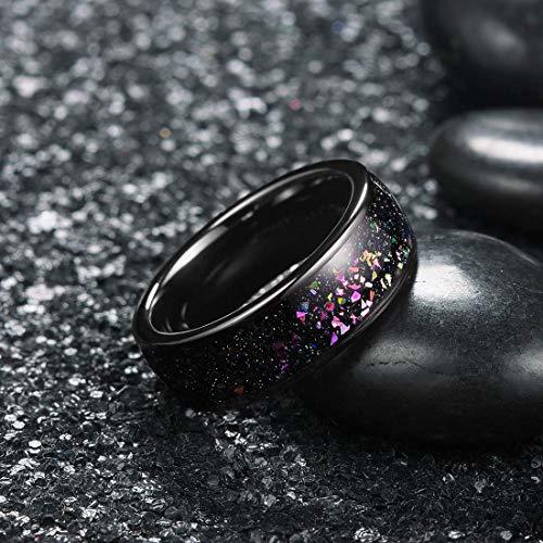 Women's Or Men's or Women's Tungsten Carbide Wedding Band Matching Rings,Wedding Ring bands Black with Rainbow Fragments Inlay,Domed Tungsten Carbide Ring With Mens And Womens For Width 4MM 6MM 8MM 10MM