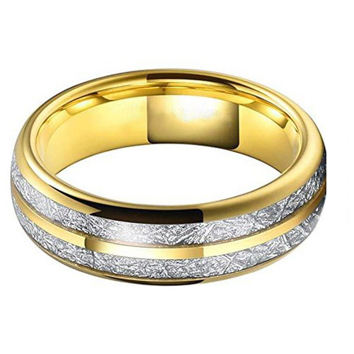 Men's Or Women's Tungsten Carbide Wedding Band Matching Rings,Yellow Gold Double Line Inspired Meteorite Domed Tungsten Carbide Ring,Comfort Fit With Mens And Womens For Width 4MM 6MM 8MM 10MM