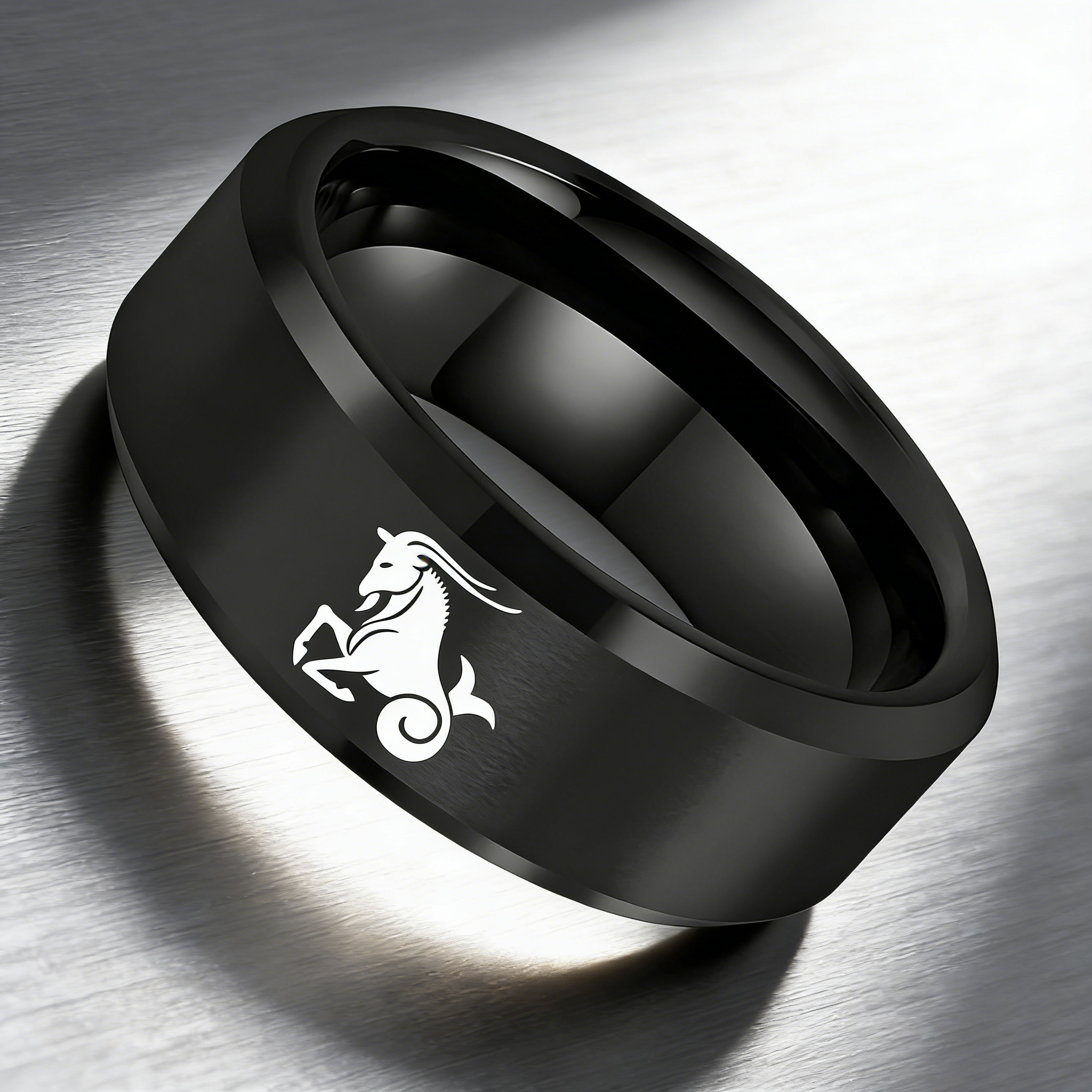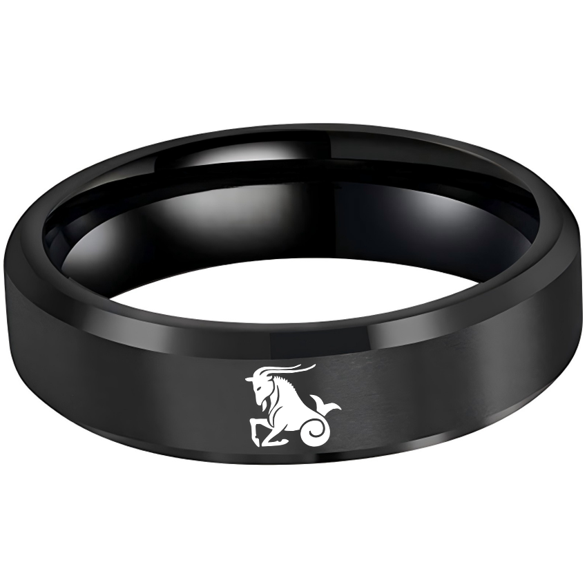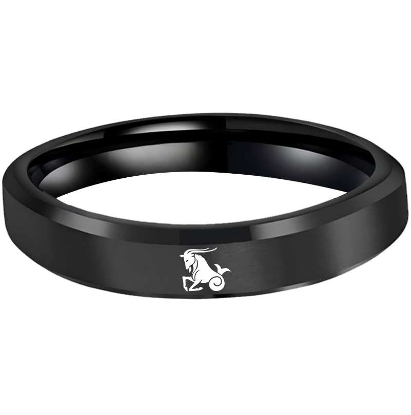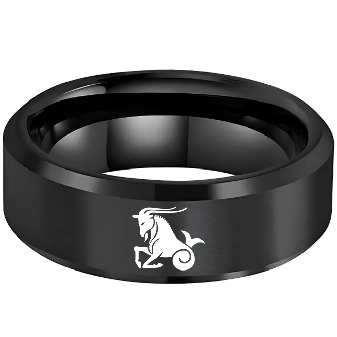 Mens Womens Black Capricorn Tungsten Carbide Bands Black Edges and Laser Etched Wedding Rings Comfort Fit 4MM 6MM 8MM Width