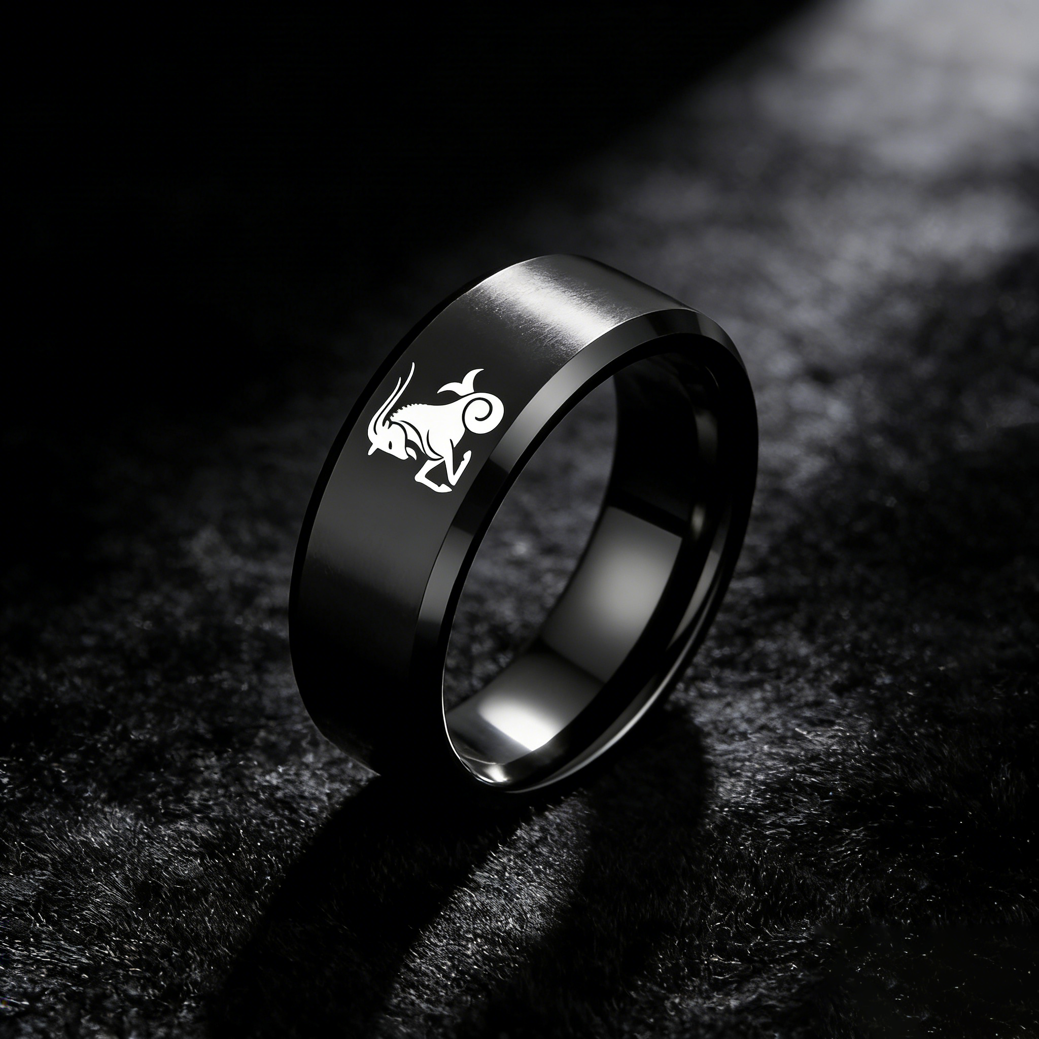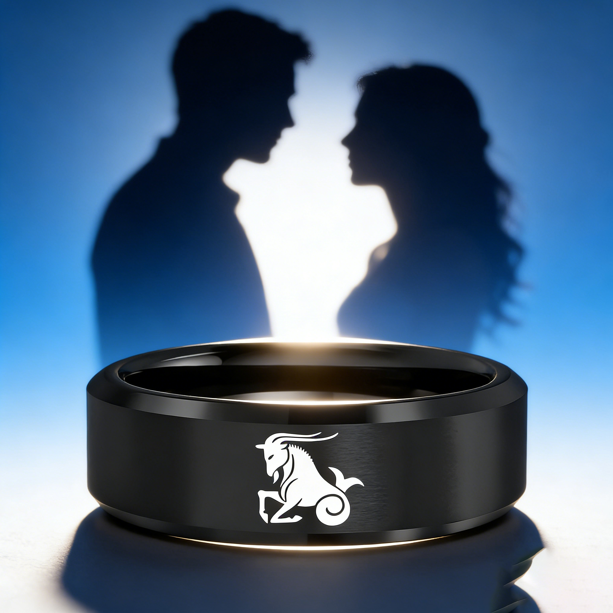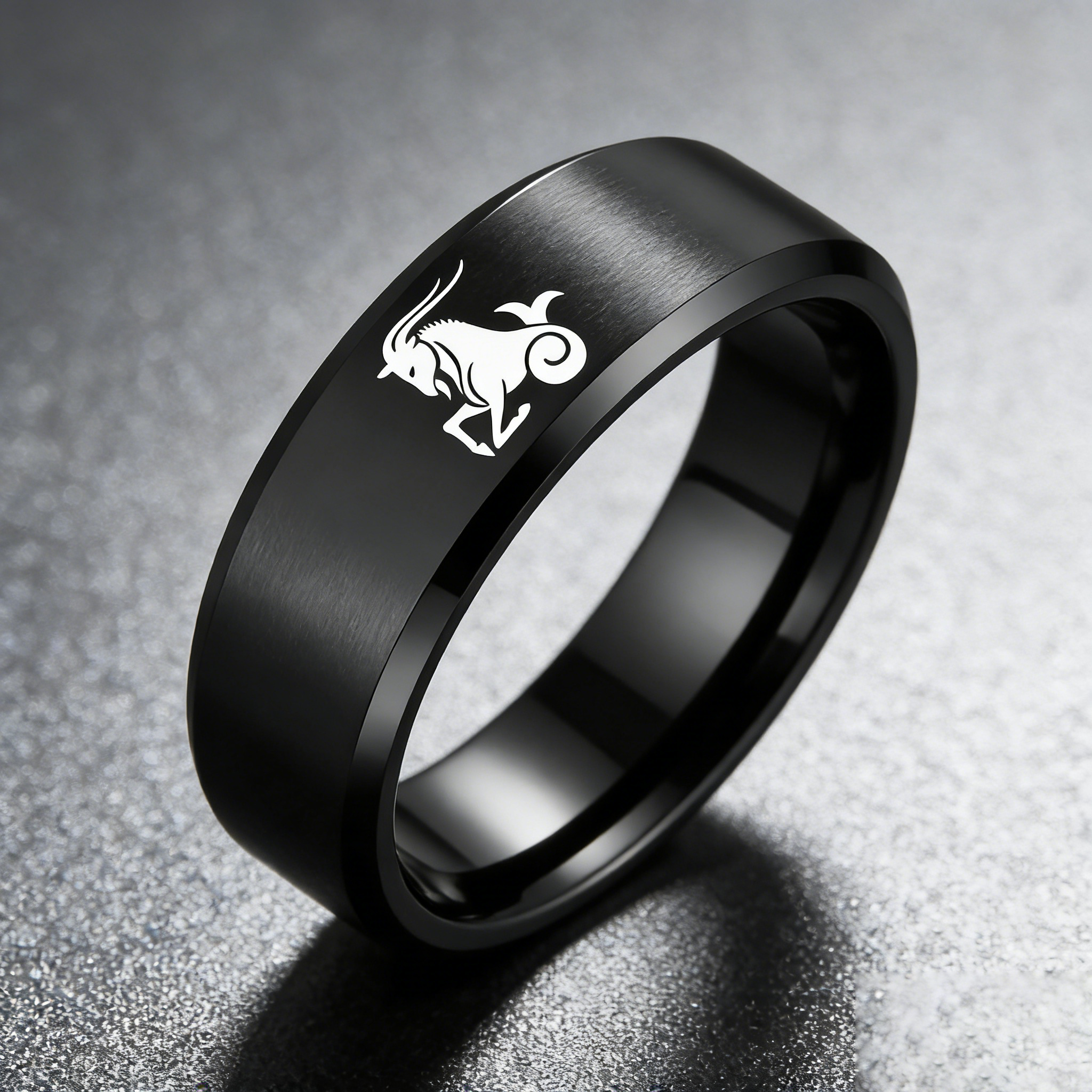 Mens Womens Black Capricorn Tungsten Carbide Bands Black Edges and Laser Etched Wedding Rings Comfort Fit 4MM 6MM 8MM Width