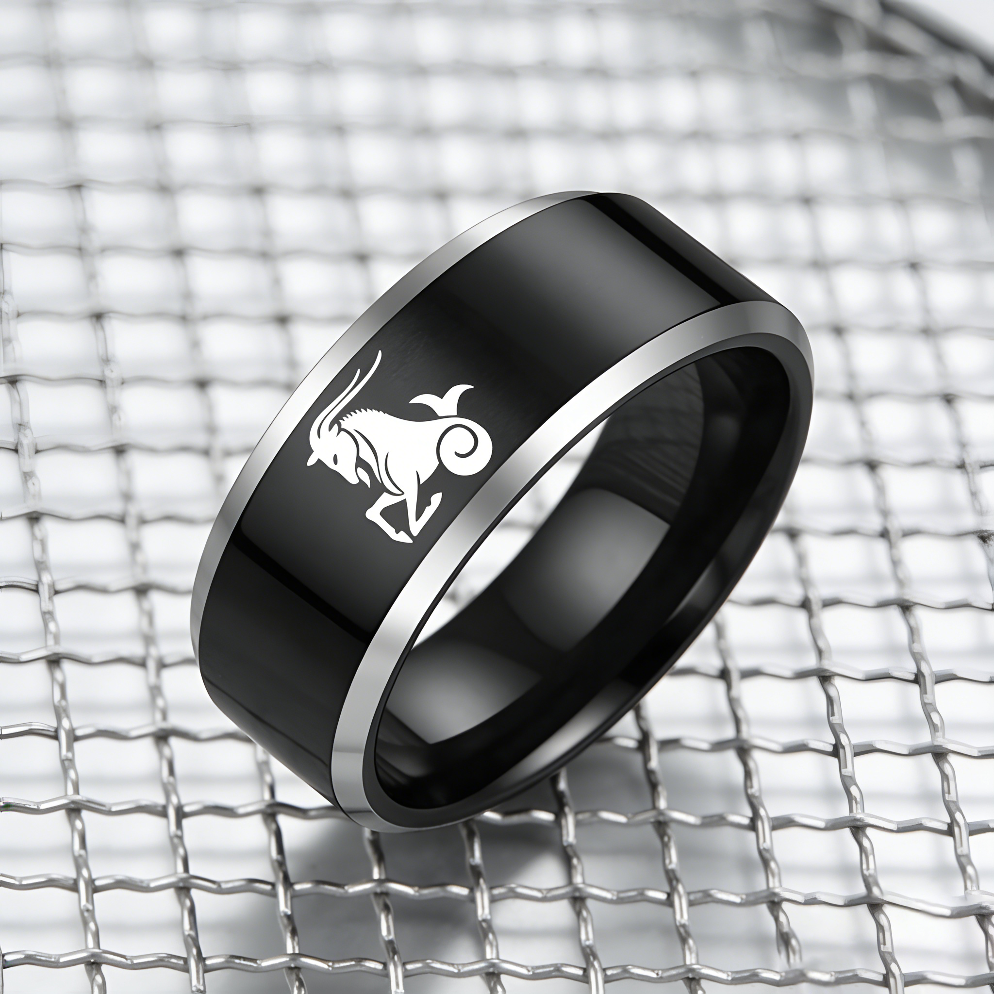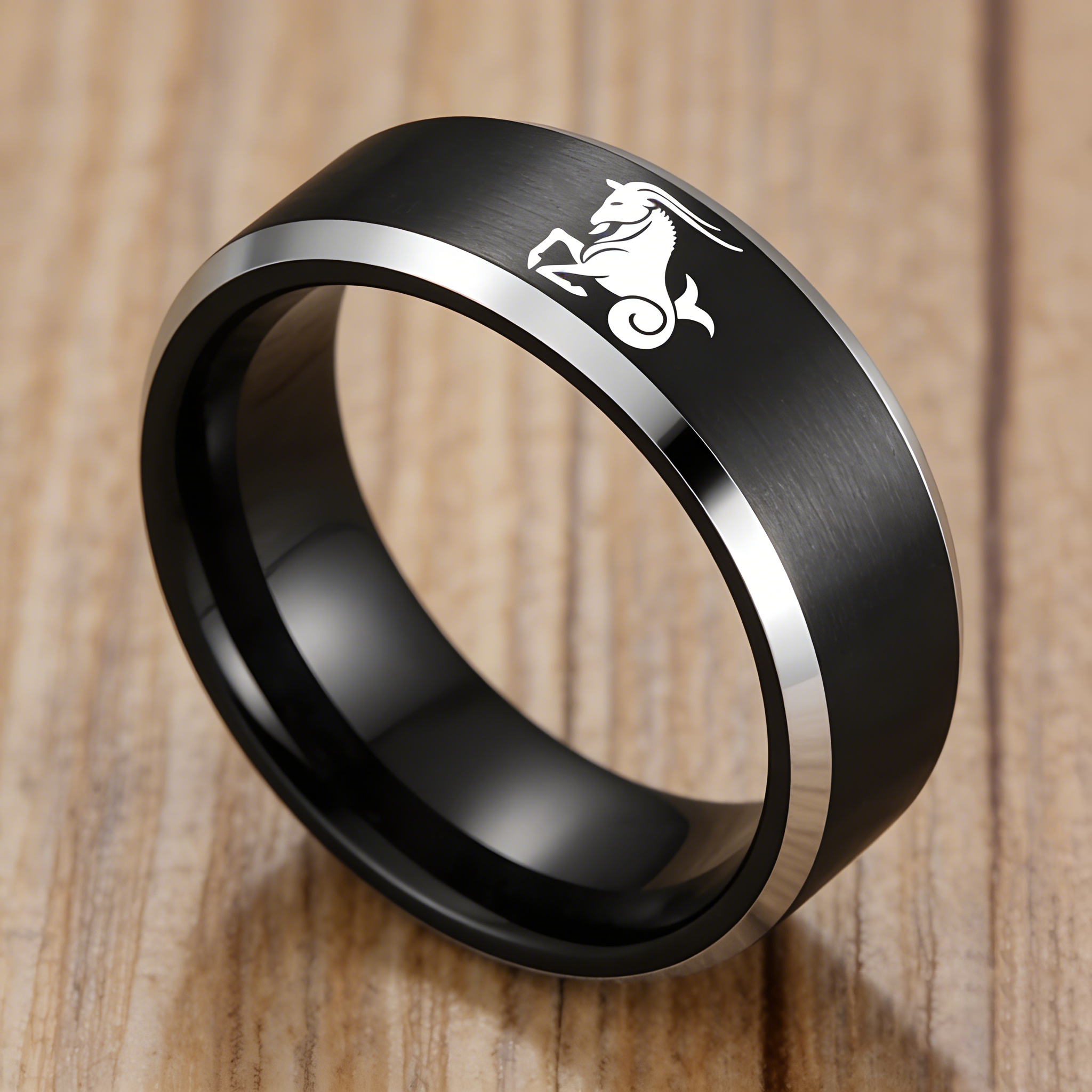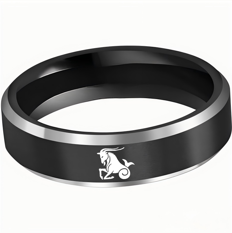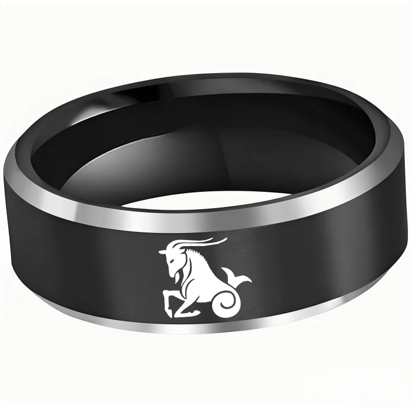 Mens Womens Black Capricorn Tungsten Carbide Rings Black Edges and Laser Etched Wedding Bands Comfort Fit 4MM 6MM 8MM