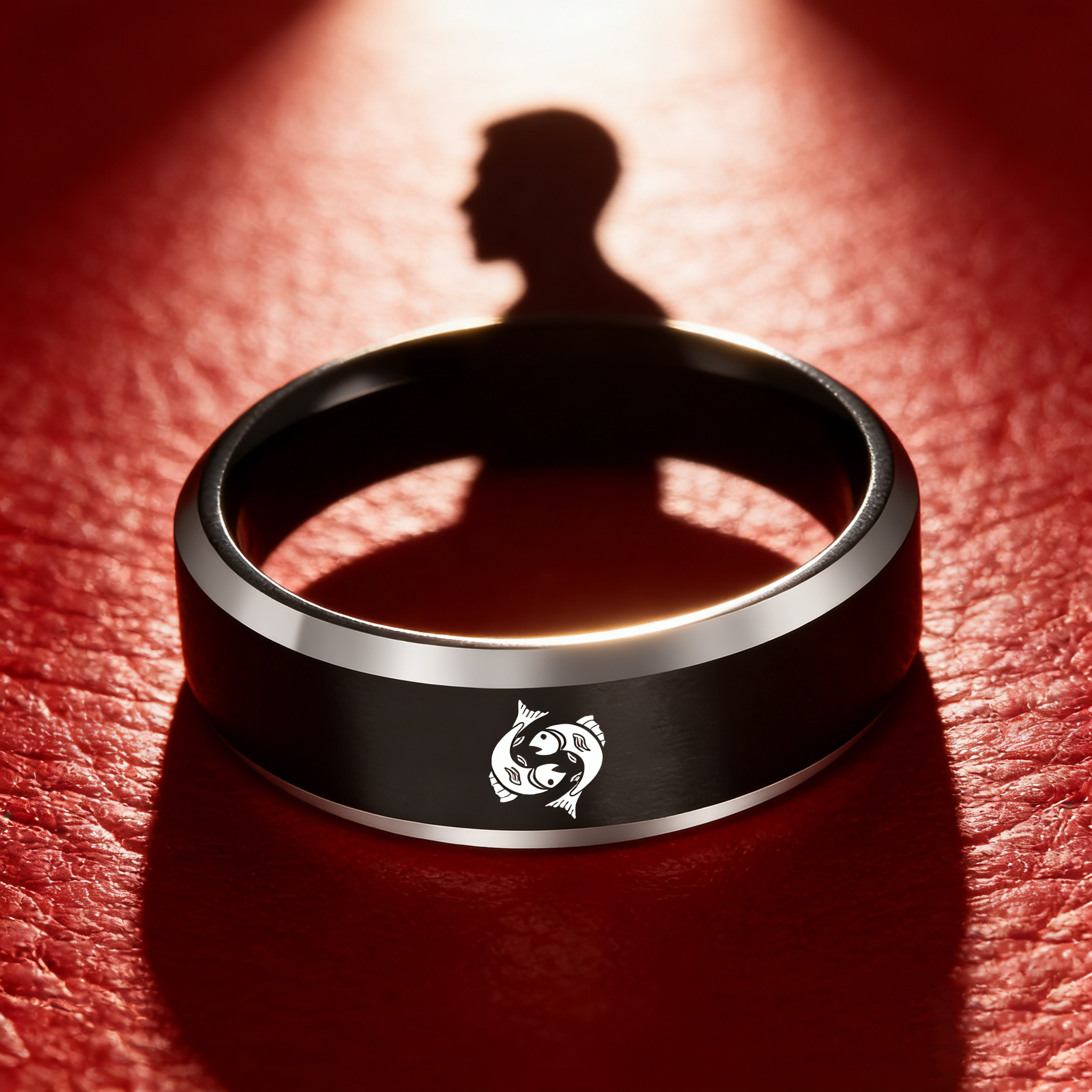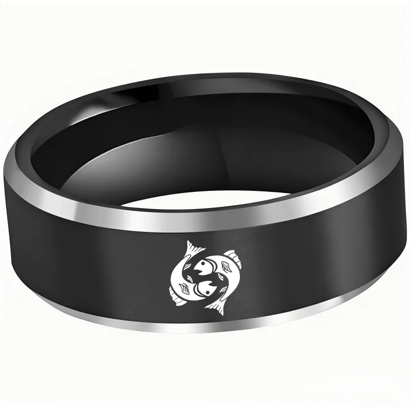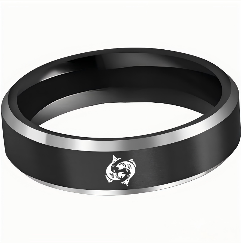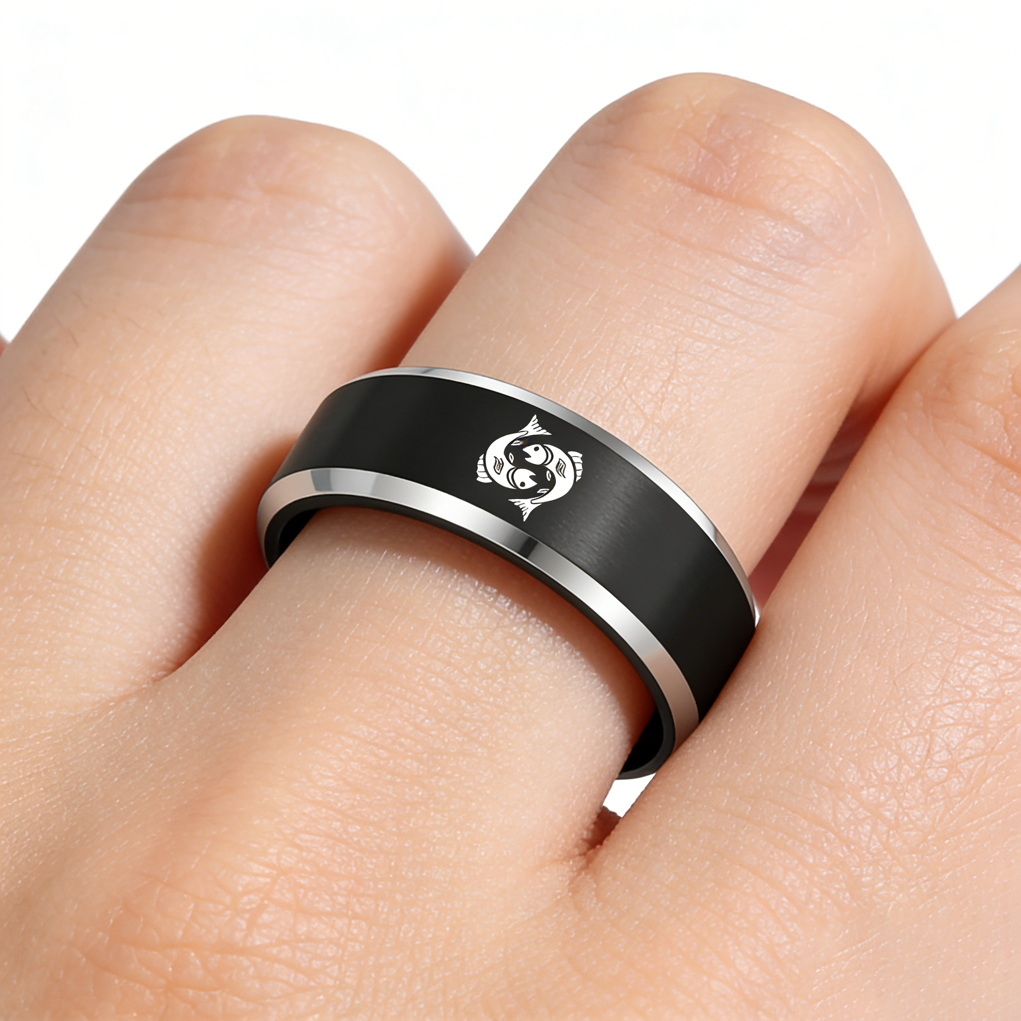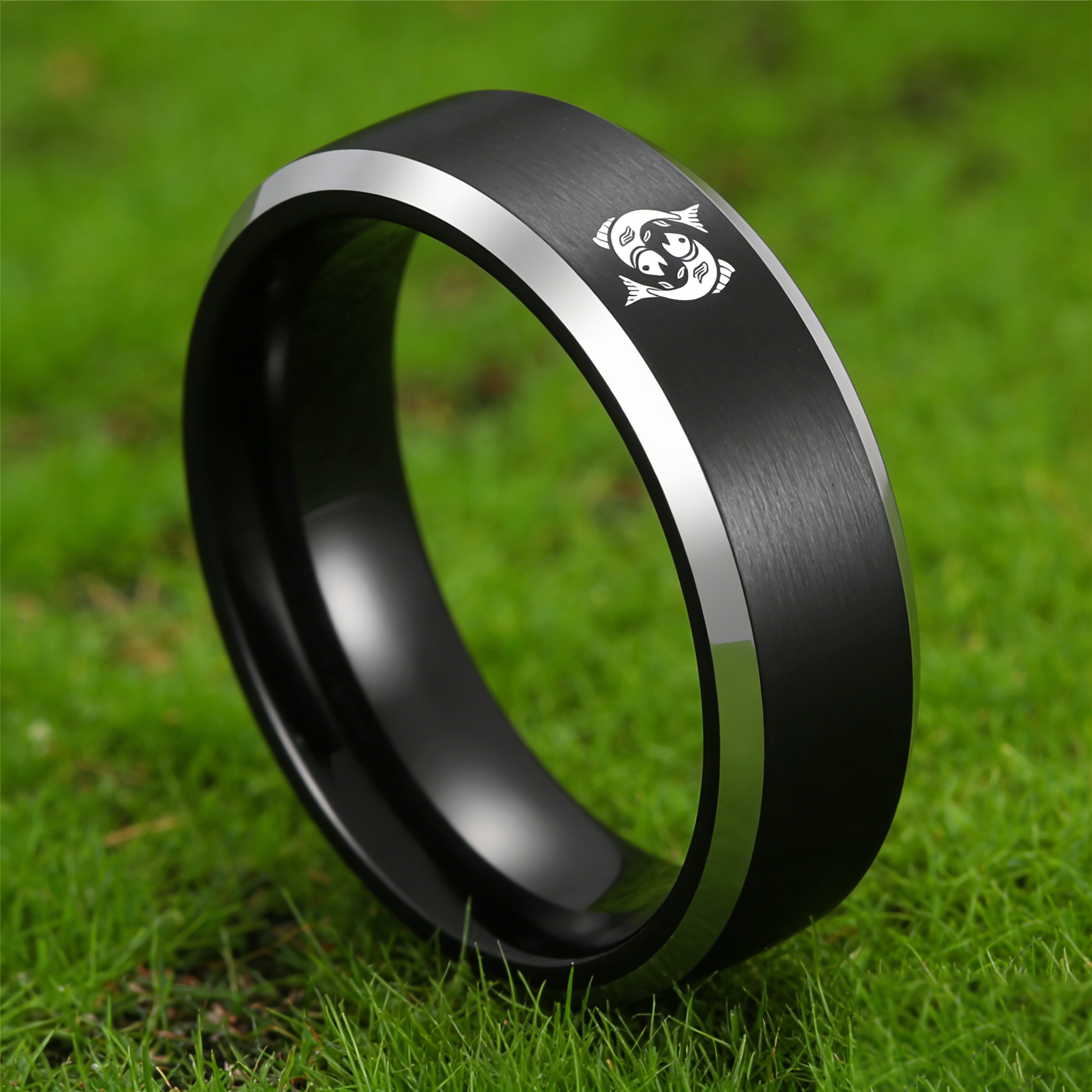 Mens Womens Black Pisces Tungsten Carbide Rings Black Edges and Laser Etched Wedding Bands Comfort Fit 4MM 6MM 8MM