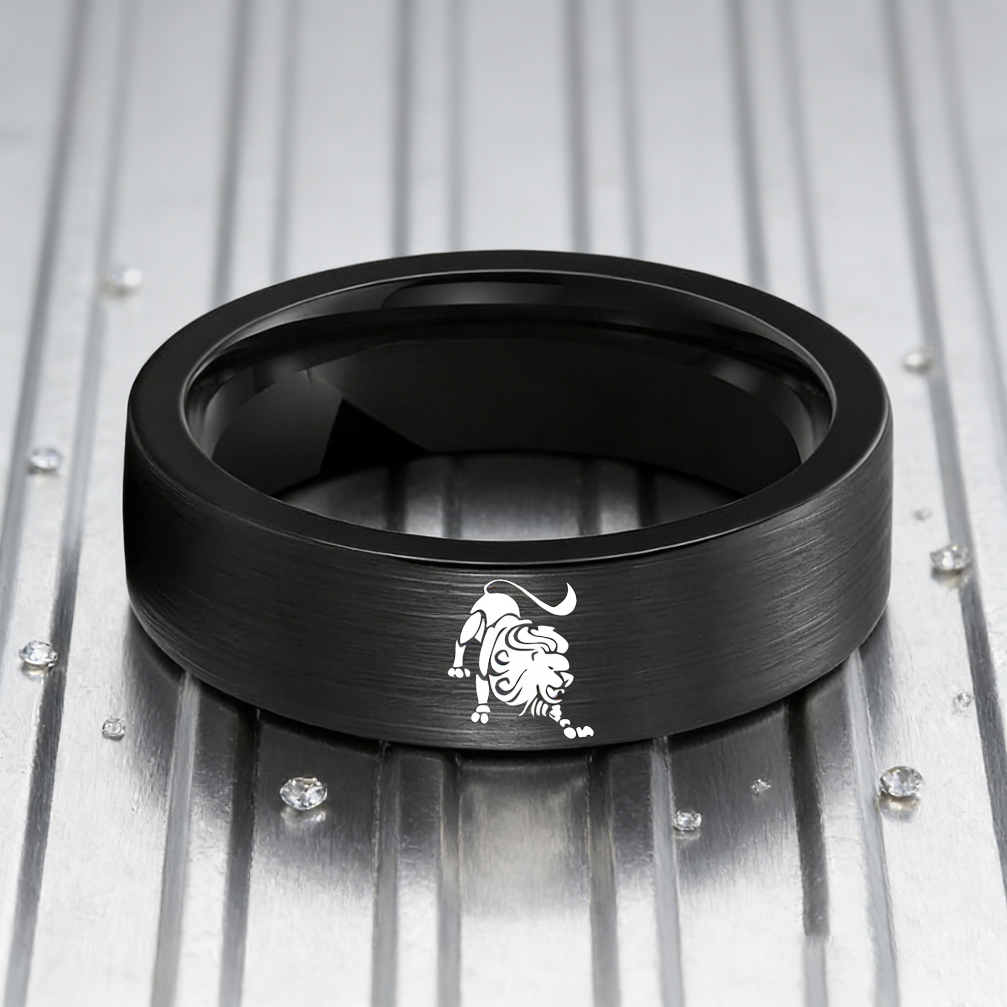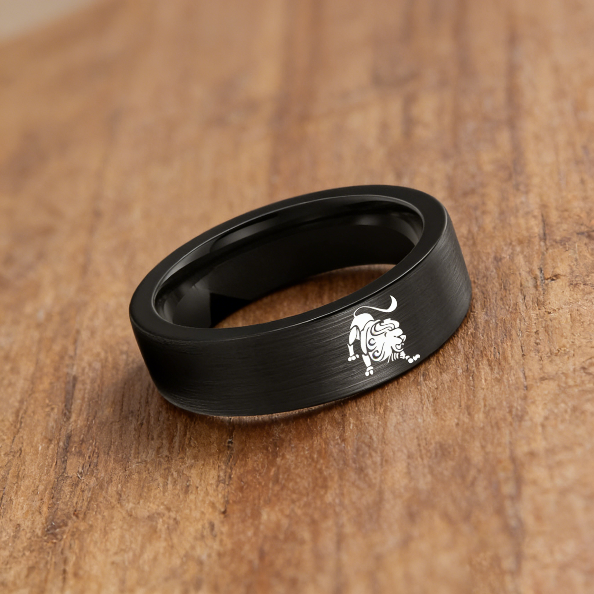 Mens Womens Flat Leo Tungsten Carbide Rings Black Couple Wedding Bands Top Comfort Fit 4MM 6MM 8MM Width