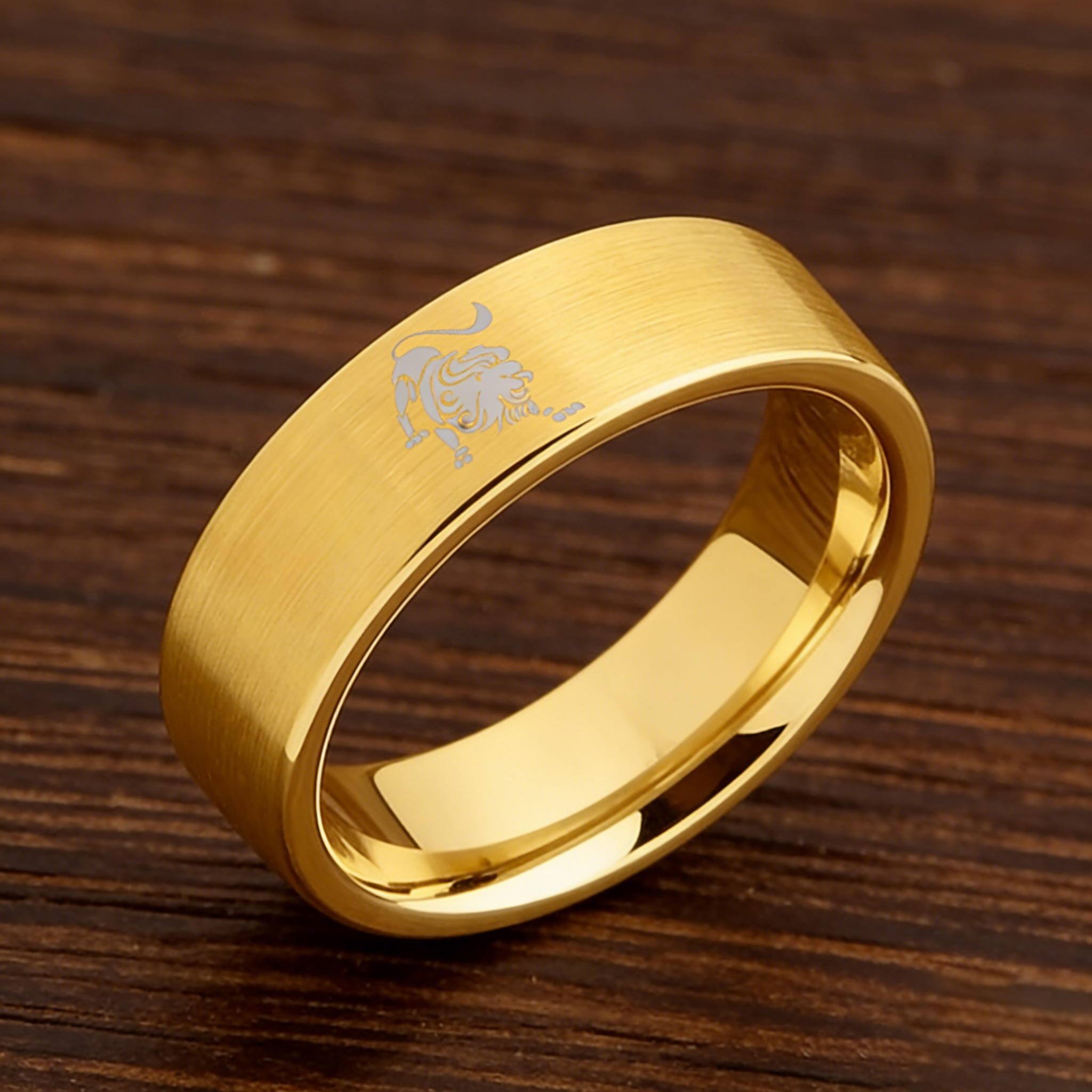Mens Womens Flat Leo Tungsten Carbide Rings Gold Couple Wedding Band Top Comfort Fit 4MM 6MM 8MM