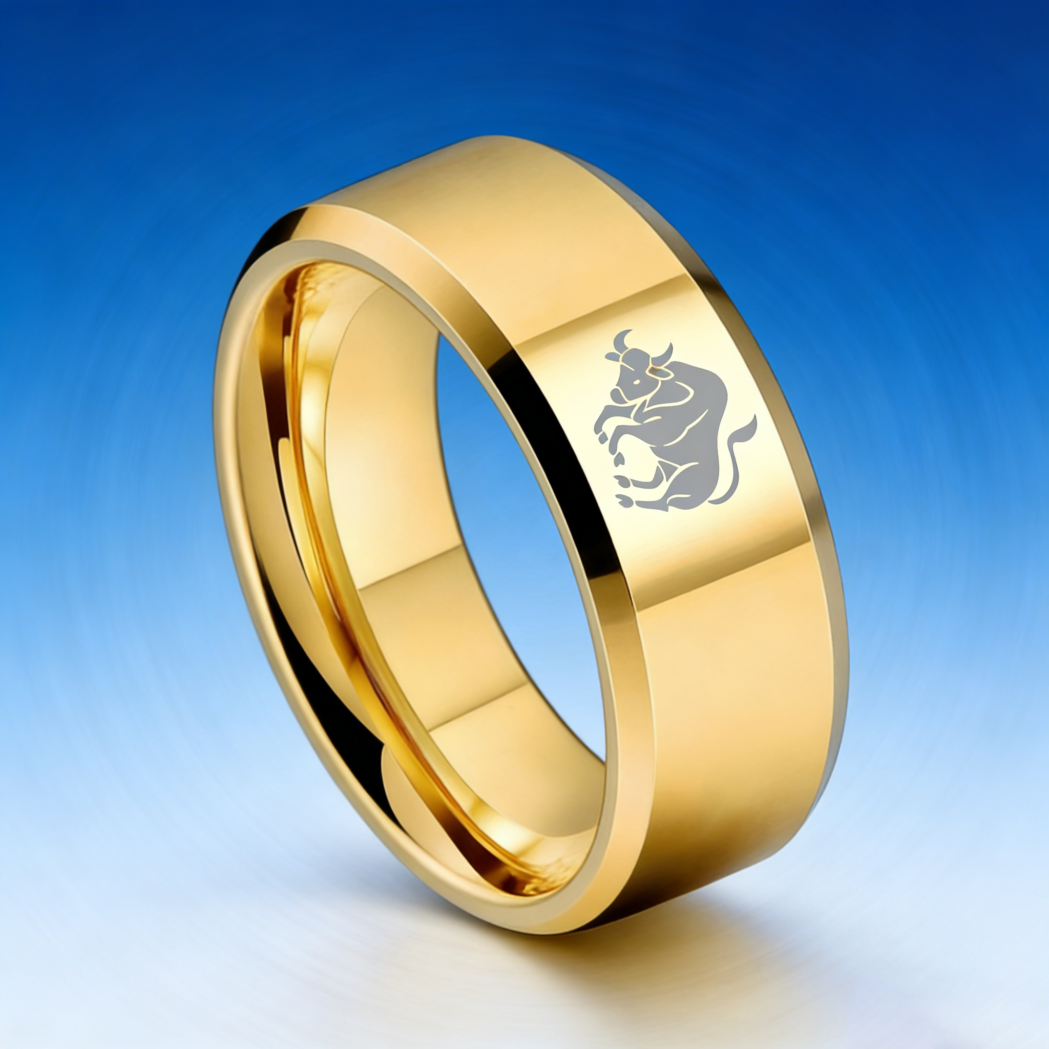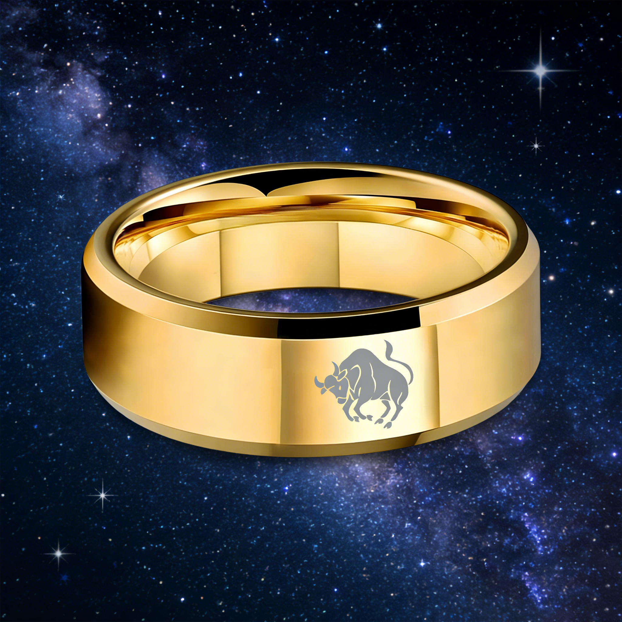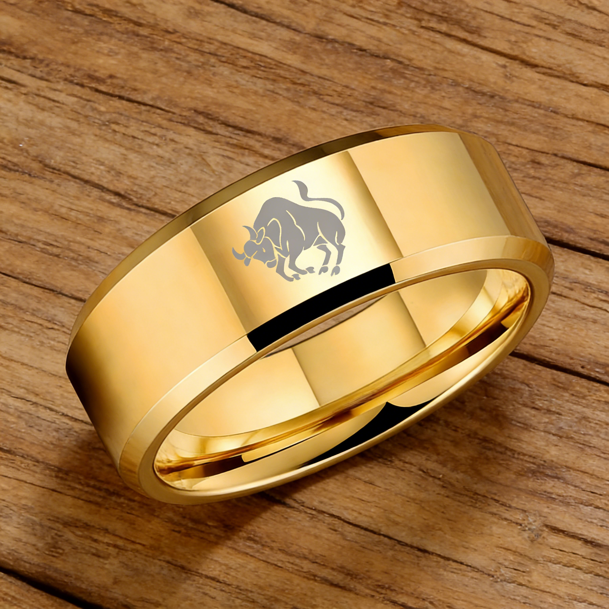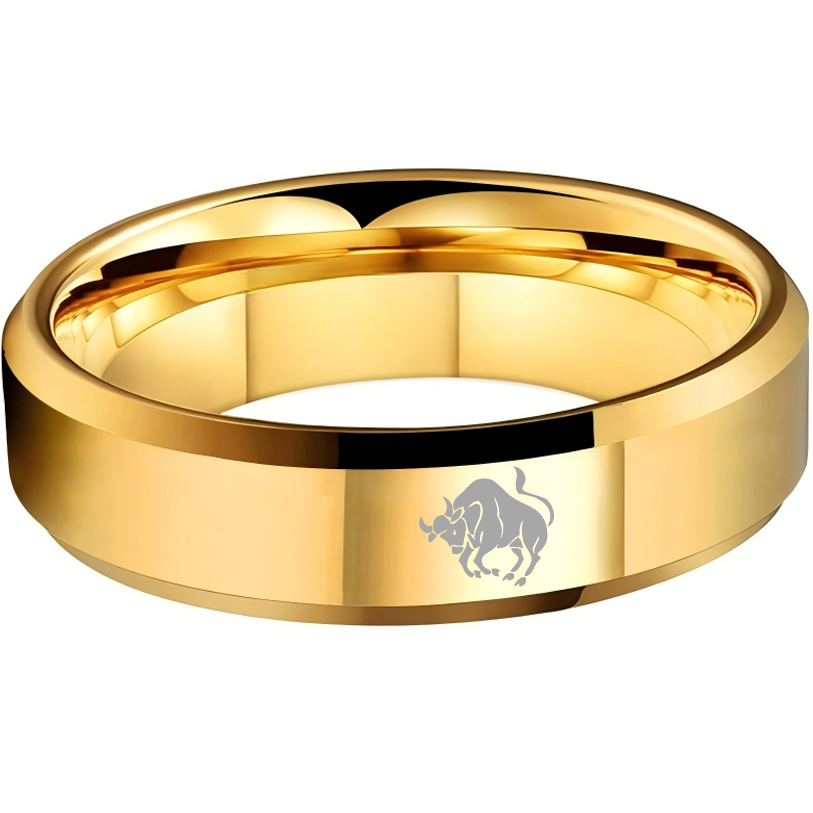 Mens Womens Gold Taurus Tungsten Carbide Rings Gold Edges and Laser Etched Wedding Bands Comfort Fit 4MM 6MM 8MM