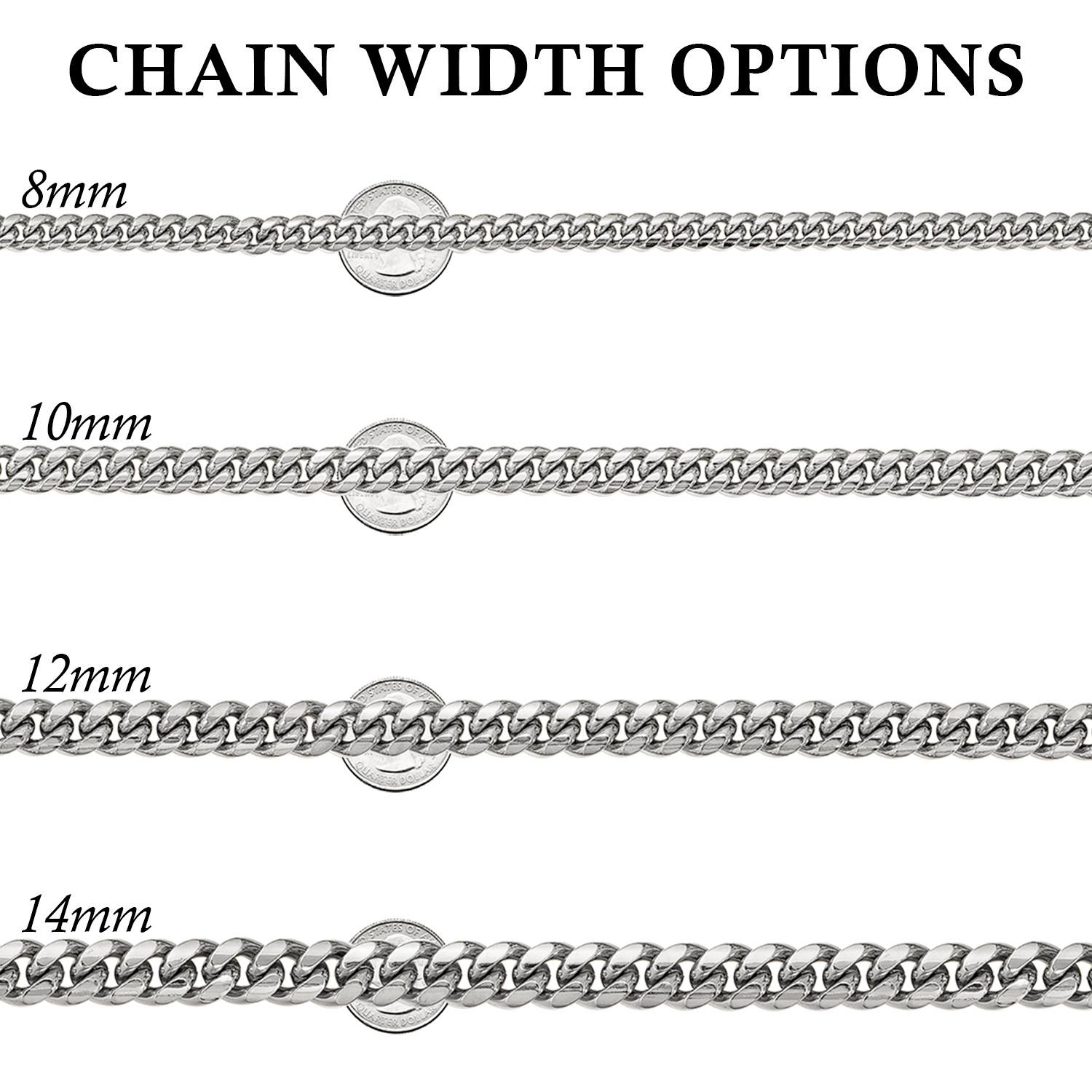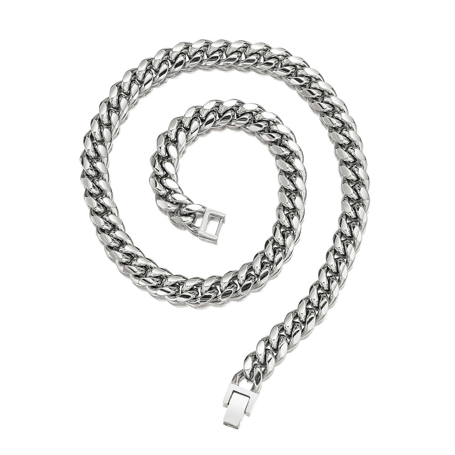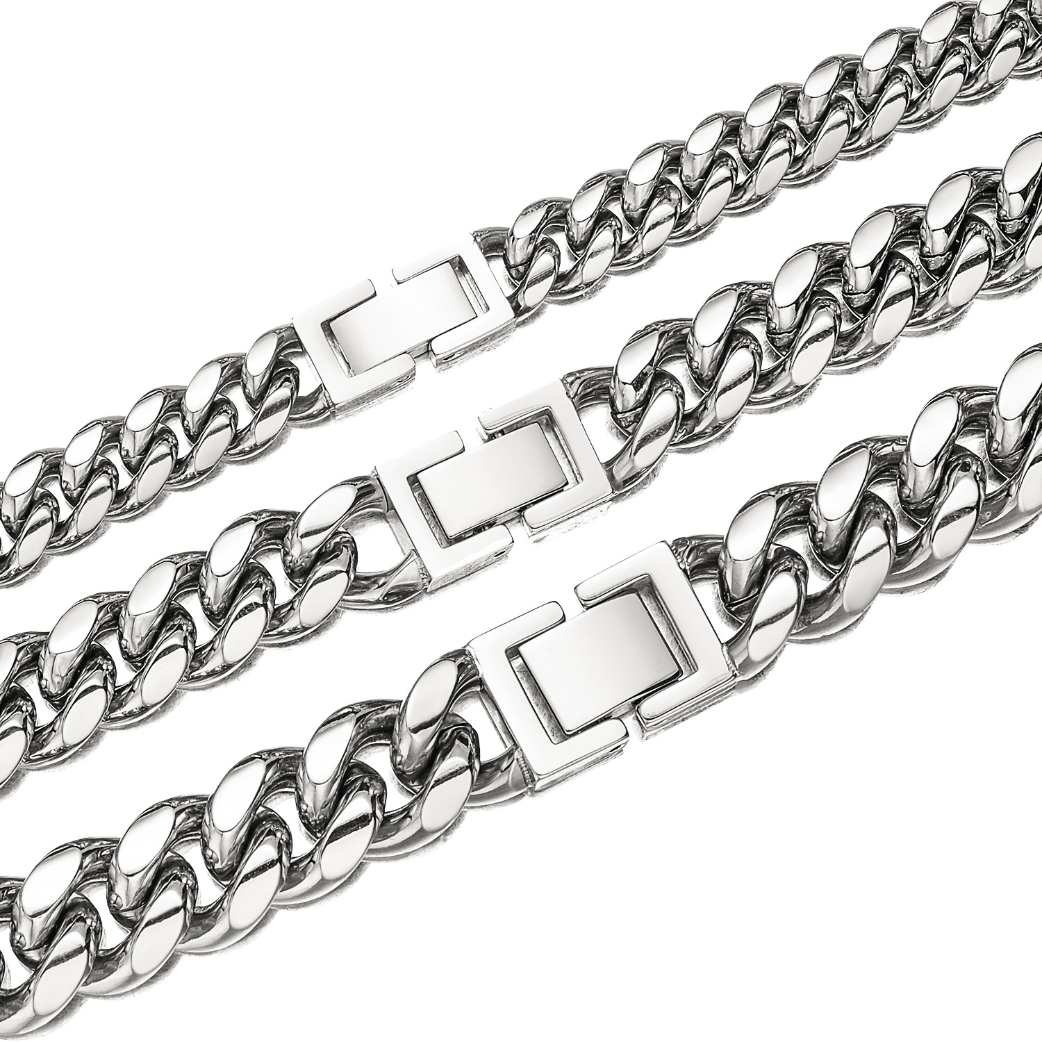 Miami Cuban Link Chain for Men Women Titanium Stainless Steel Curb Chain Necklace, Cool Hip Hop Jewelry Silver Plated Chains, Width 8/10/12/14mm