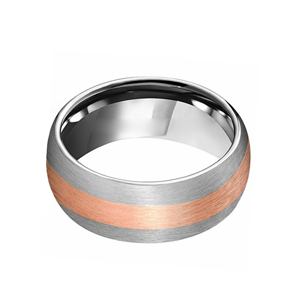 Rose Gold Plated Center 8mm Tungsten Rings Brushed Surface Band