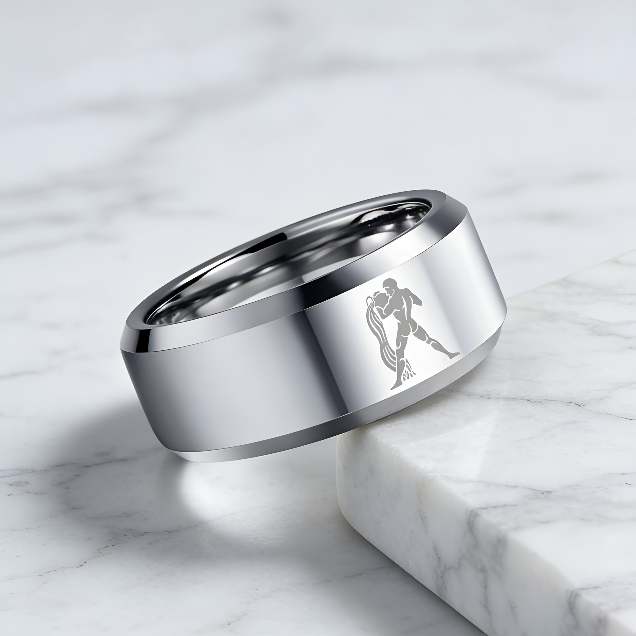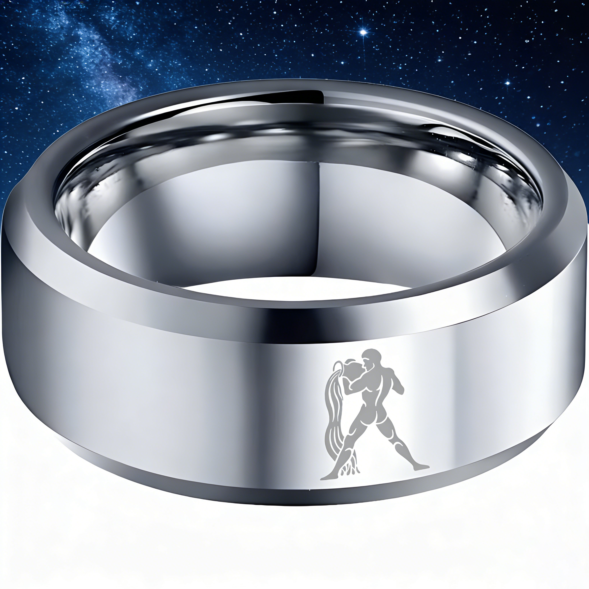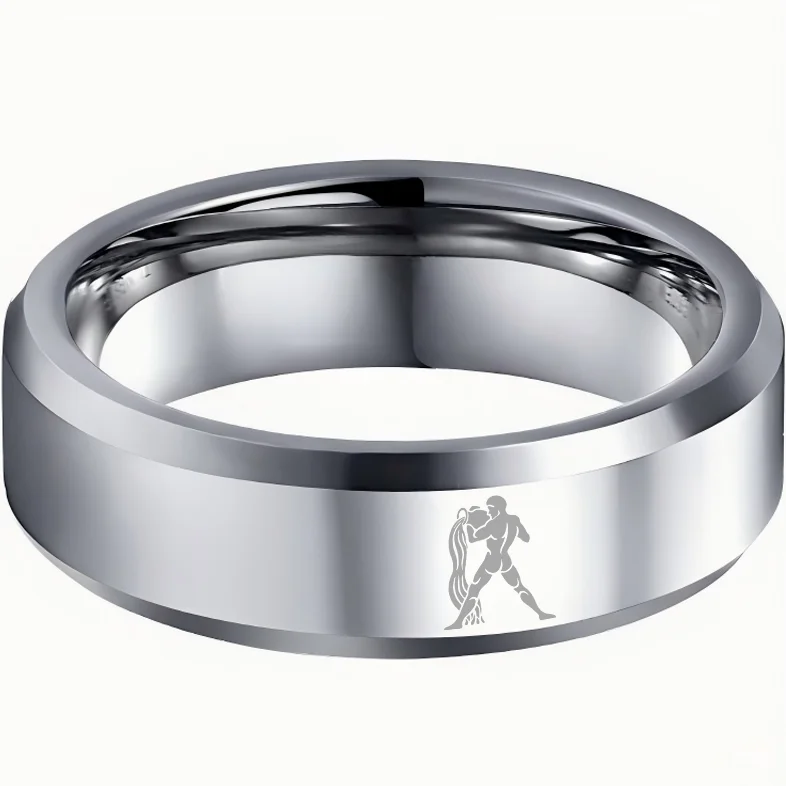 Sliver Aquarius Couple Wedding Bands Beveled Edges Sliver Laser Etched Tungsten Carbide Rings 4MM 6MM 8MM