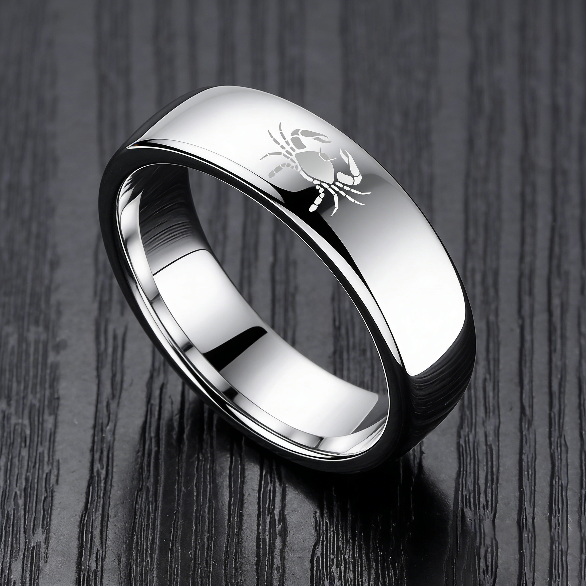 Sliver Cancer Couples Dome Tungsten Carbide Rings Prints Laser Design Domed Tungsten Wedding Bands 4MM 6MM 8MM Width