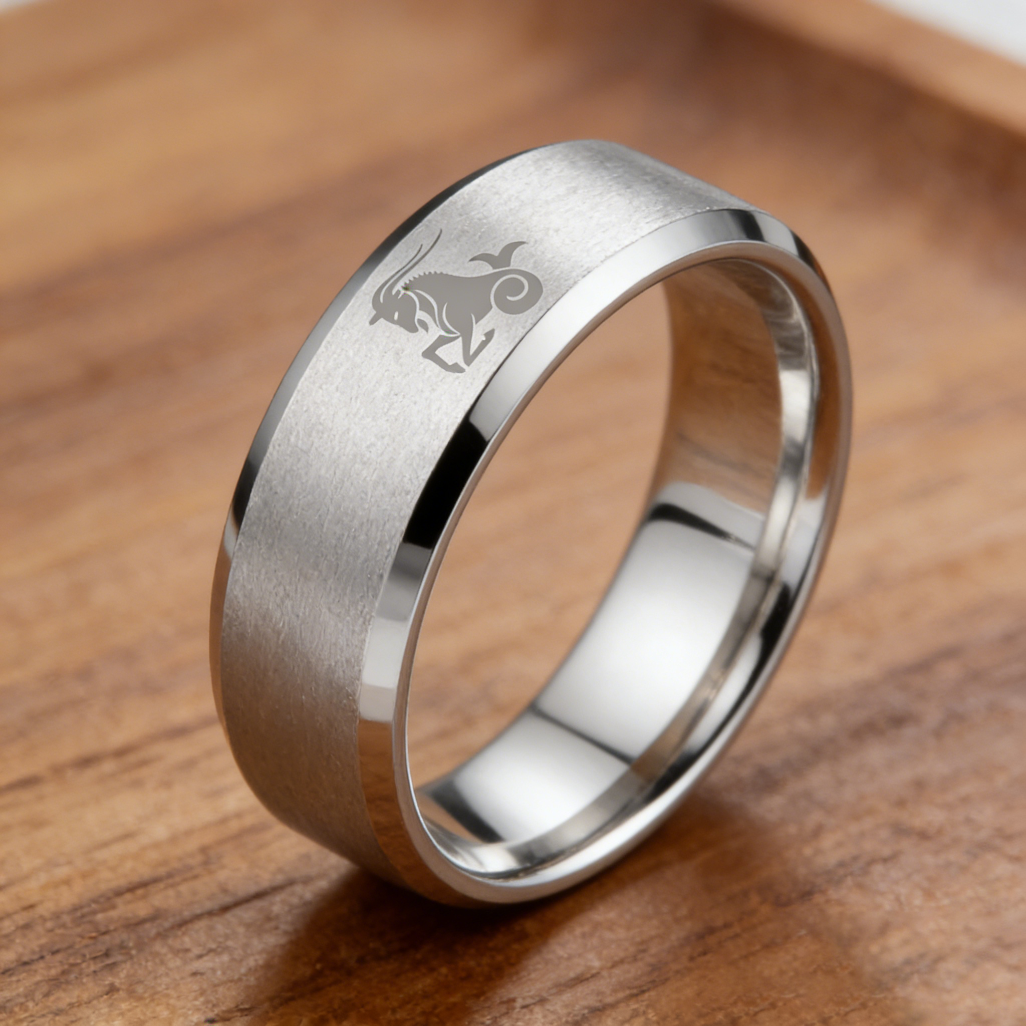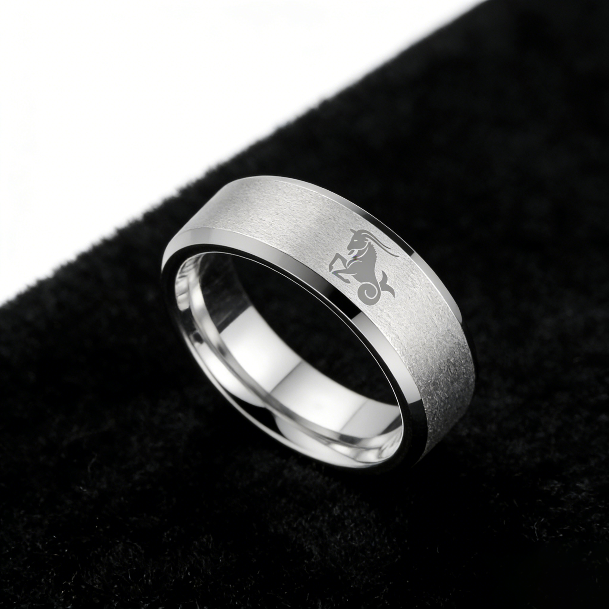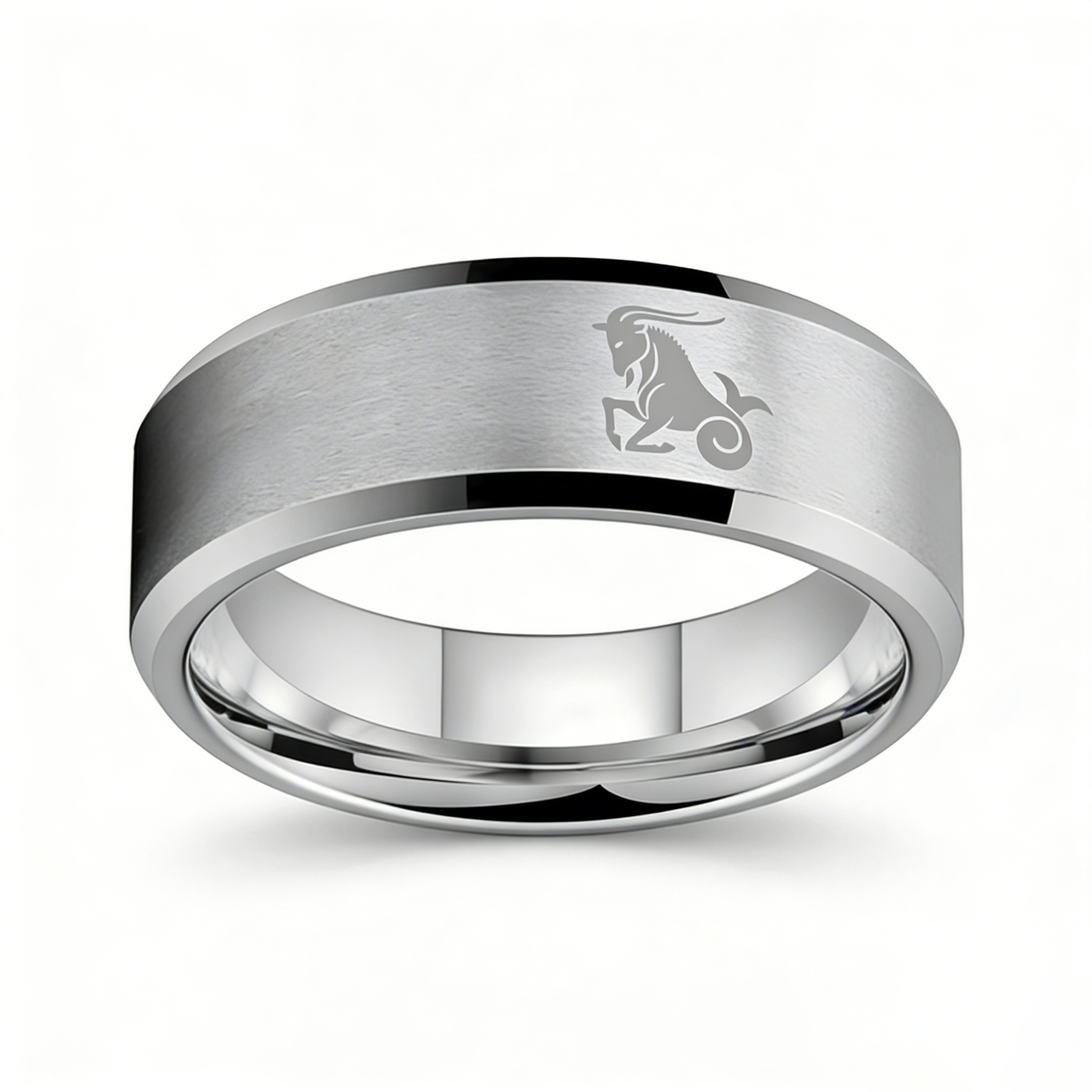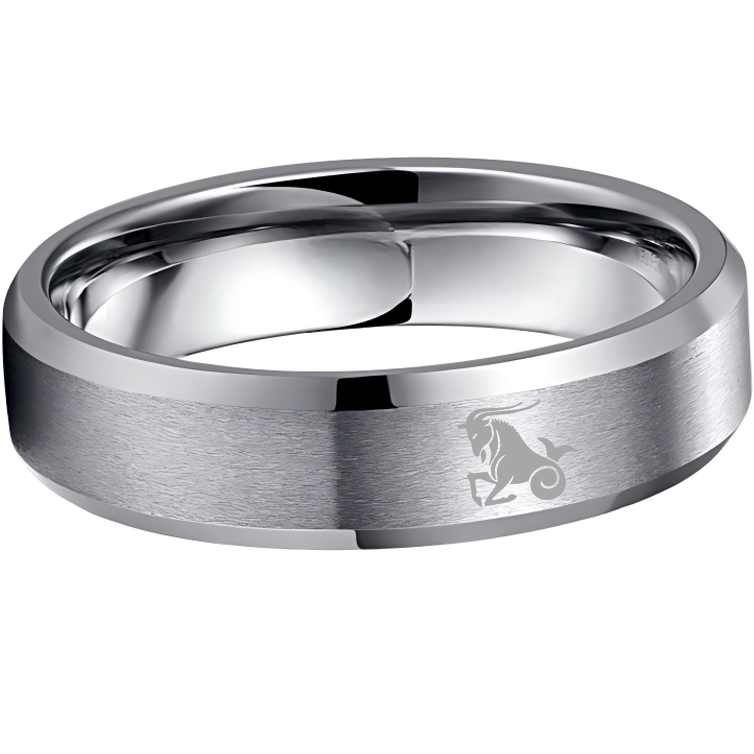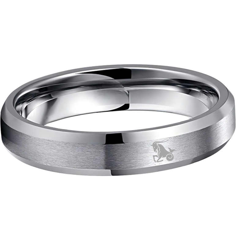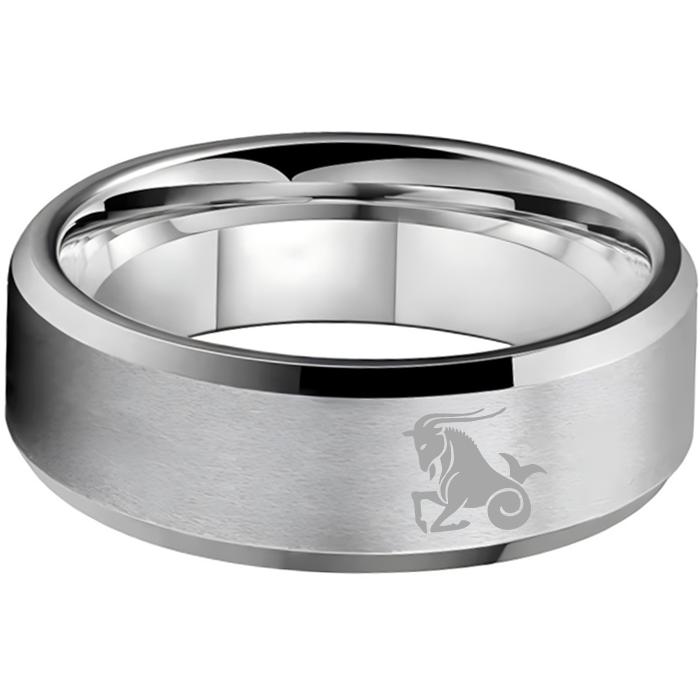 Sliver Edges and Laser Etched Wedding Band Comfort Fit Mens Womens Sliver Capricorn Tungsten Carbide Rings 4MM 6MM 8MM