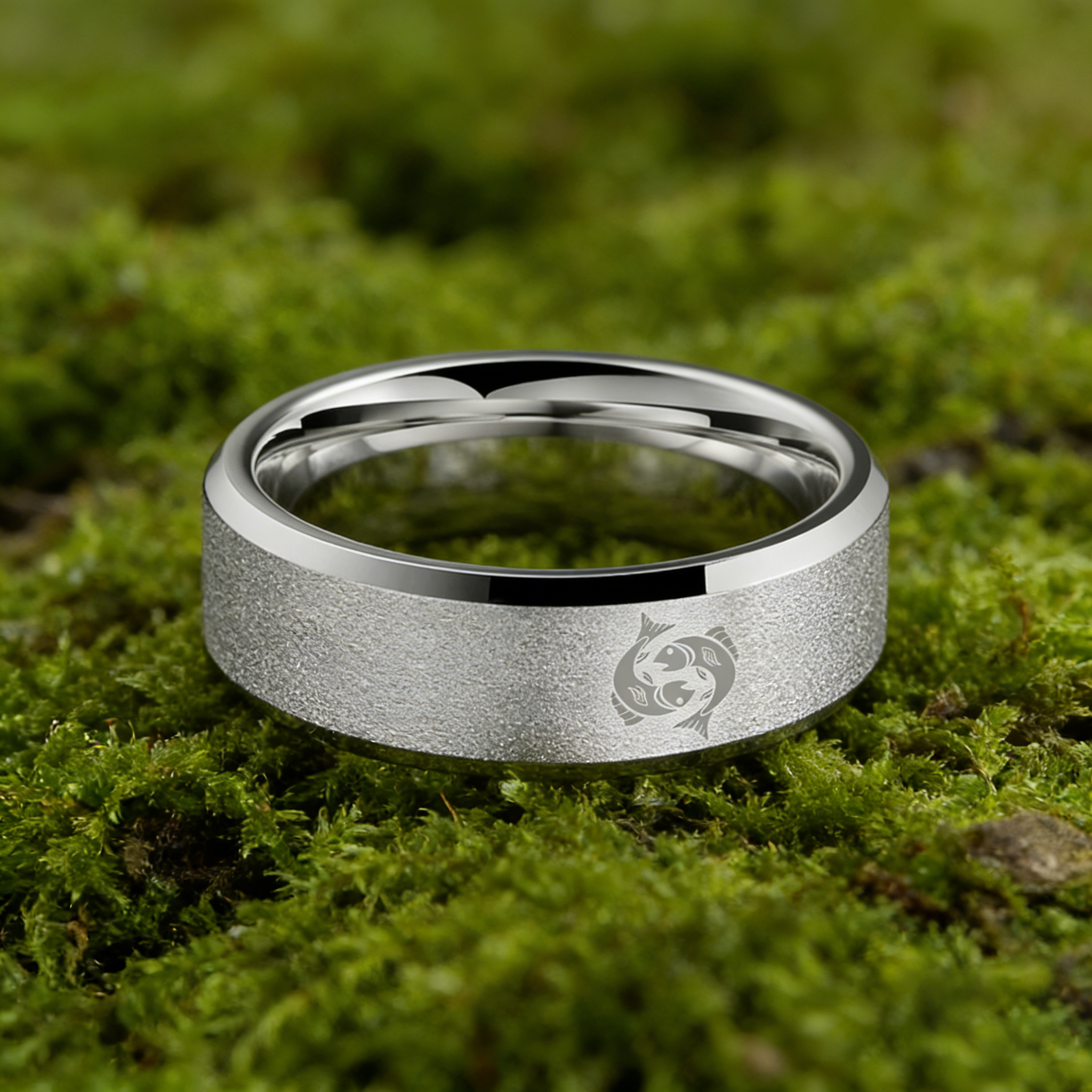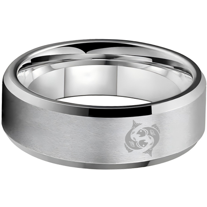 Sliver Edges and Laser Etched Wedding Band Comfort Fit Mens Womens Sliver Pisces Tungsten Carbide Rings 4MM 6MM 8MM