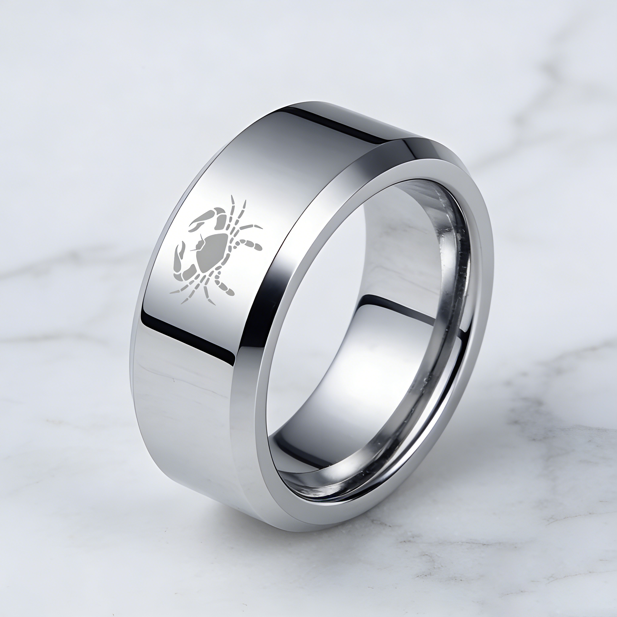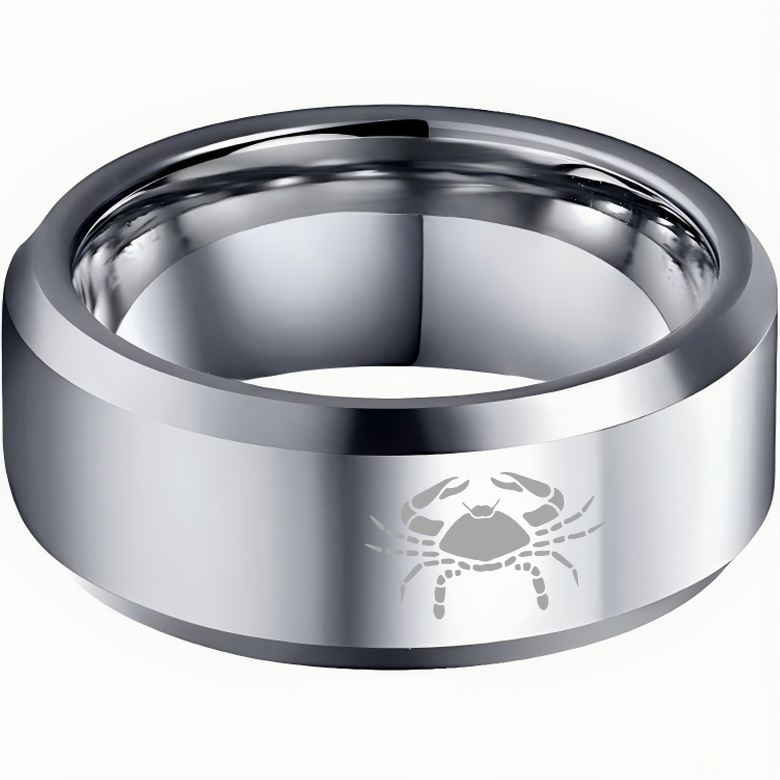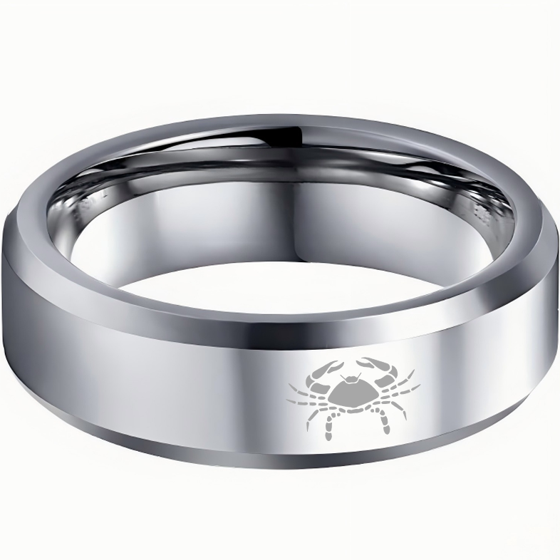 Sliver Laser Etched Couple Tungsten Carbide Rings Sliver Cancer Tungsten Wedding Bands Beveled Edges 4MM 6MM 8MM Width