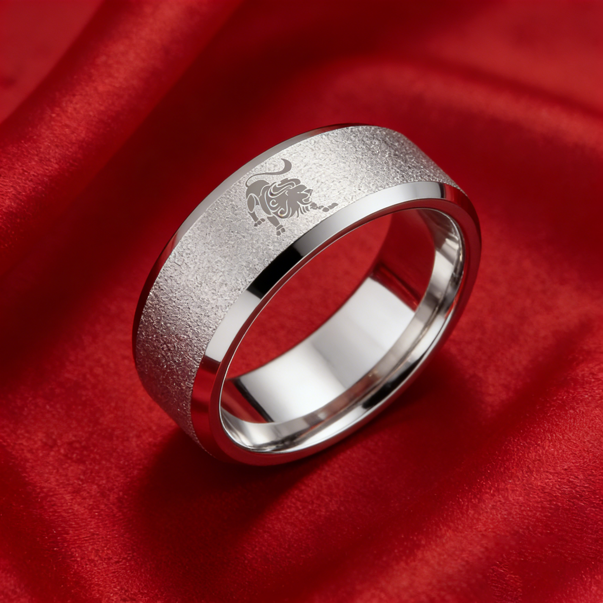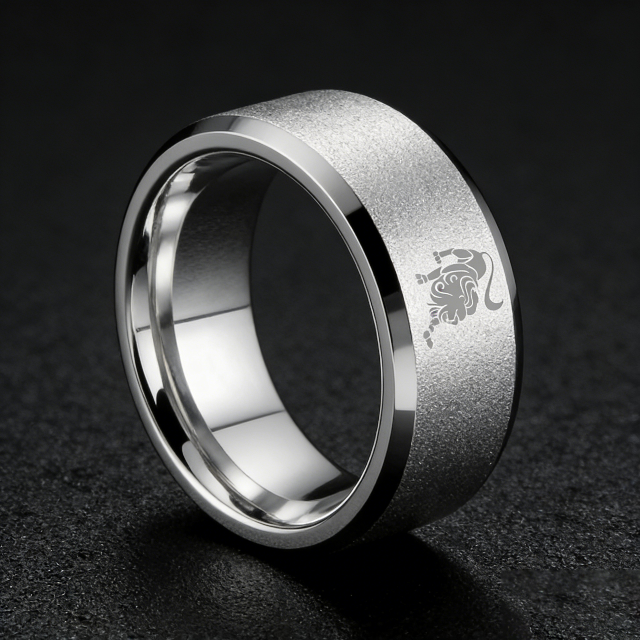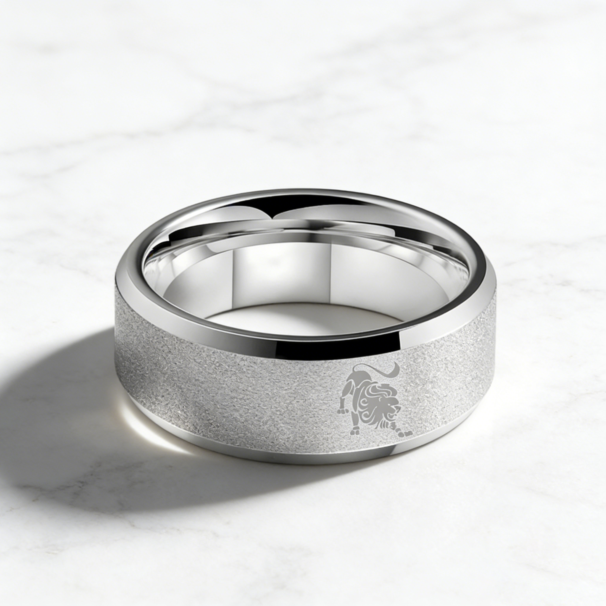 Sliver Laser Etched Couple Wedding Band Sliver Leo Tungsten Carbide Rings Beveled Edges 4MM 6MM 8MM Width
