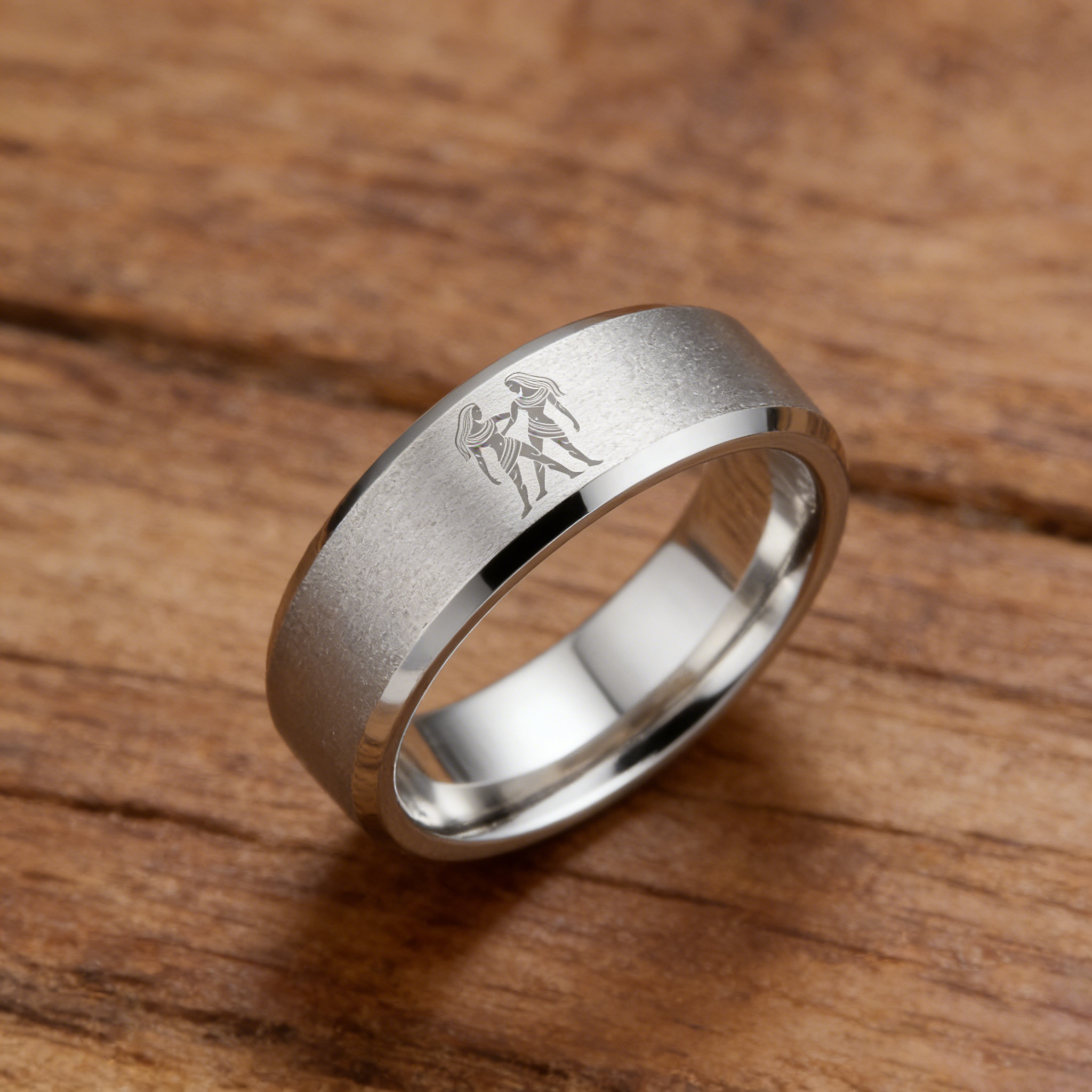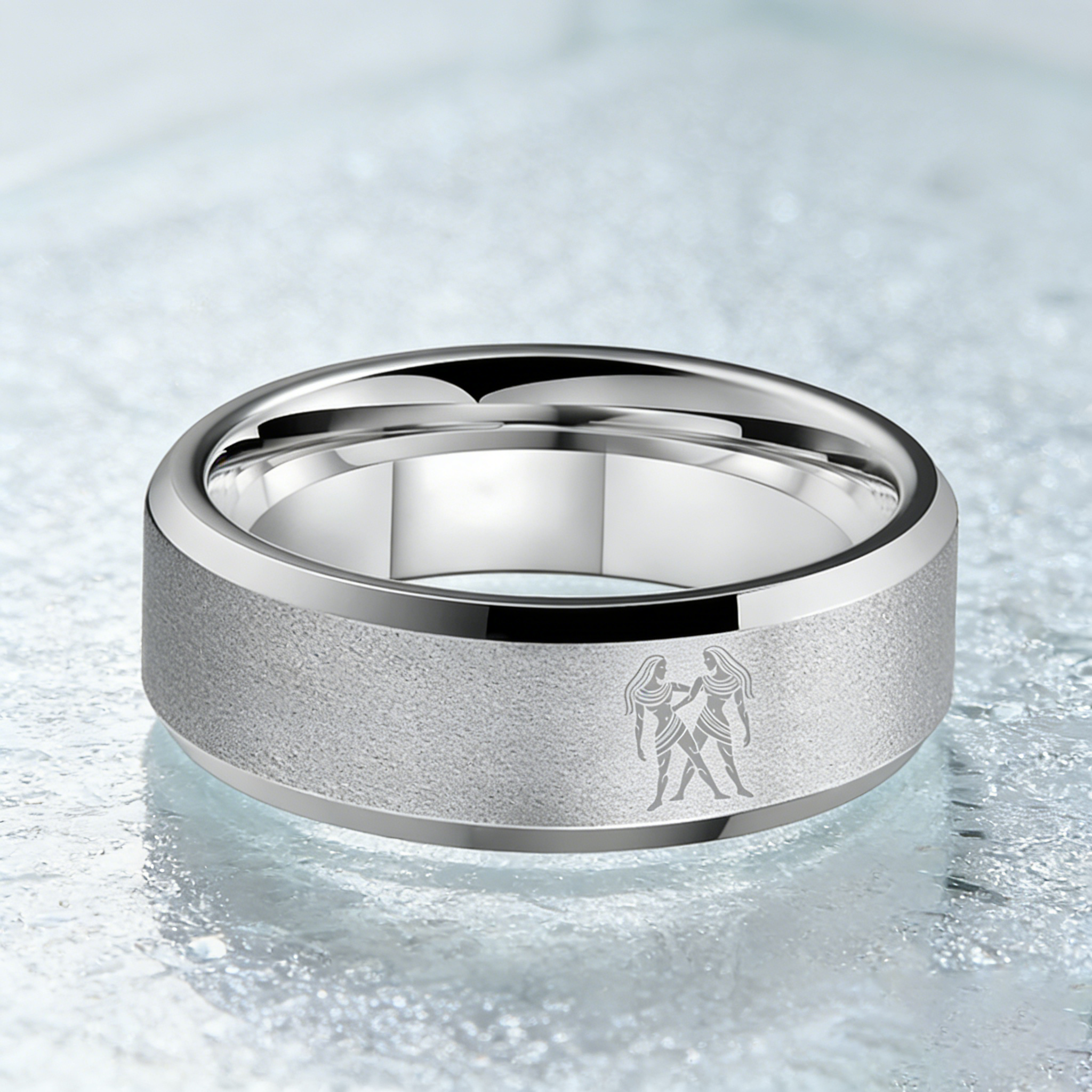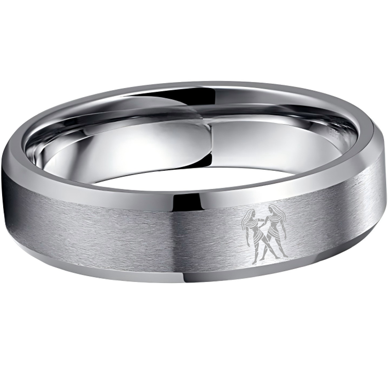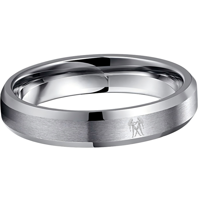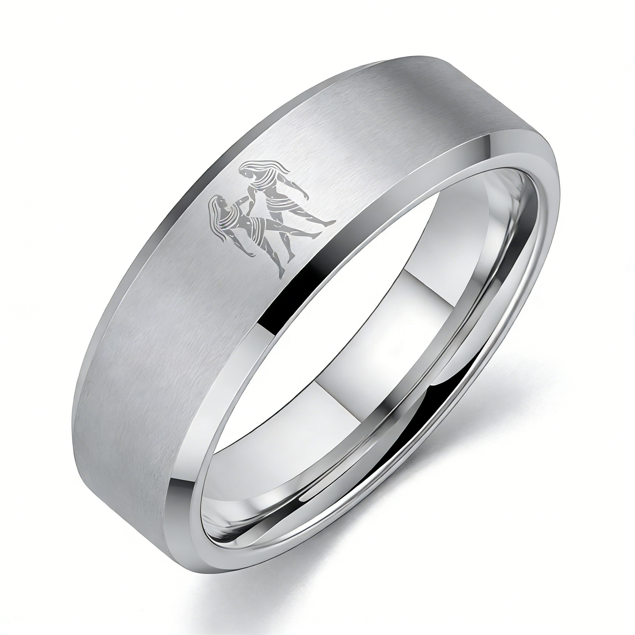 Sliver Laser Etched Couple Wedding Bands Sliver Gemini Tungsten Carbide Ring Beveled Edges 4MM 6MM 8MM Width