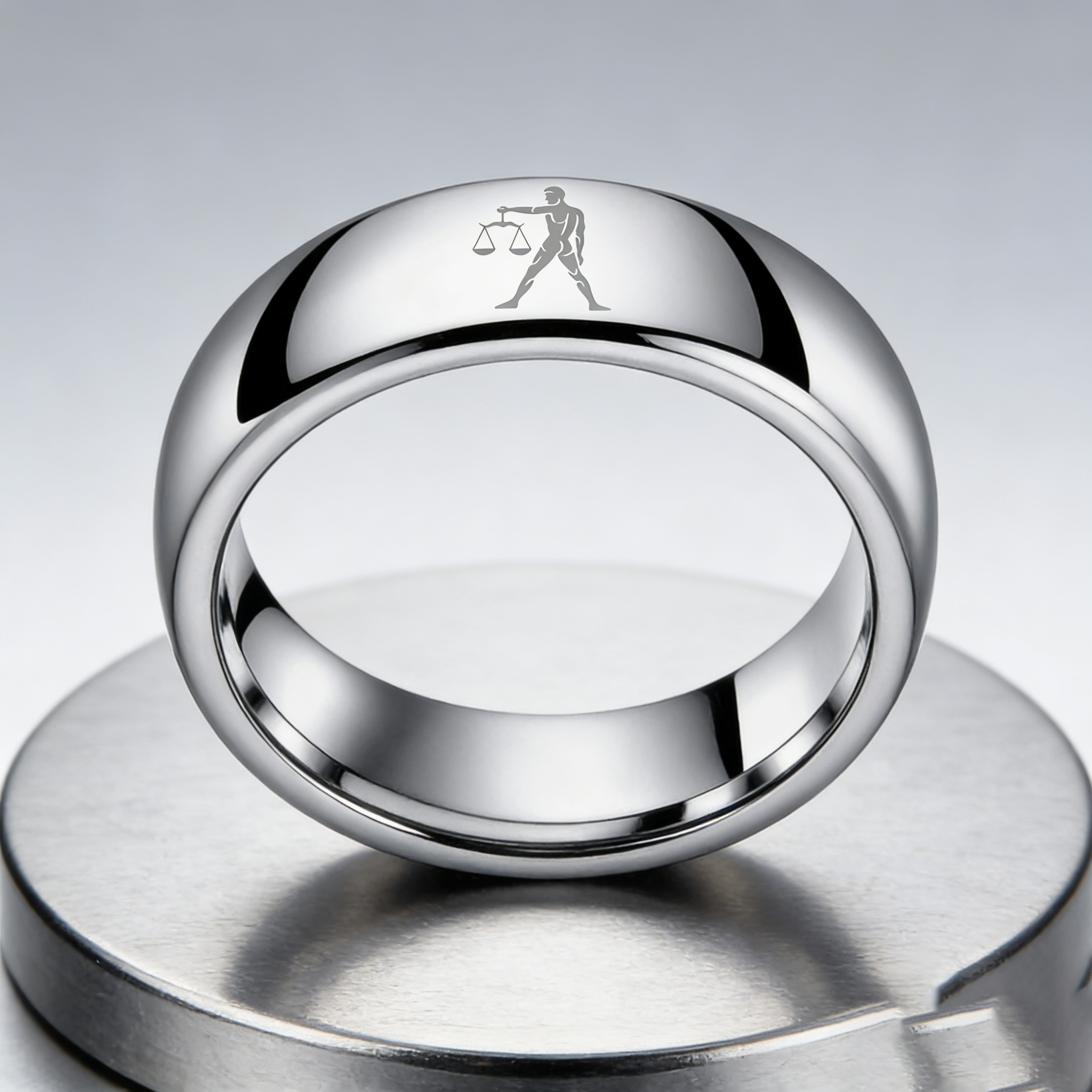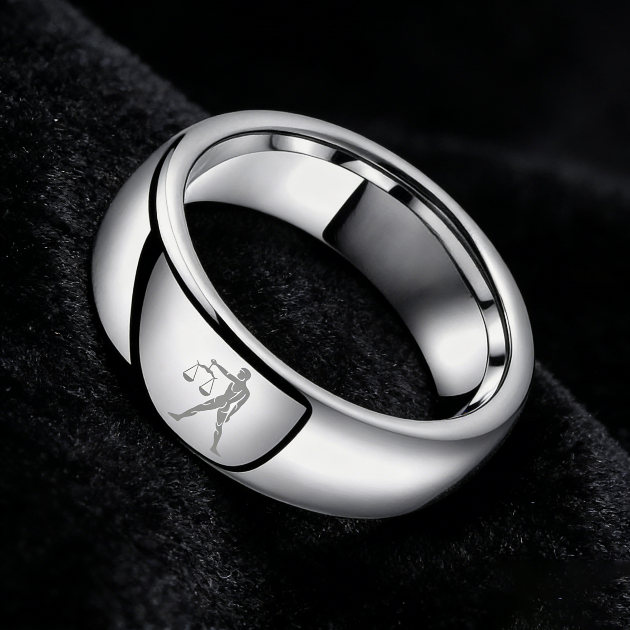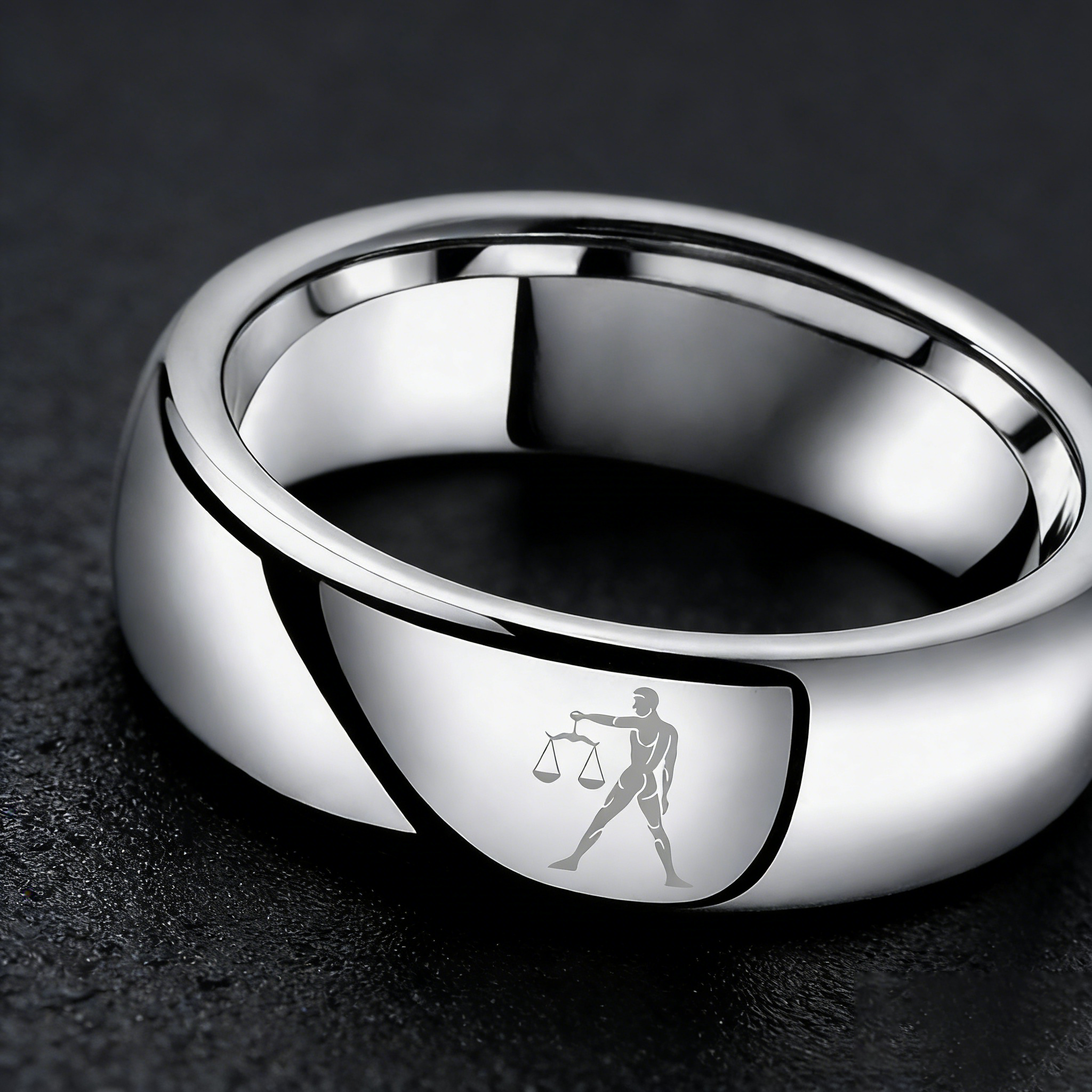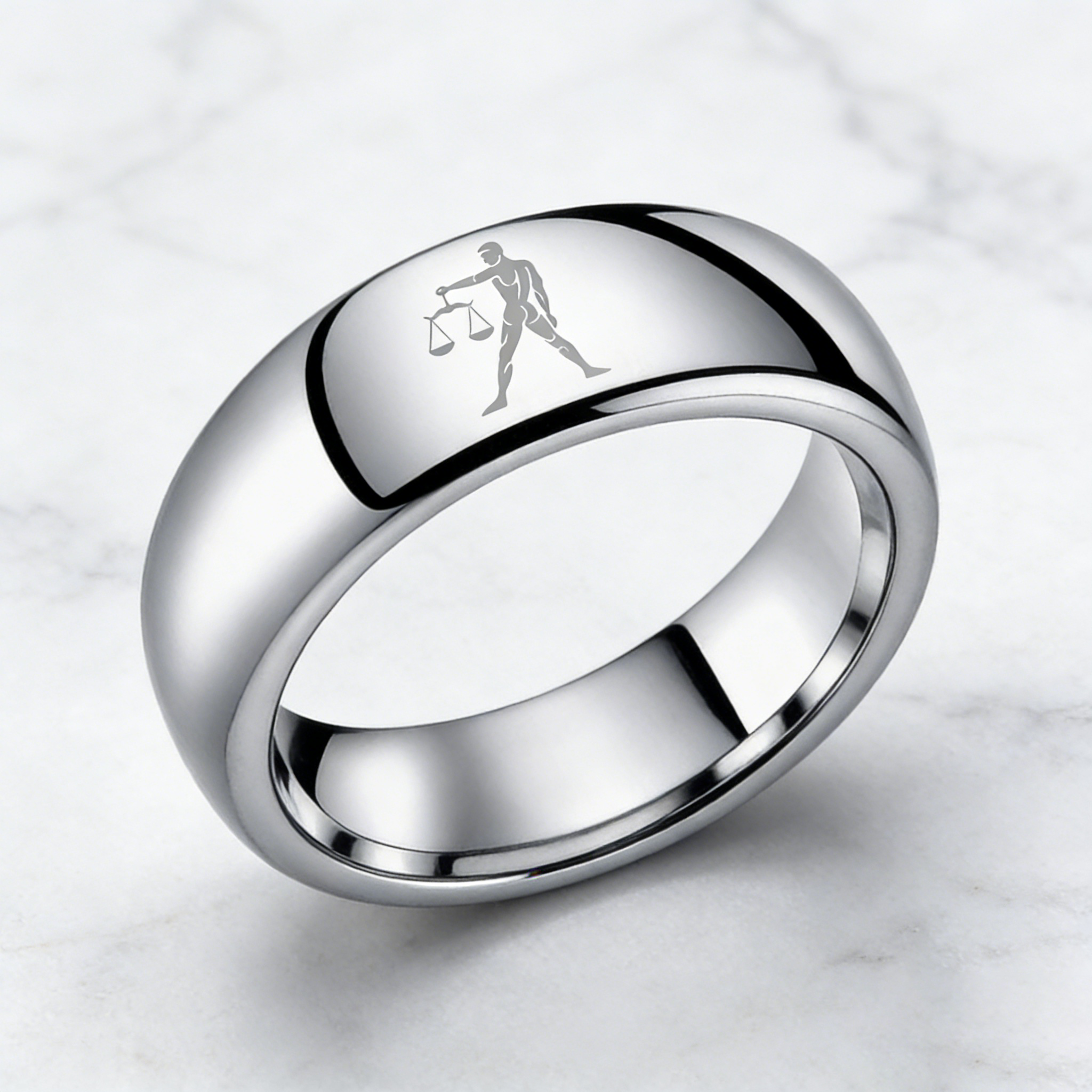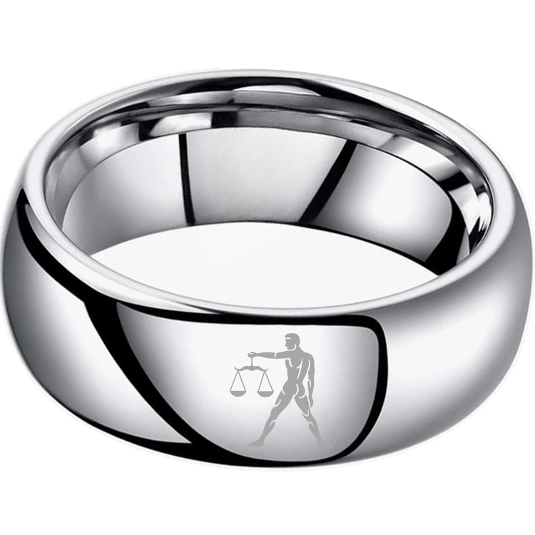 Sliver Libra Couples Dome Tungsten Carbide Rings Prints Laser Design Domed Top Tungsten Wedding Bands 4MM 6MM 8MM Width
