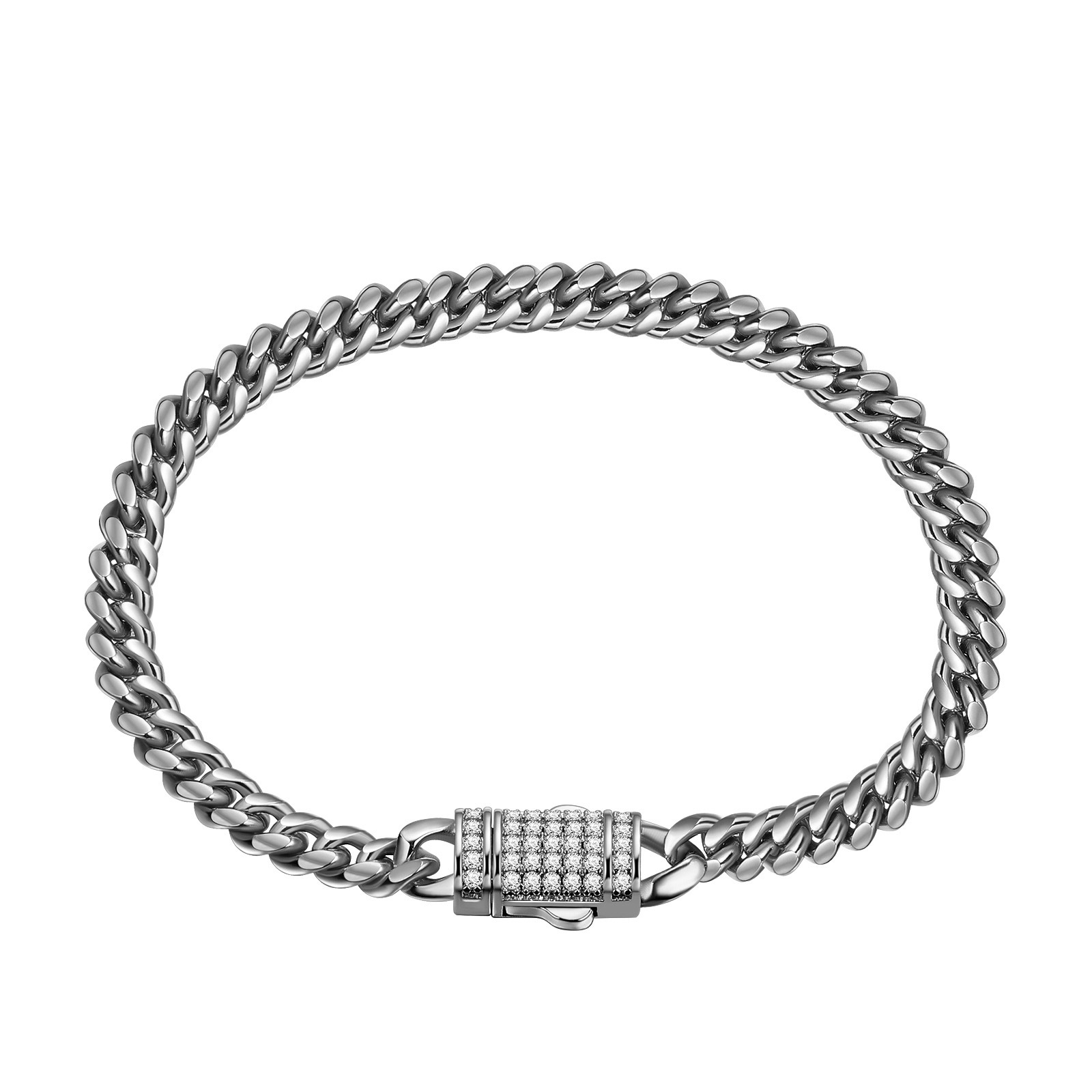 Sliver Titanium Stainless Steel Miami Curb Chains 16-30 inch Cuban Link Chain Necklace with Snap Button for Men Boys 6mm/8mm/10mm/12mm/14mm